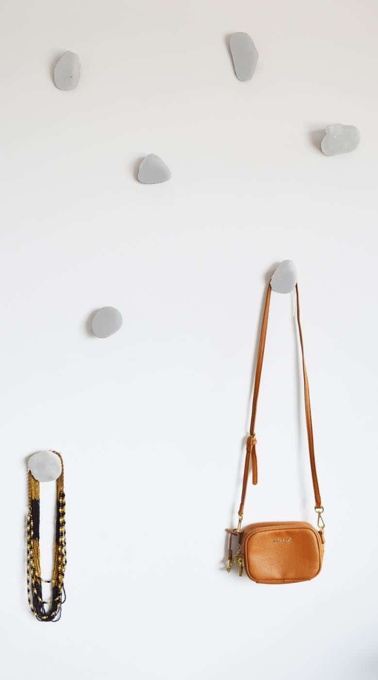 Penduradores pontuados na parede dão para o conjunto um ar de obra de arte. Configure suas peças da maneira que mais lhe agradar.