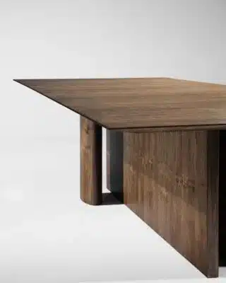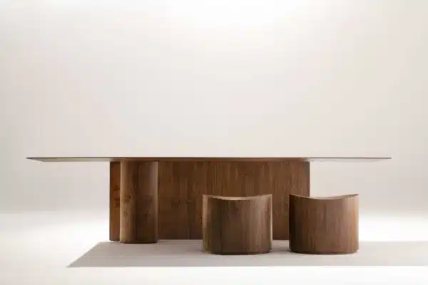 A mesa Eco é uma expressão orientada pela razão, à procura da lógica. O eco é um fenômeno de reflexão do som. Para existir é necessária a presença de um obstáculo, que garanta o retorno daquilo que foi deslocado e modificado no tempo e no espaço. Projetar o simples, sustentando-se na precisão da simetria e do espelhamento, e chegar ao equilíbrio com o mínimo.