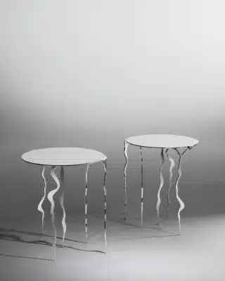 A mesa Foz apresenta o começo de um percurso, quando a água irrompe e inicia um caminho próprio ao acaso. Esse percurso compõe as bases de sustentação da mesa, criando um desafio estético de um aparente improviso. Criada em aço inoxidável, a mesa Foz recria o movimento natural deste material ao revelar as formas fluidas que ele adquire quando liberado pela alta temperatura.