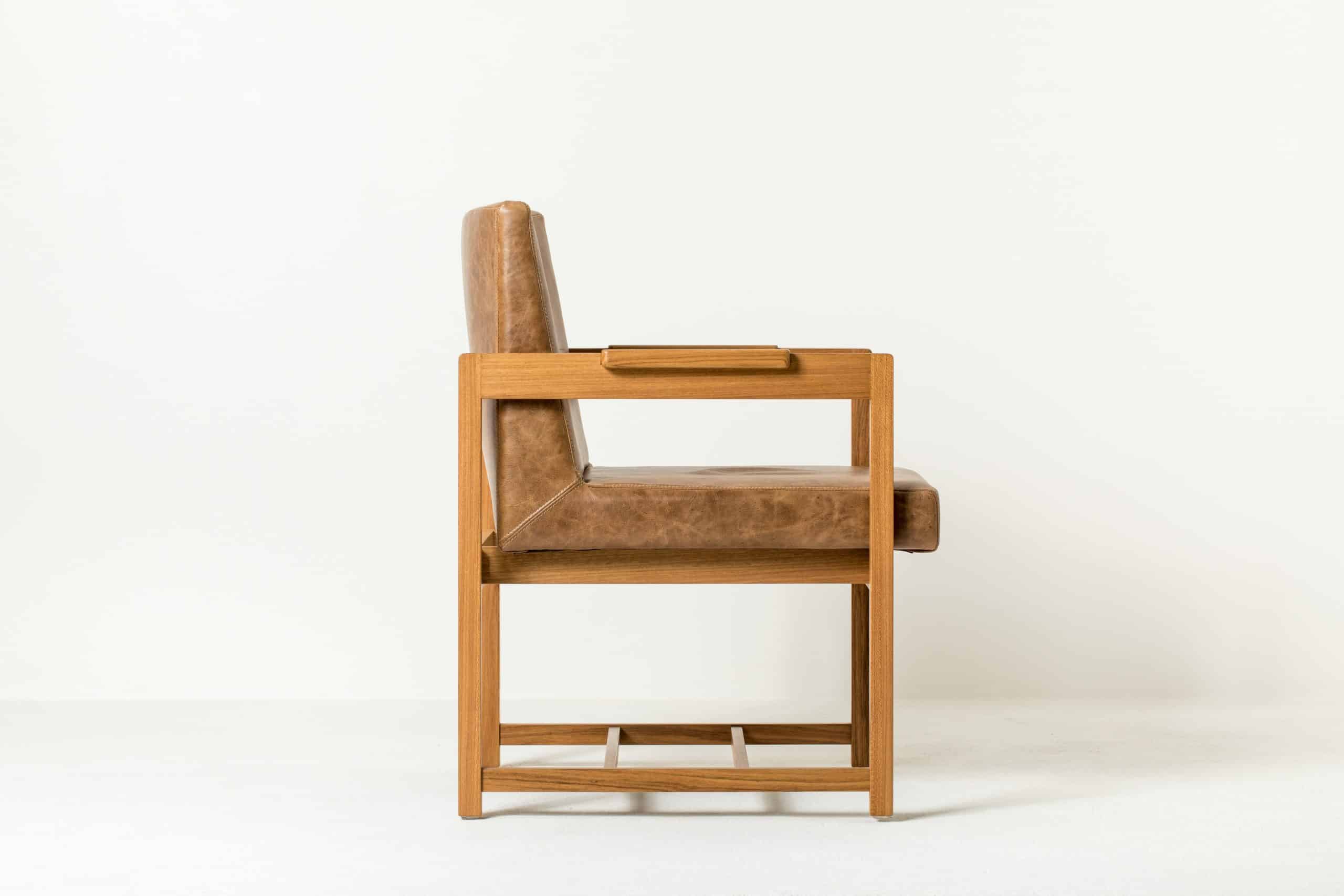 A cadeira de braço Gouthier, também da coleção Pamphilj, utiliza o mesmo partido de estrutura da cadeira Chancelaria, porém com a elevação dos pés para receber os braços. A unidade de assento e encosto estofados são acolhidos pela bela estrutura que abraça o usuário.