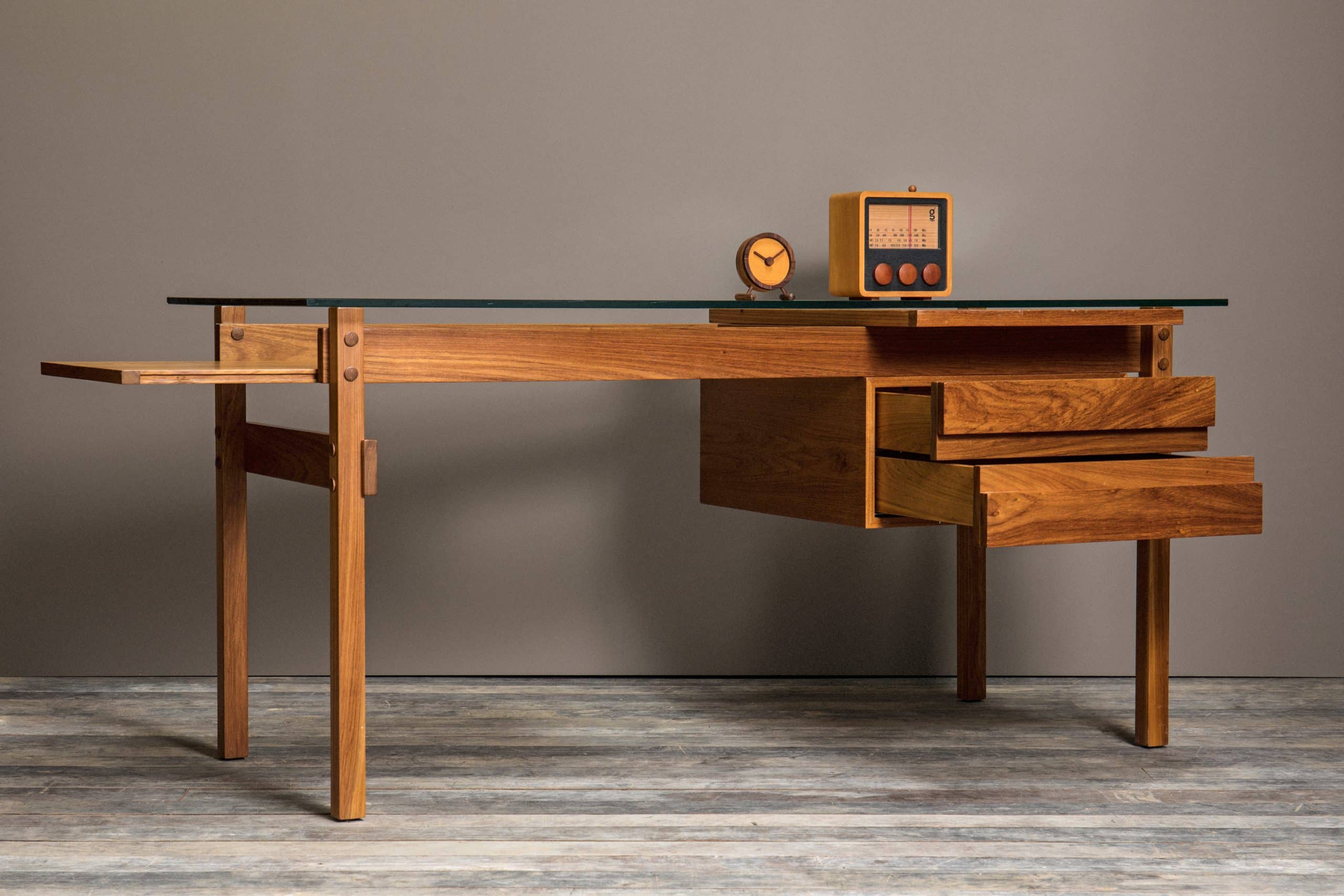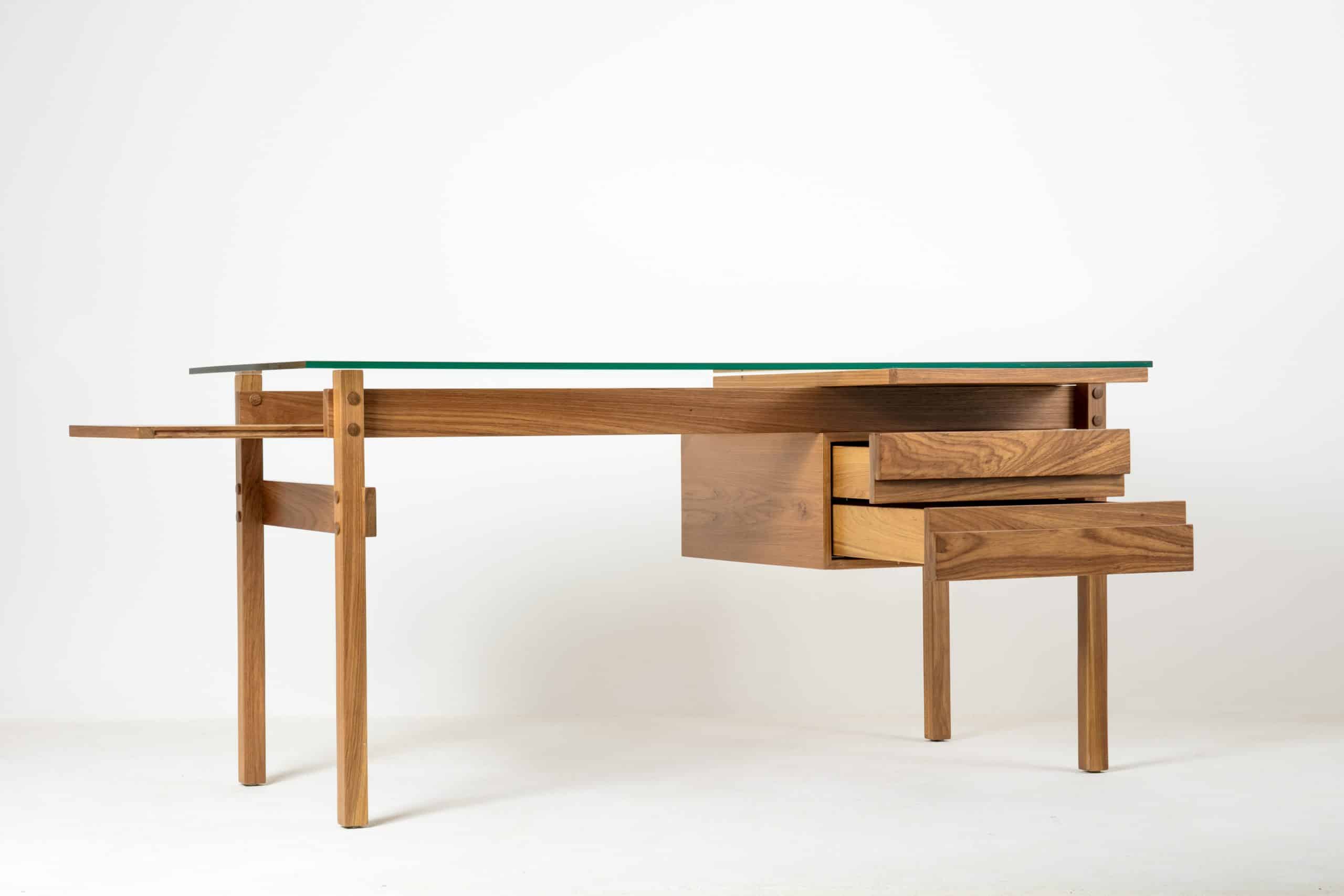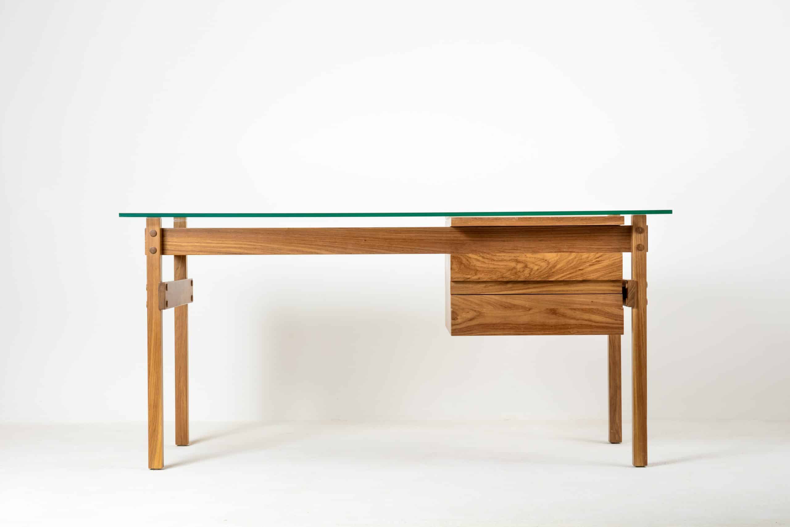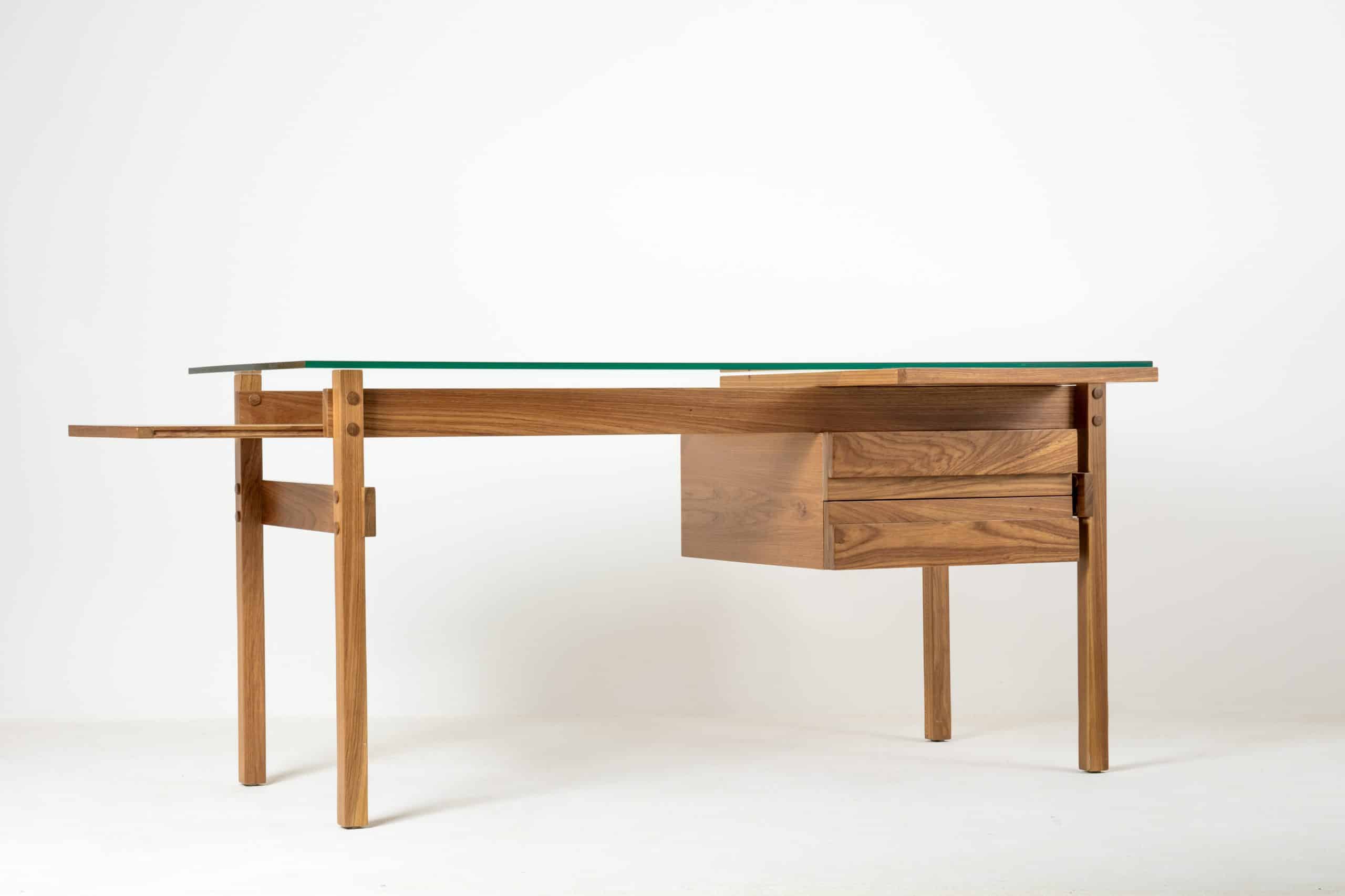 Escrivaninha criada em homenagem ao amigo de Sergio e Vera Beatriz Rodrigues, o governador do Estado da Guanabara, Carlos Lacerda. São duas gavetas e dois planos corrediços numa estrutura ortogonal com botões que evidenciam os encaixes. Se na época em que foi criada o plano corrediço central da escrivaninha era o espaço perfeito para uma máquina de escrever portátil, hoje esse espaço pode guardar um notebook ou um tablet. Já o plano lateral sobre as gavetas apoia uma xícara de café, ou acomoda fotografias, imagens.