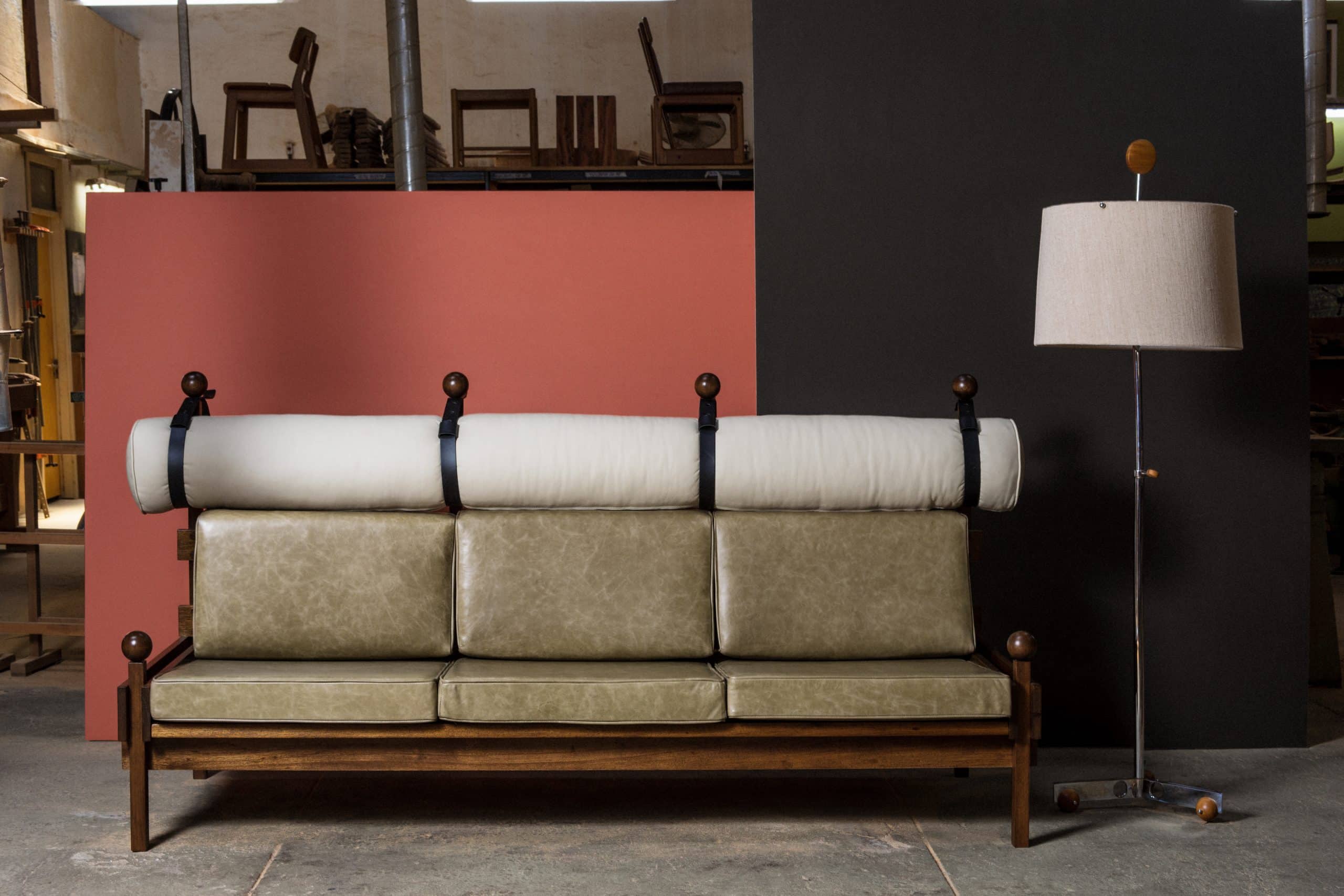 Luminária de piso com dispositivo de ajuste de altura, que foi batizada com o nome de seu amigo, o jornalista Sergio Augusto.