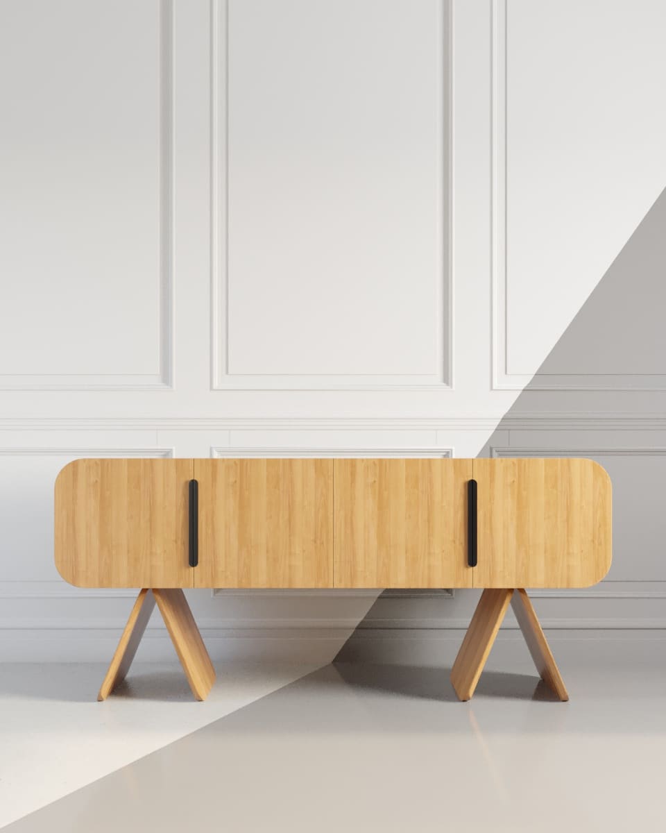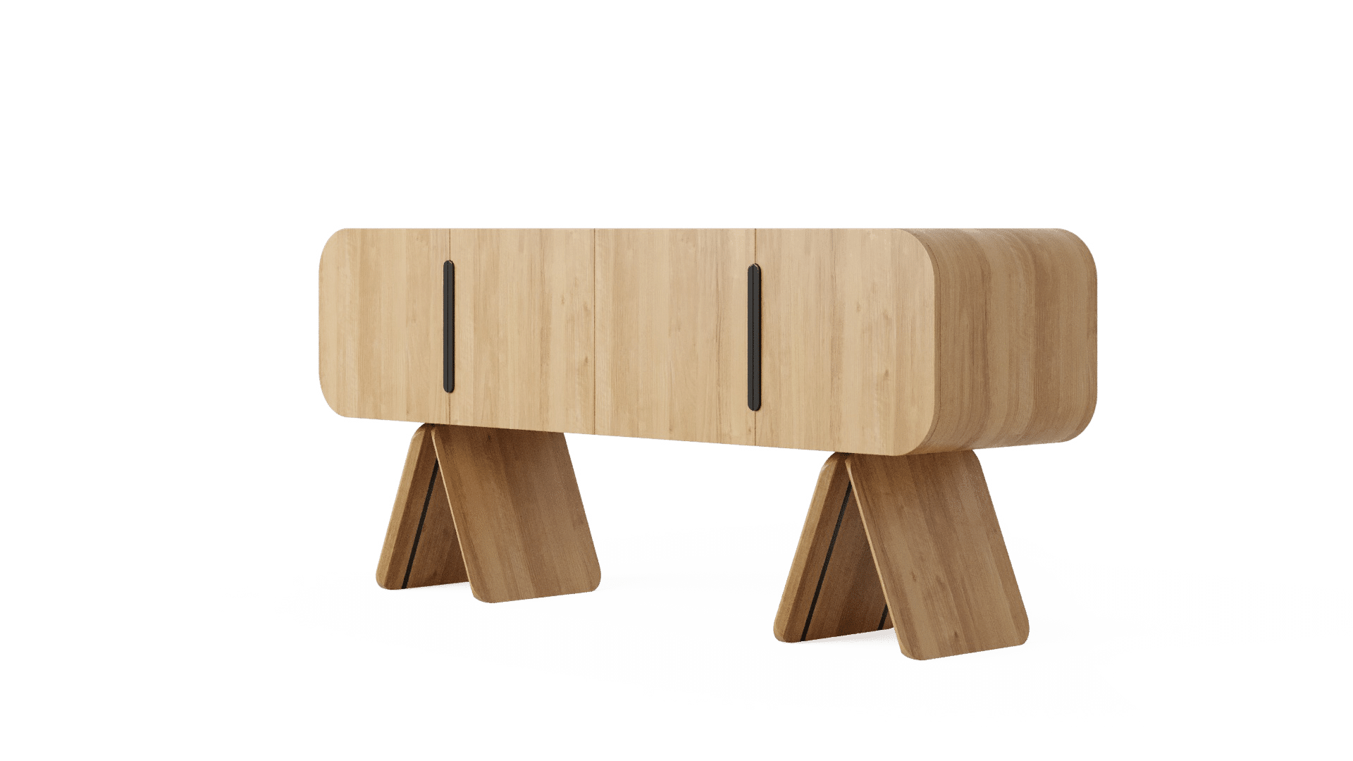 Apresentamos o aparador Cavalete, uma peça de destaque da linha Cavalete. Inspirada nos cavaletes utilizados por artistas para apoiar telas, esta linha traz um toque de arte para o seu espaço. O aparador é confeccionado em madeira e oferece três opções de acabamento: Carvalho, Freijó ou Carvalho Ebanizado.