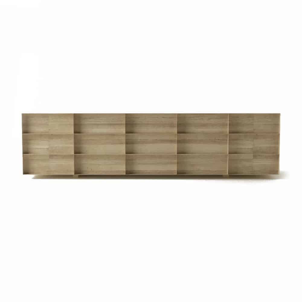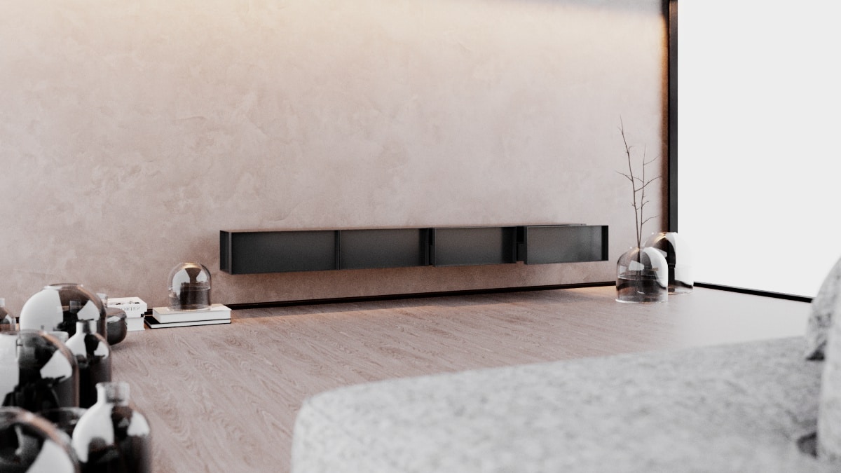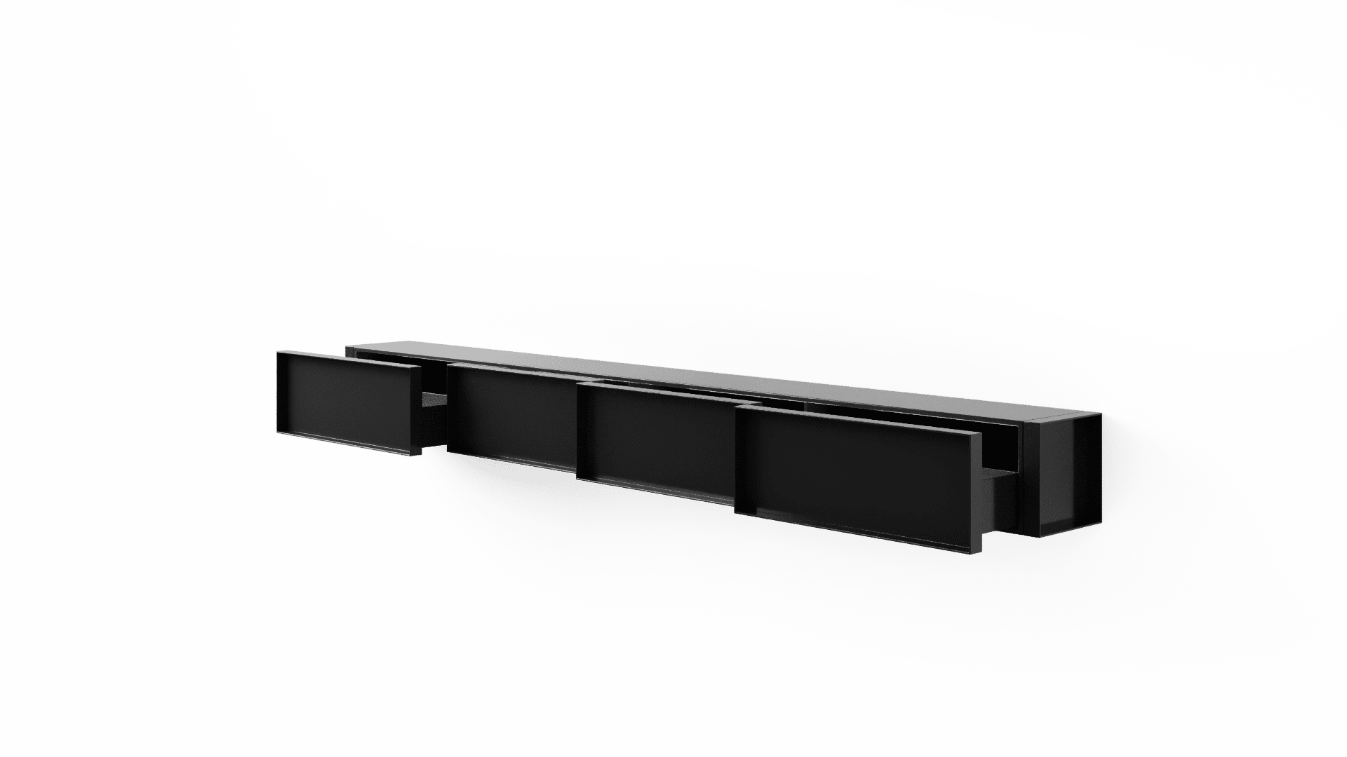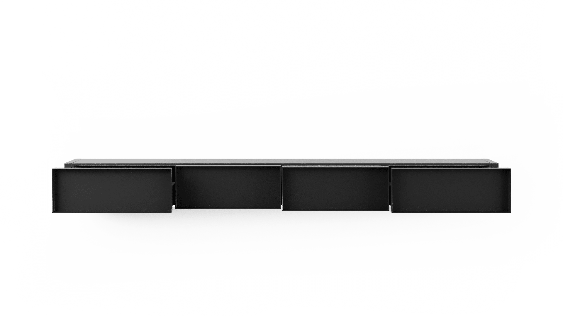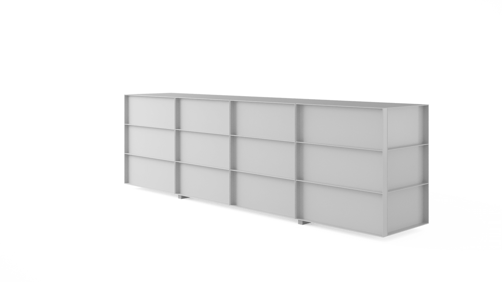 O design do aparador Container é inspirado nos containers industriais. Surpreendendo, ela possui gavetões em vez de portas, oferecendo uma organização impecável do espaço interno.