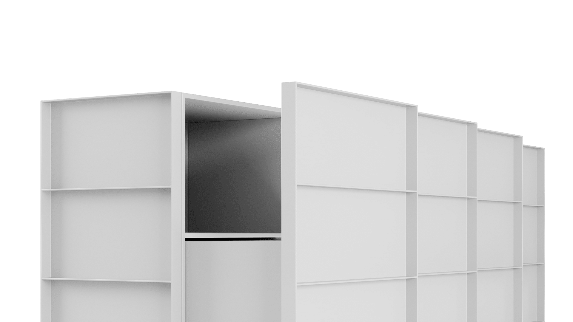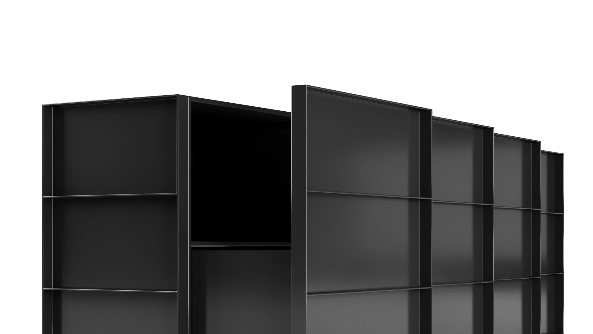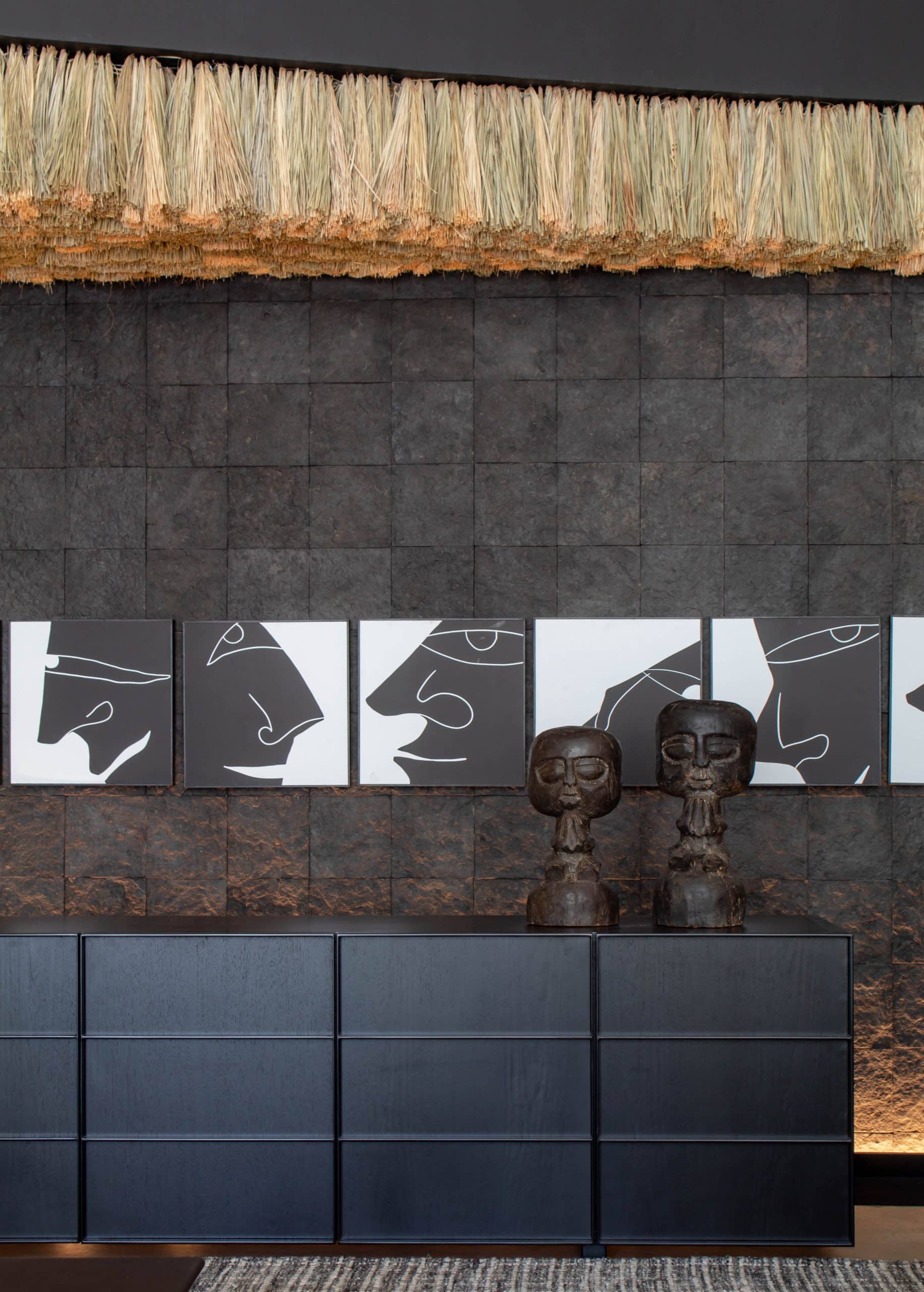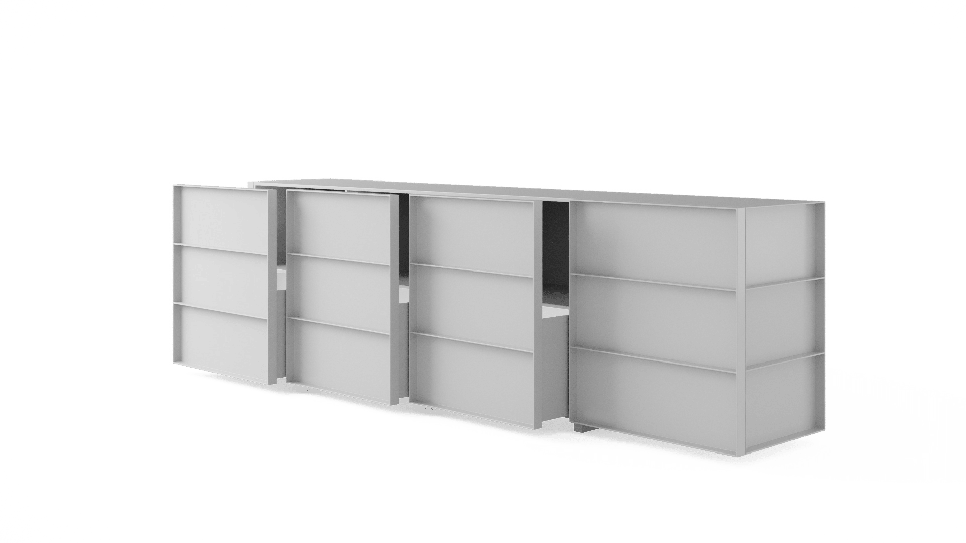O design do aparador Container é inspirado nos containers industriais. Surpreendendo, ela possui gavetões em vez de portas, oferecendo uma organização impecável do espaço interno.