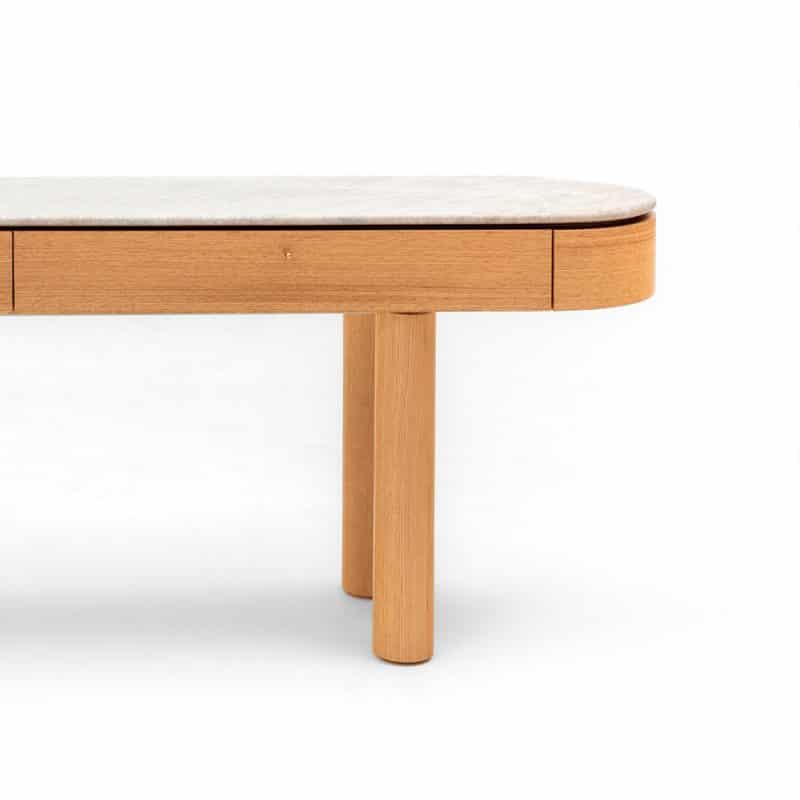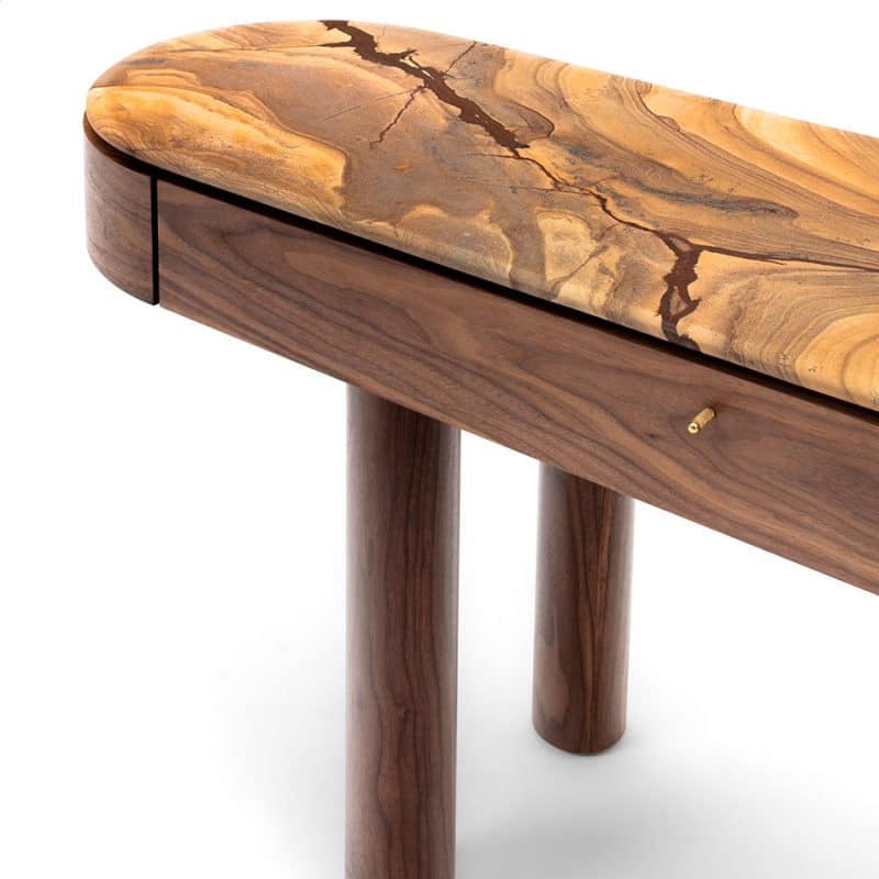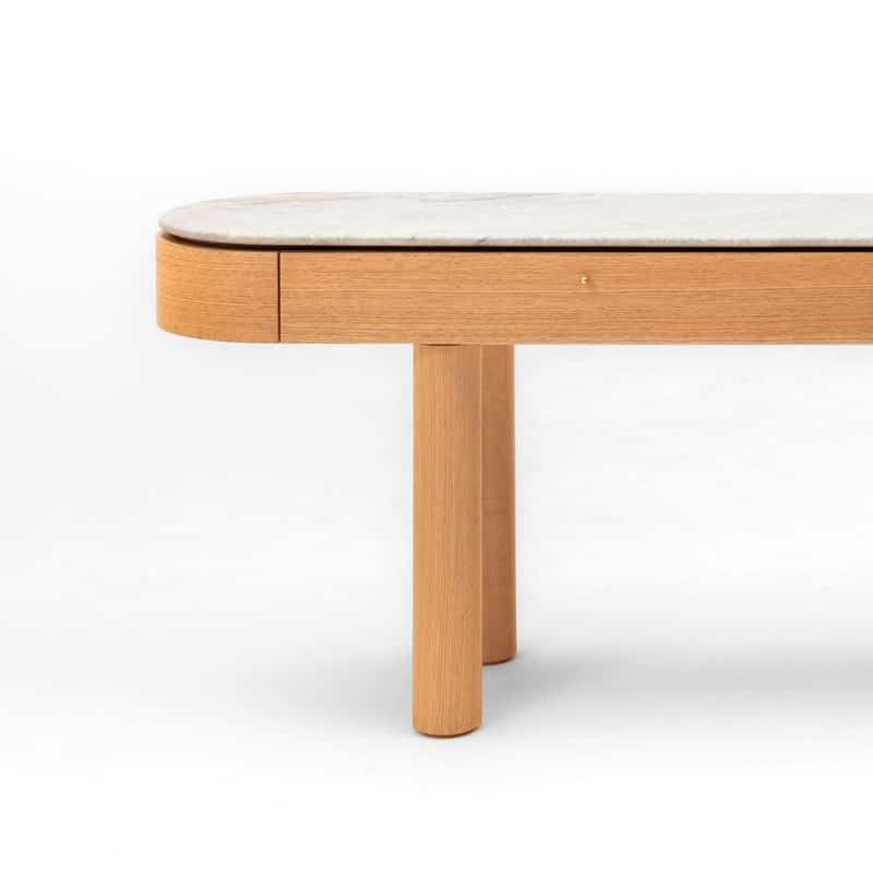 Desenho clássico e rigoroso. Peça de aspecto escultural realçado pela textura dos mármores. Diversos mármores disponíveis para a composição de acabamentos.