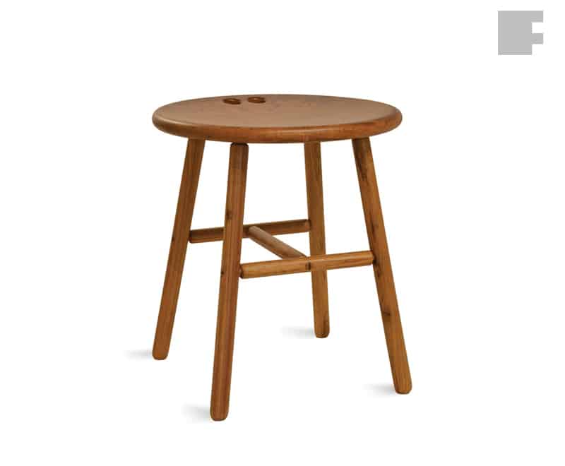 ” Toda peça que crio nasce de um desenho ou da intenção de uma utilidade, às vezes o ponto de partida para a criação é a construção da peça, o pensamento de como ela será fabricada na marcenaria. Em 2009 desenhei o banco Antonio com três pés e todas as peças torneadas. Quando me pediram um banco Antonio de quatro pés, ao invés de simplesmente acrescentar um pé ao banco existente resolvi experimentar outro processo de fabricação. O torno cedeu lugar à tupia, com essa mudança mantive os pés redondos, porém retilíneos, para as travessas adotei a mesma usinagem em tupia e somente o assento foi torneado. As dimensões foram ligeiramente aumentadas pois o novo banco previa o uso eventual numa mesa de copa. O resultado é uma peça de fabricação descomplicada e de formas simples, mas sem perder a graça nas proporções.” – Fernando Mendes.