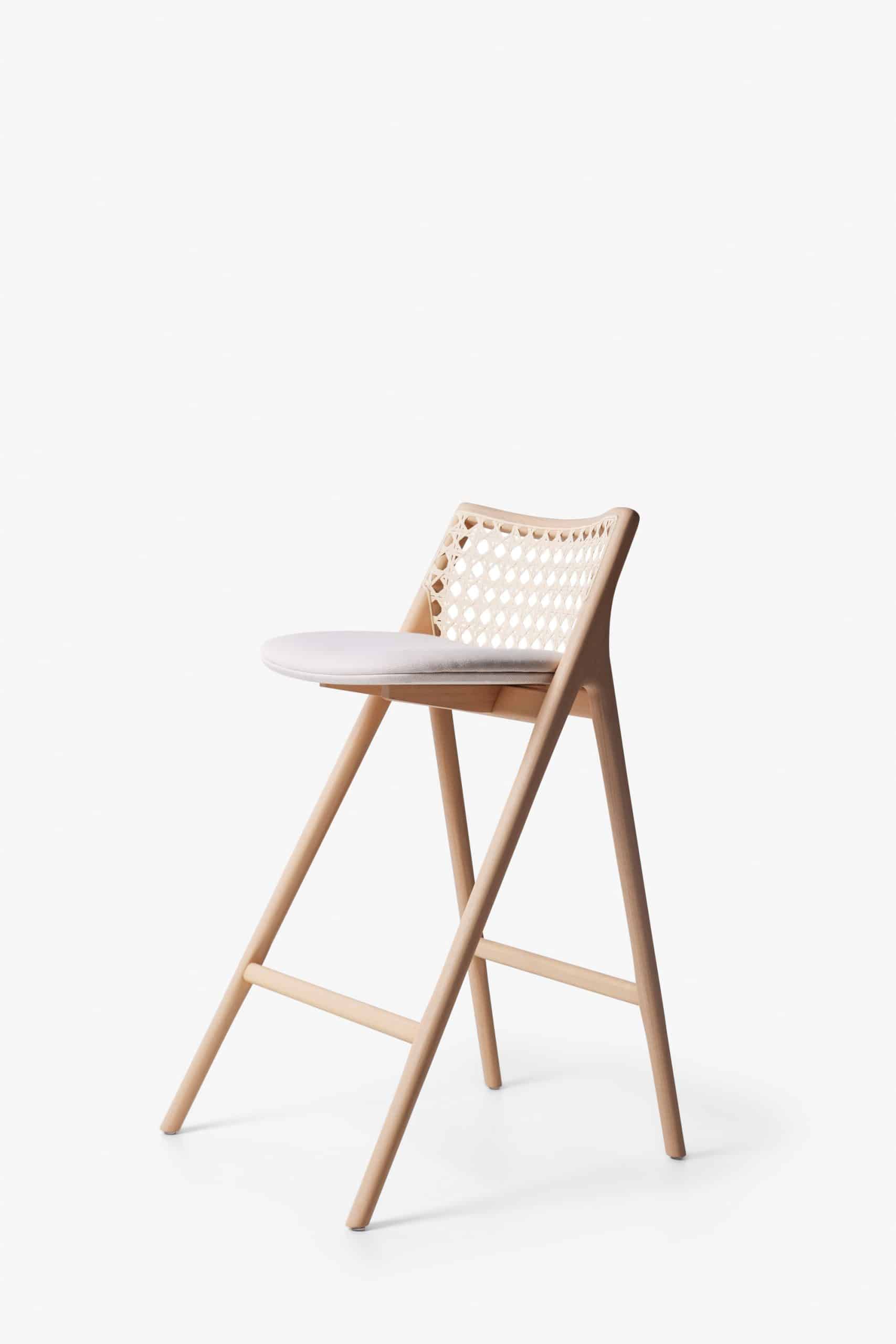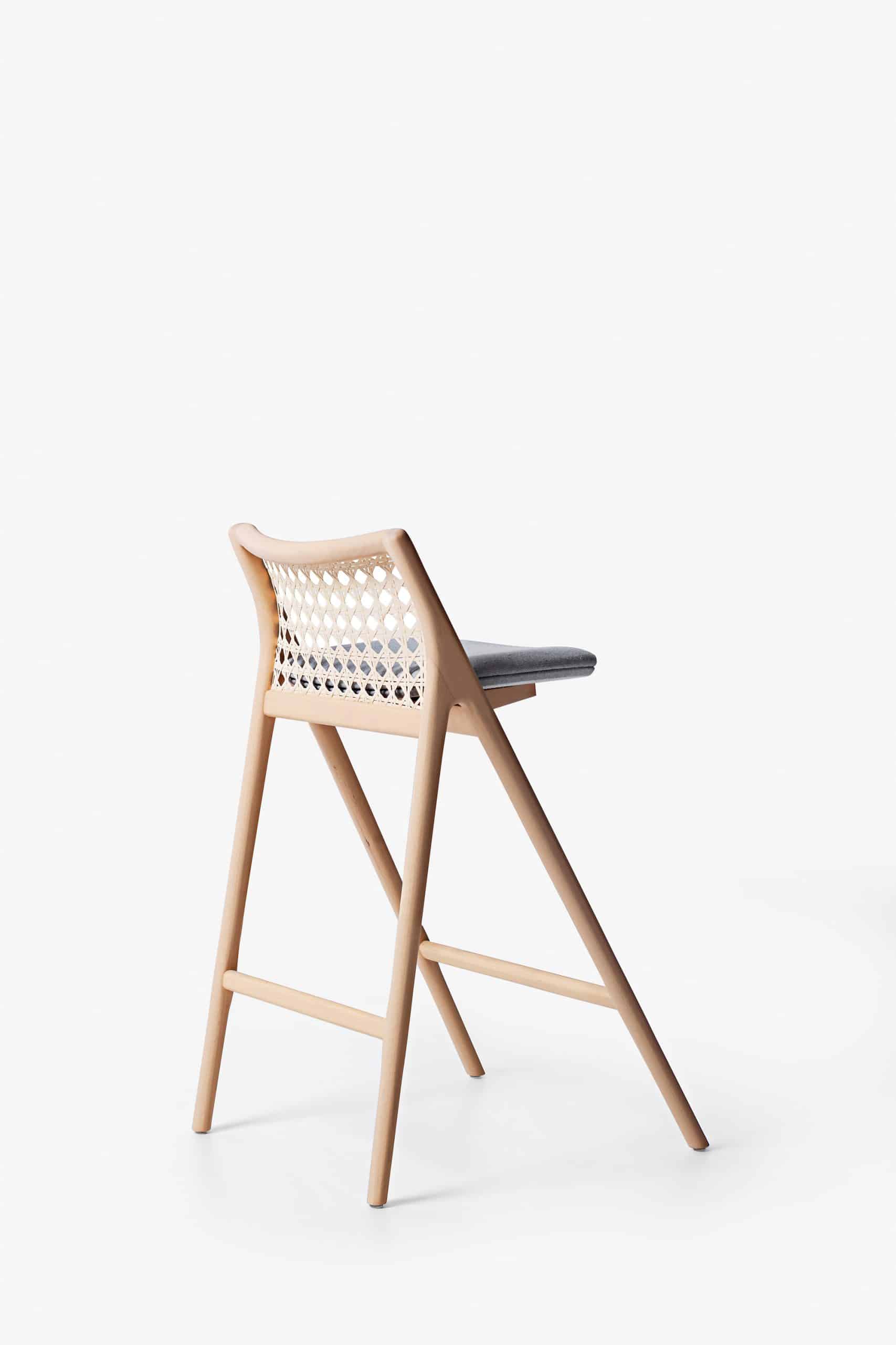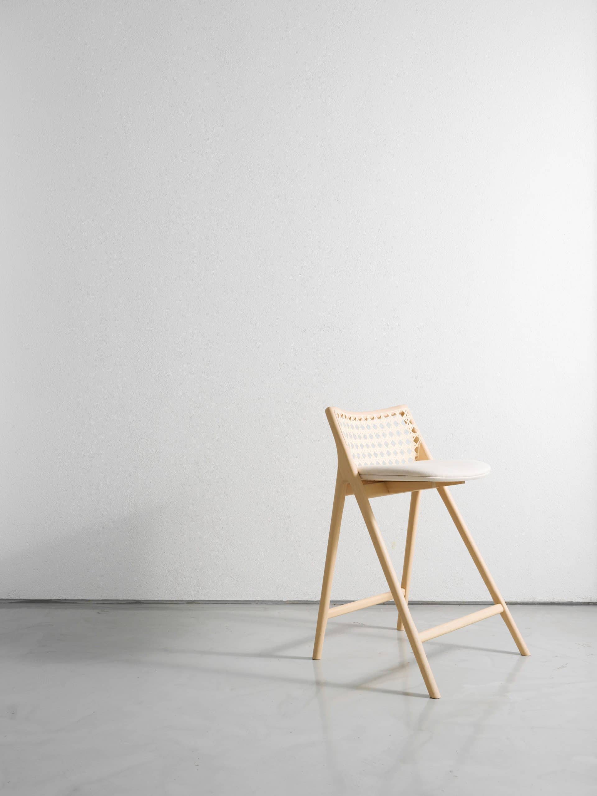 A banqueta é a última criação da série Tela. A trama do encosto é inspirada na clássica “palhinha” encontrada no mobiliário Modernista brasileiro. O desenho da trama foi recriado em uma nova escala e tem o algodão como matéria-prima — ao invés da palha — para maior conforto e durabilidade. A banqueta Tela está disponível em duas alturas para melhor se adaptar aos projetos arquitetônicos.