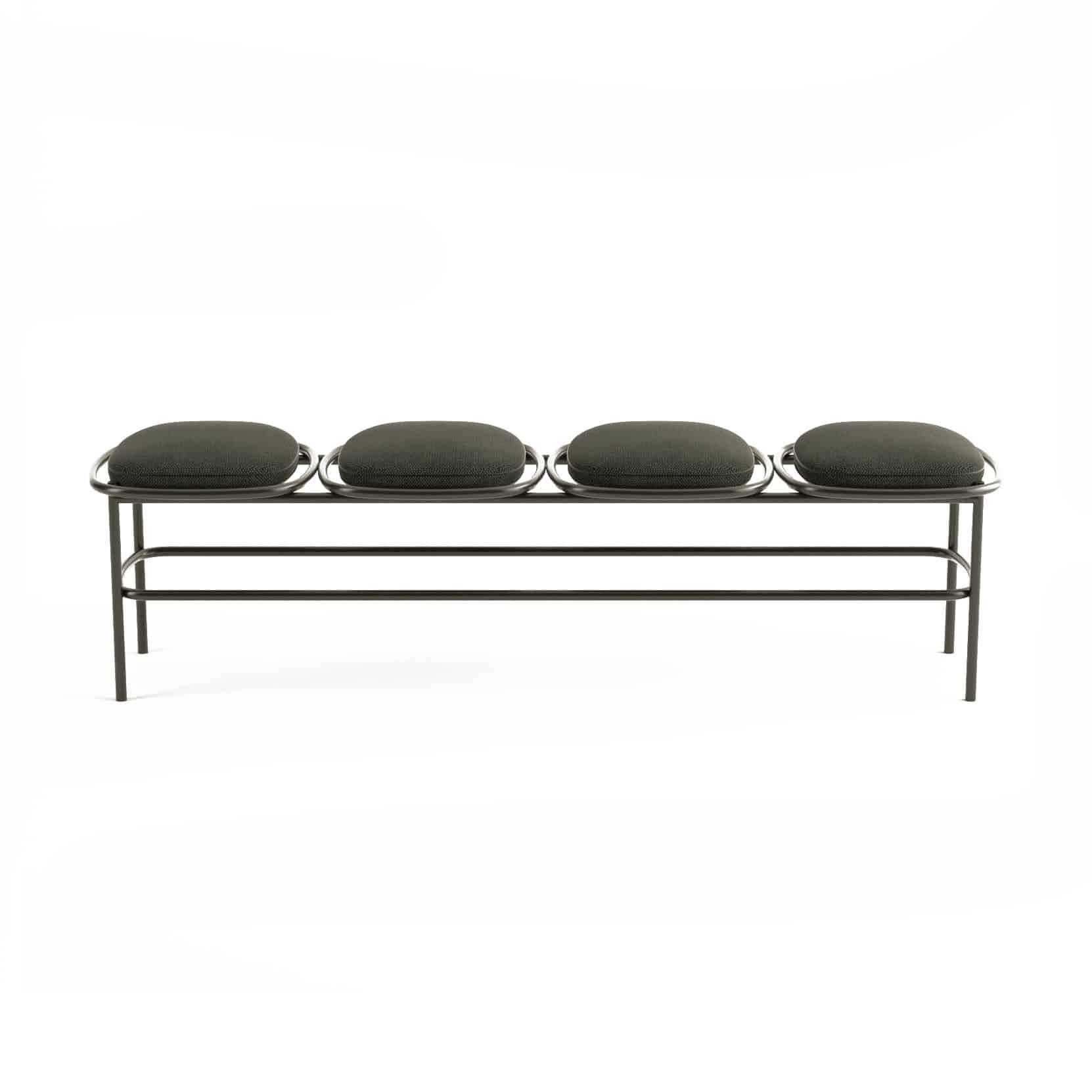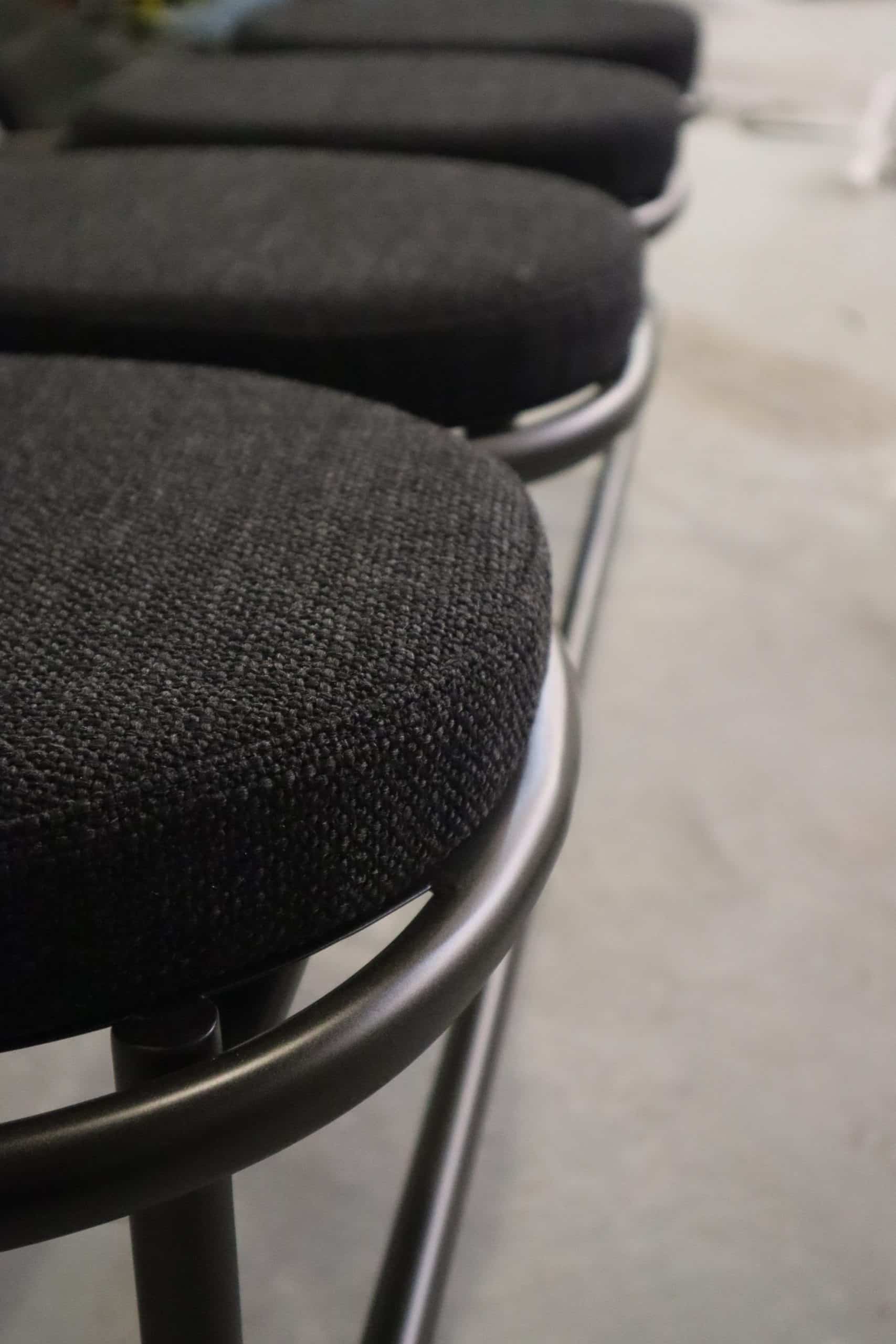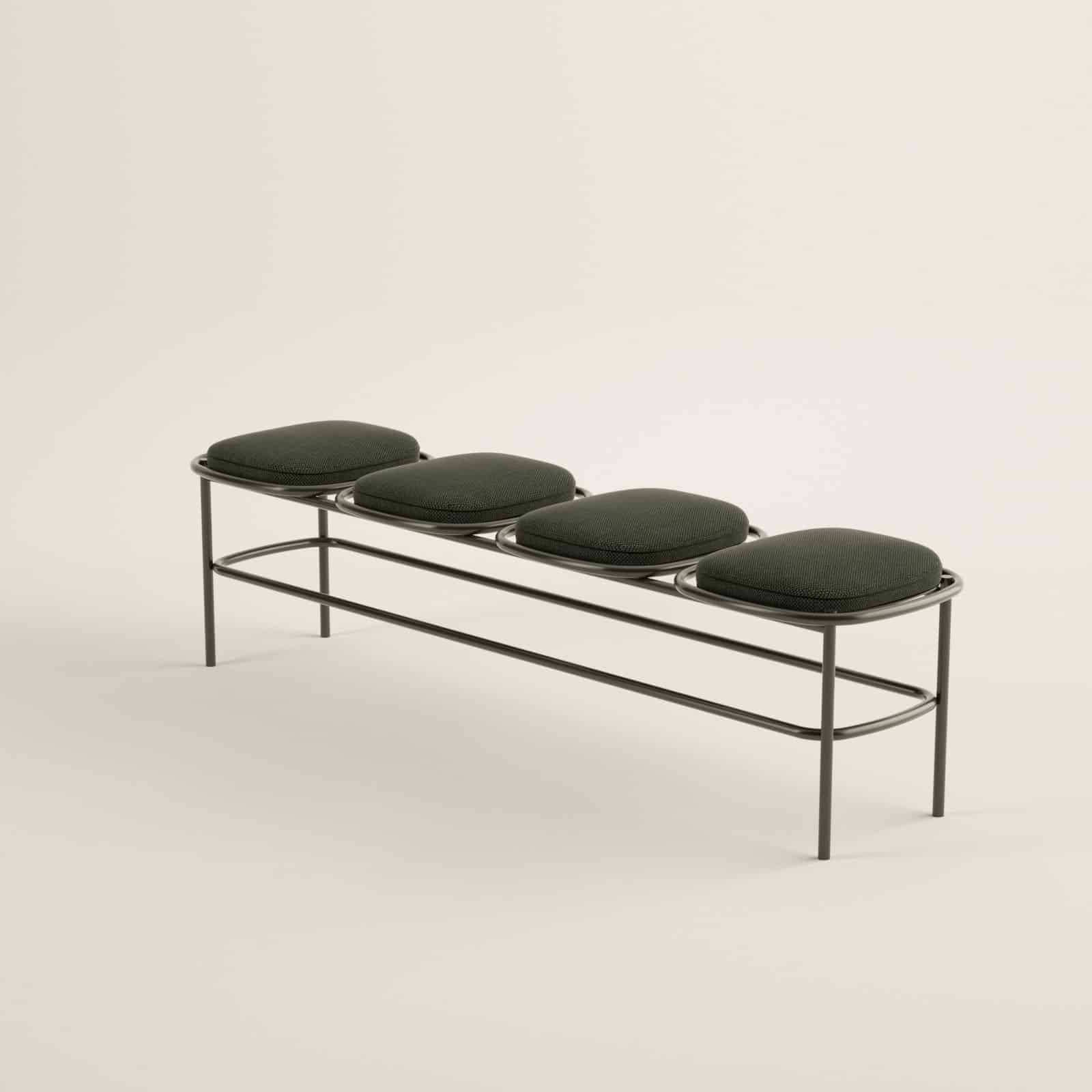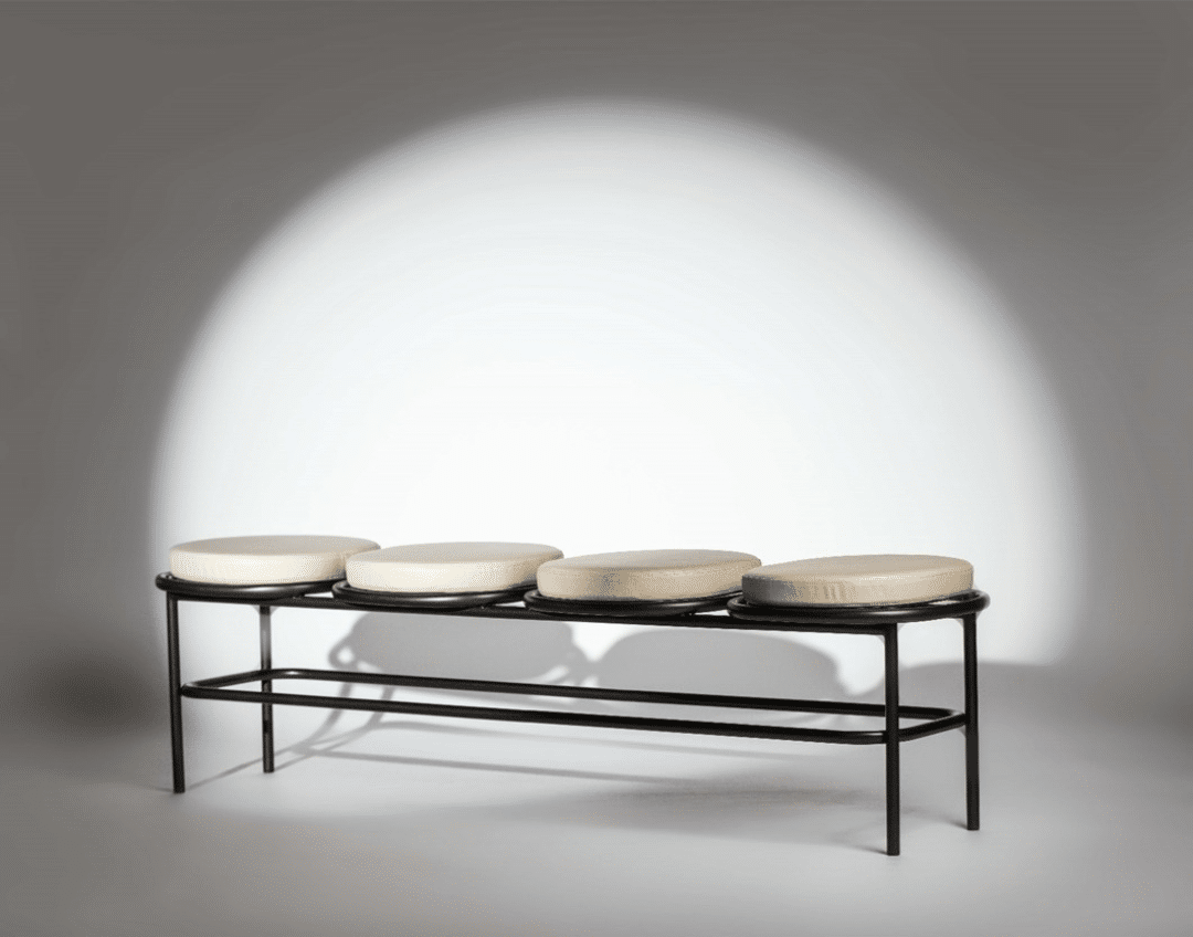 A coleção Concêntrica é marcada pela inspiração nas formas geométricas, que assumem um papel de destaque nessa linha. A cadeira e o banquinho estão disponíveis para uso em ambientes internos quanto externos.