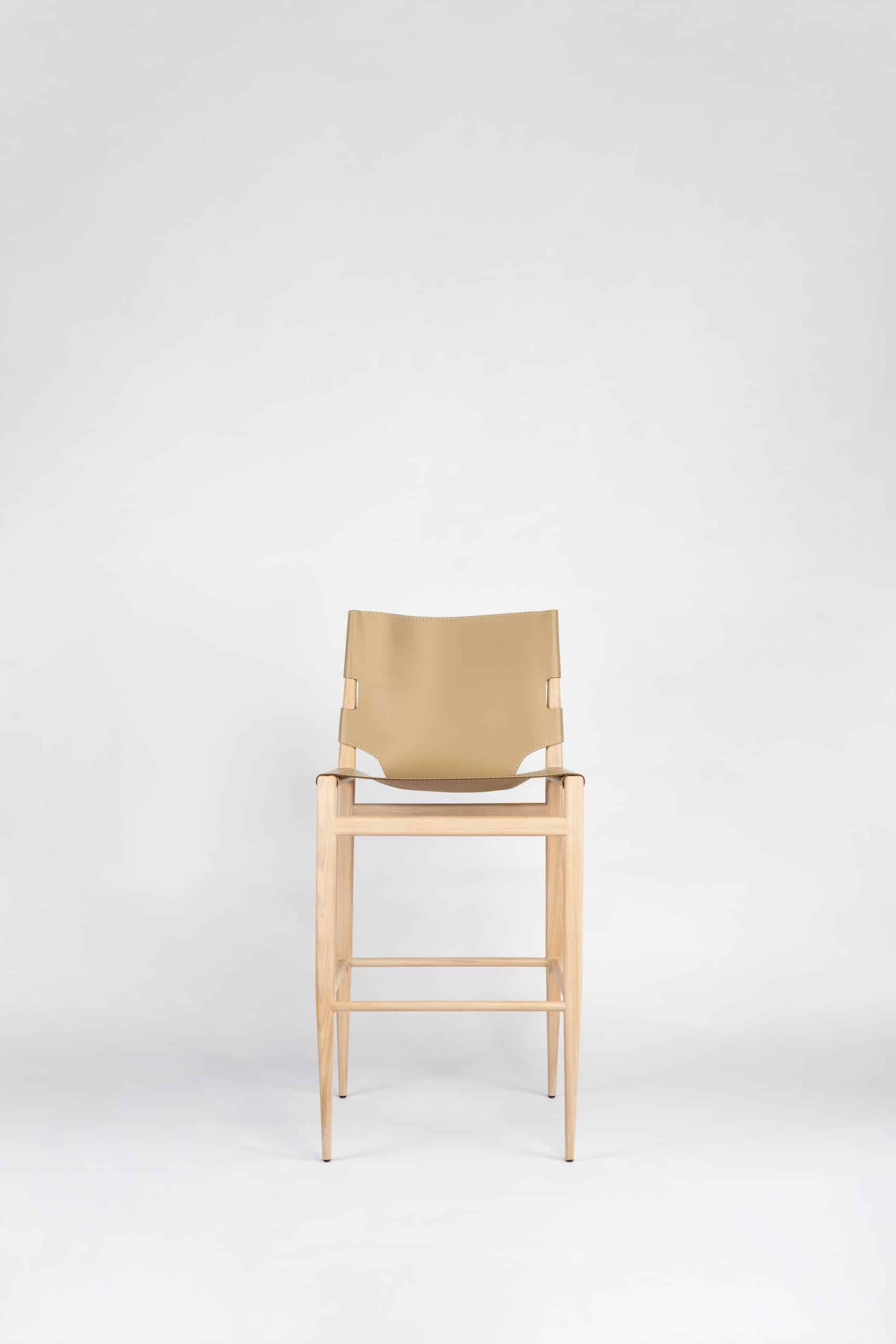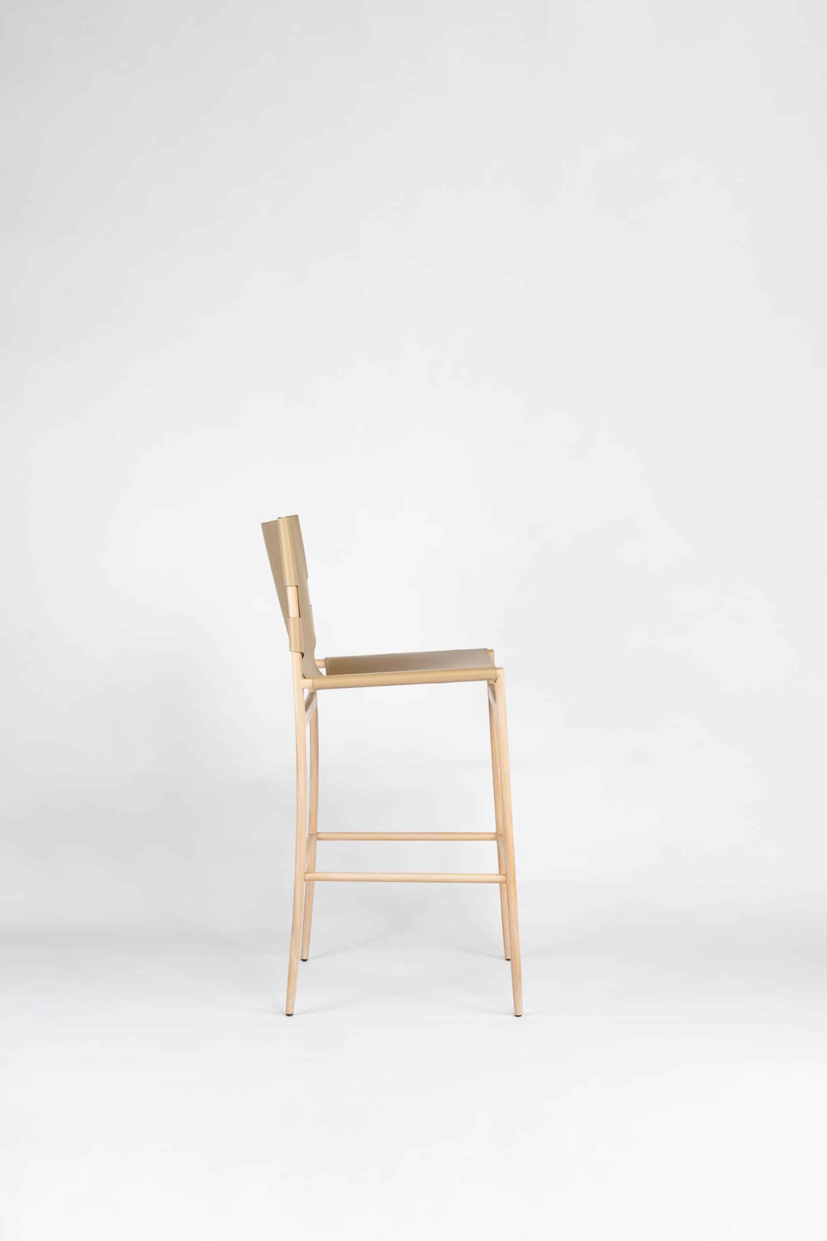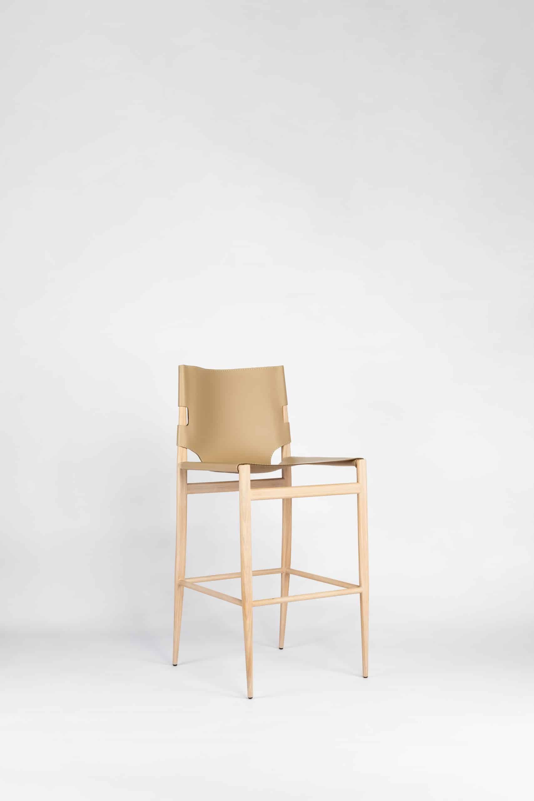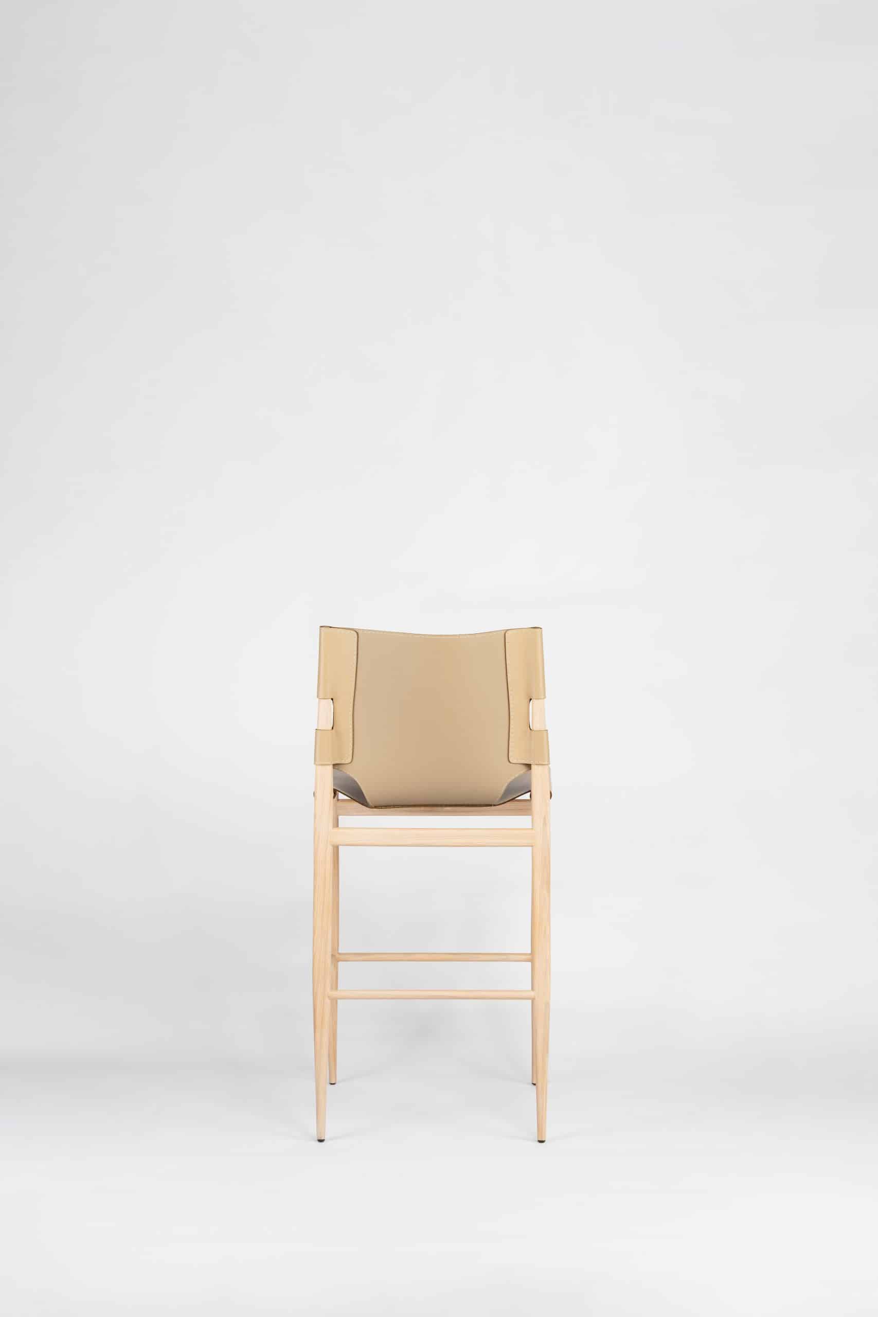 A Banqueta Coppola, parte de uma linha que inclui cadeiras e poltrona, inspirada em Francis Coppola, o renomado diretor de cinema, e sua icônica cadeira de diretor. Ela apresenta um design meticuloso no encosto e assento feitos em couro sola, destacando-se por sua costura pespontada.