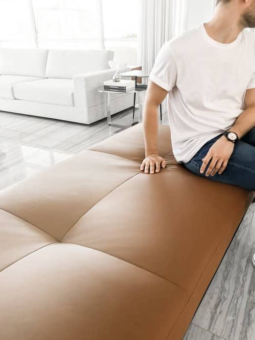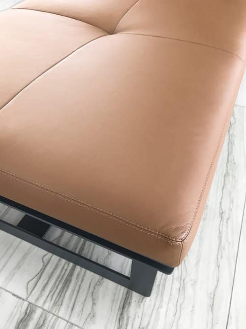 O banco Lunna se vale da simplicidade formal, desdobrando-se em uma peça sóbria e elegante. Os detalhes sutis em sua estrutura agregam sofisticação à peça, enquanto seu estofado revestido em couro promove alto conforto ao usuário.