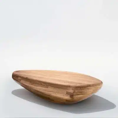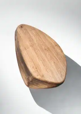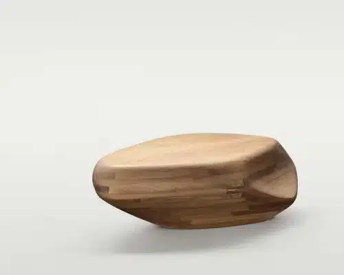 Pedra é inspirada nos seixos rolados que tomam forma a partir do contato constante com a água e assumem curvas orgânicas. Partindo dessas características, a forma do banco se adapta às curvas do corpo e aliada à escolha da madeira maciça é um convite para o toque, para estar junto ou para contemplação.