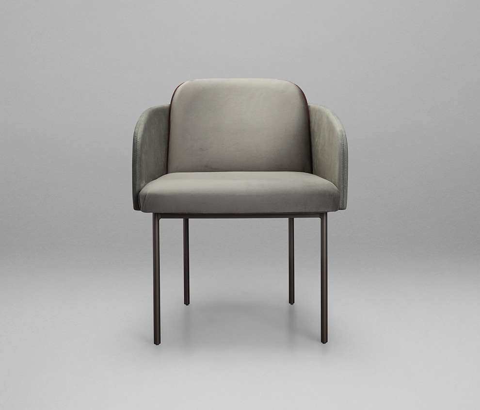 Com design moderno, a Cadeira de Jantar Neo Cairo Slim destaca-se pelo contraste de seus esbeltos pés tubulares com o estofado ergonomicamente consistente. Sua estrutura metálica em formato de cavalete sustenta o encosto externo, que se estende pelas suas laterais para formar os braços. O detalhe em lâmina natural em seu encosto interno ressalta a singularidade da peça.