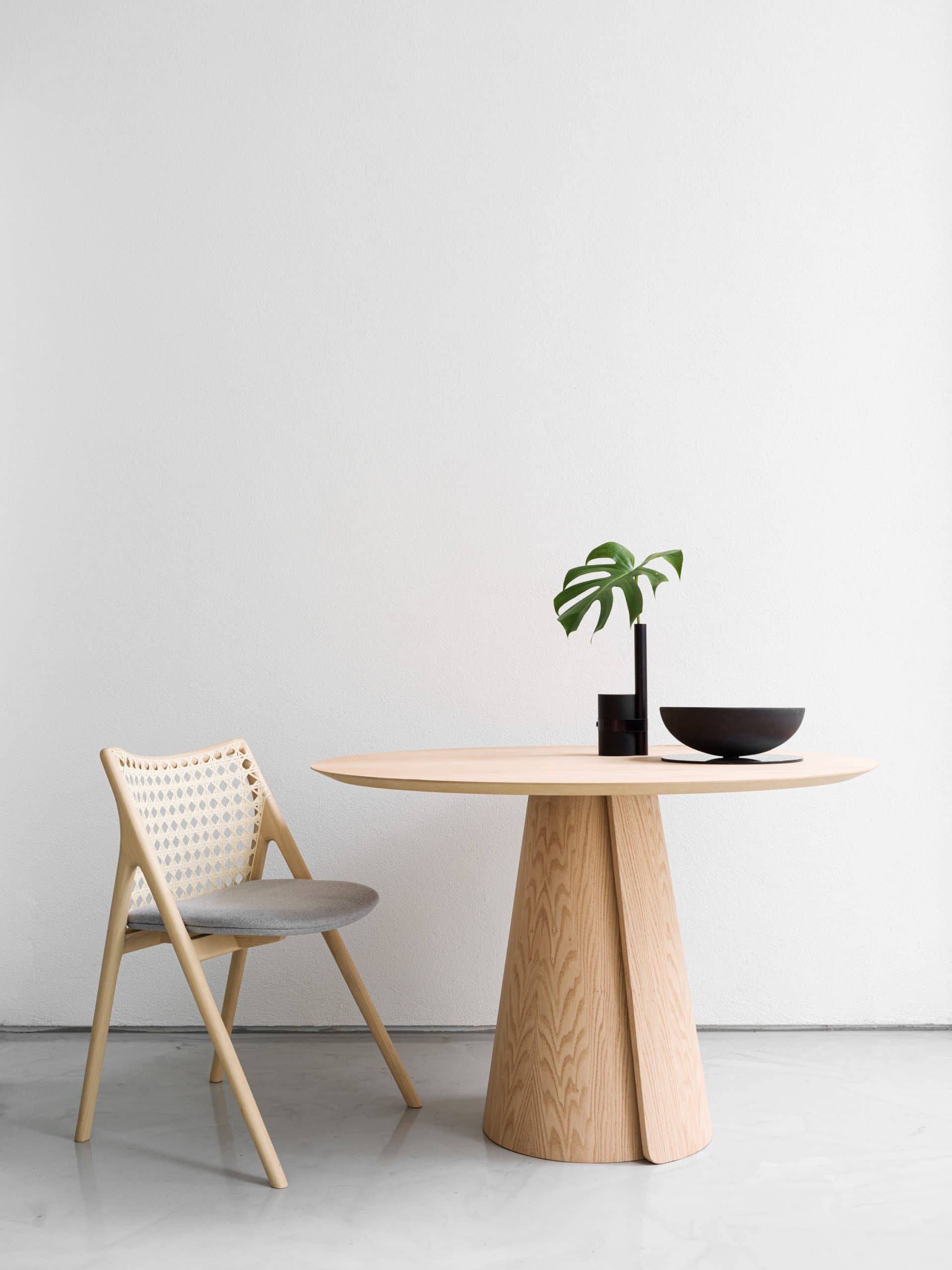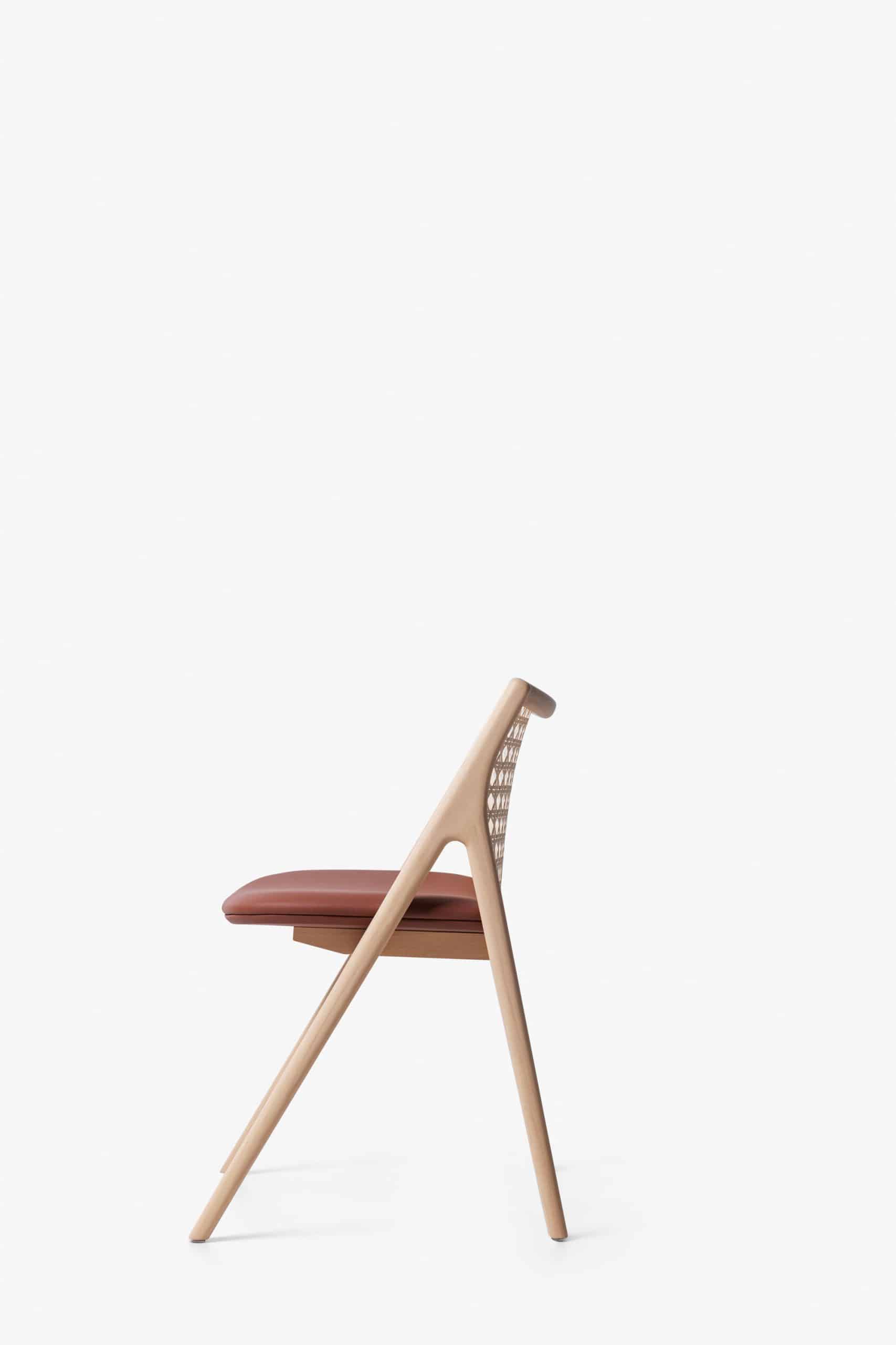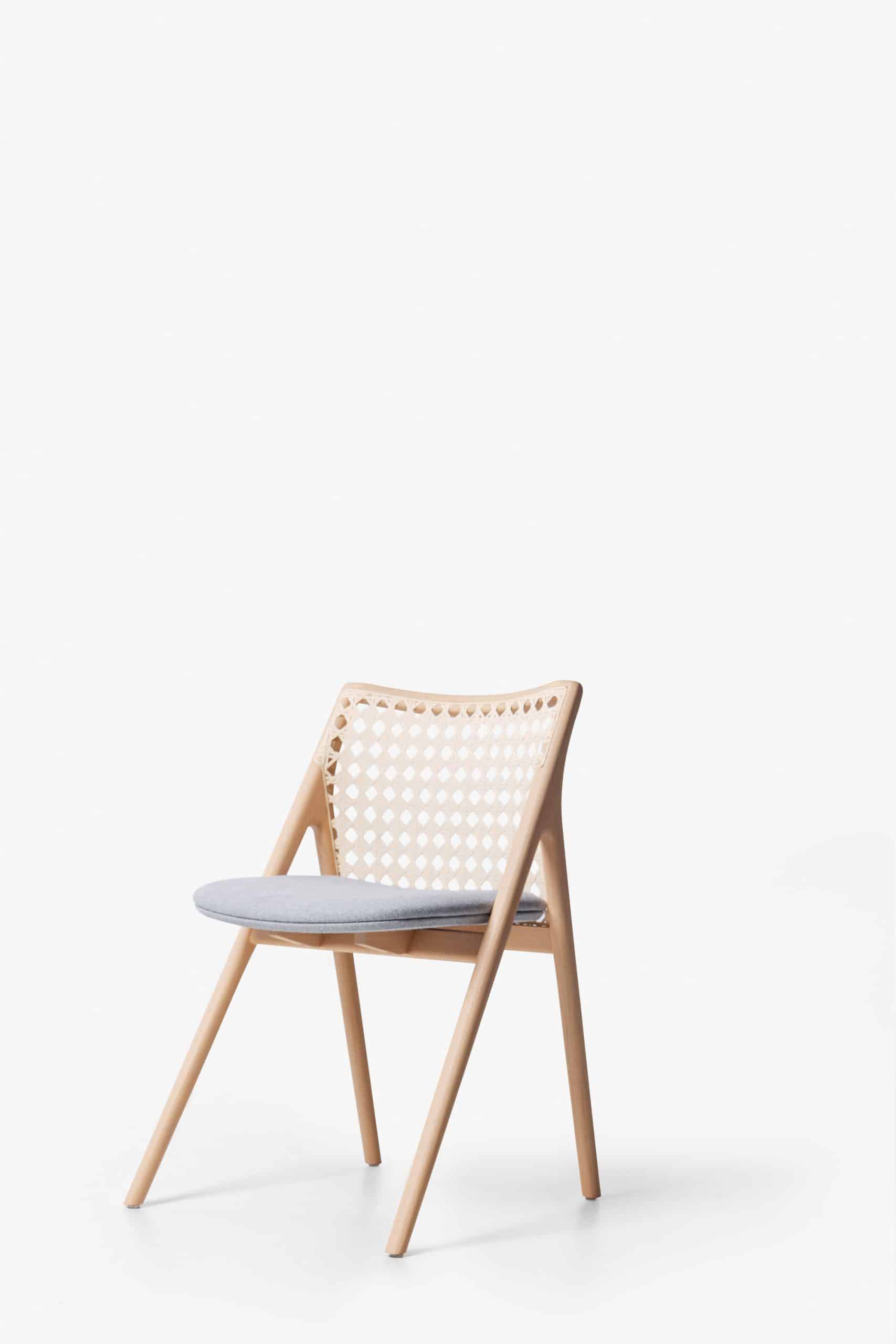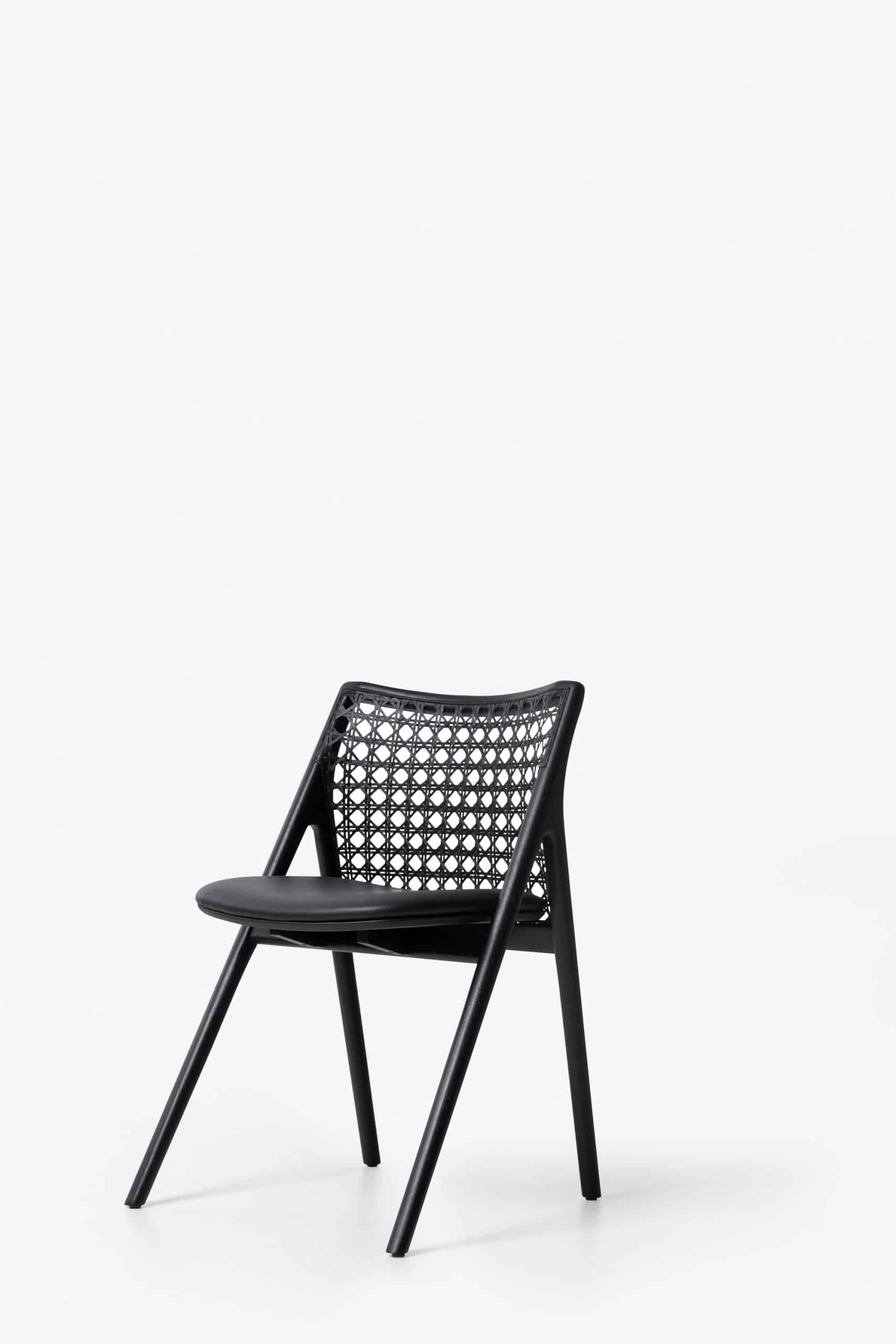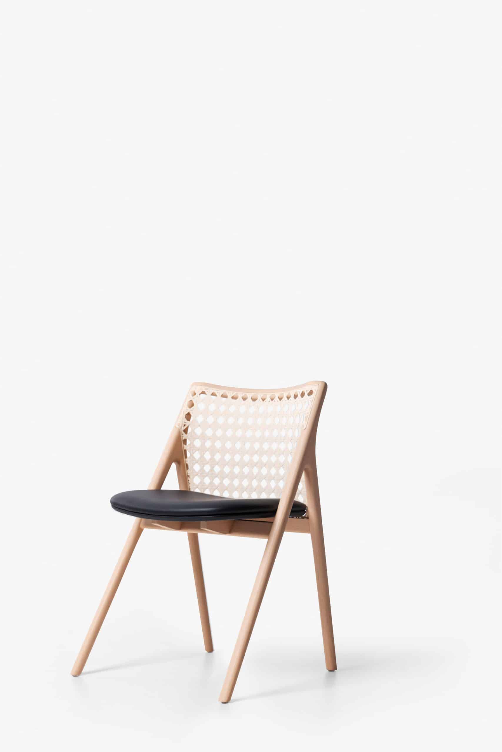 A poltrona Tela deu origem a uma nova versão de cadeira de jantar. Assim como sua versão inicial, a trama do encosto é inspirada na clássica “palhinha” encontrada no mobiliário Modernista brasileiro. O desenho da trama foi recriado em uma nova escala e tem o algodão como matéria-prima — ao invés da palha — para maior conforto e durabilidade. O desenho busca o máximo conforto com mínima estrutura, estética leve e uma memória tropical.