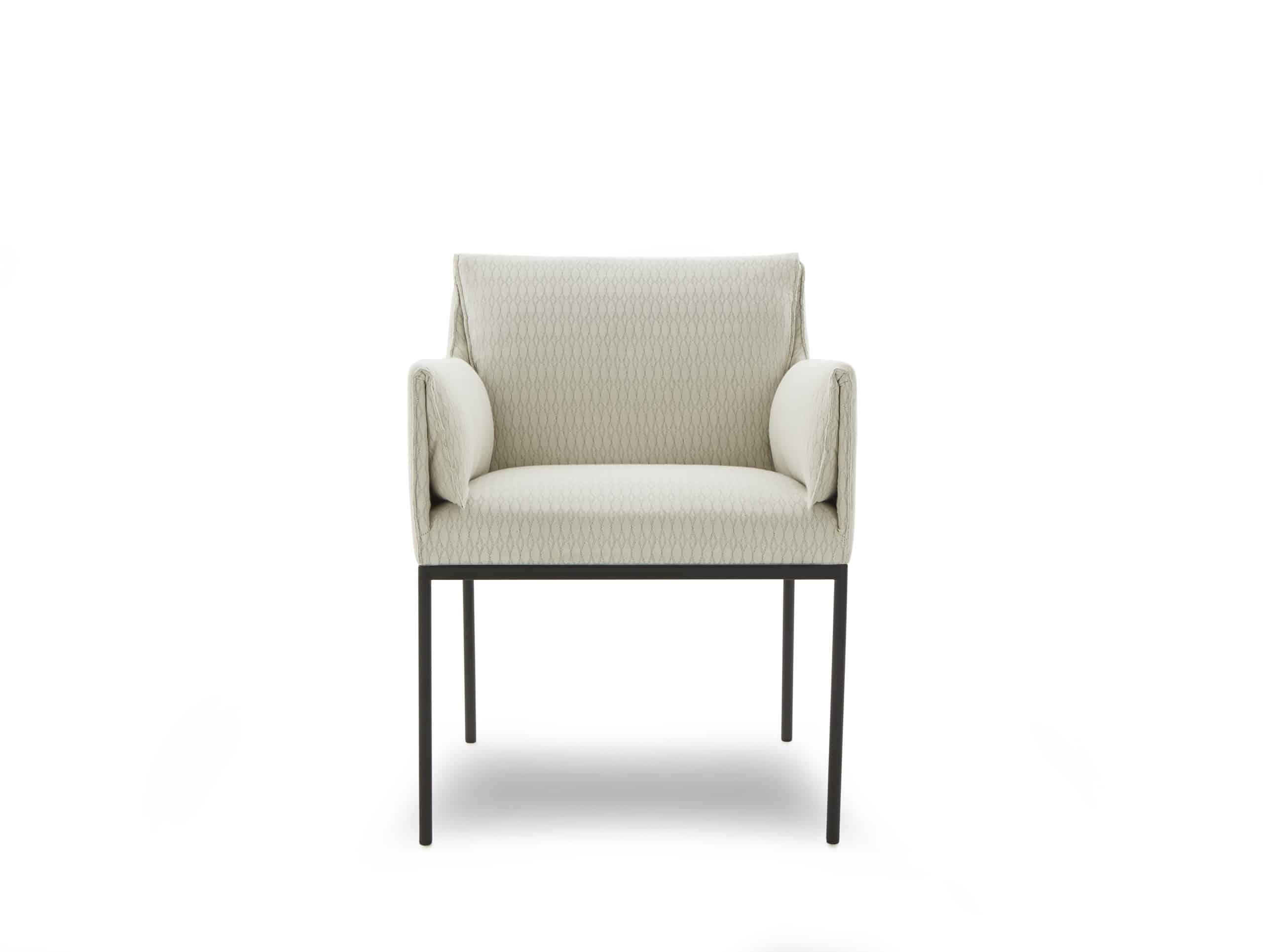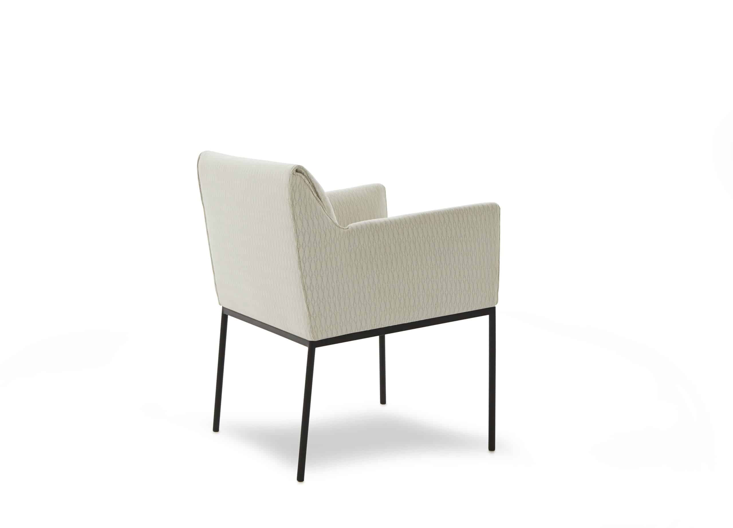 Uma cadeira que traz consigo o aconchego de um sentar amparado pelos braços e encosto, que recaem para o interior da peça.