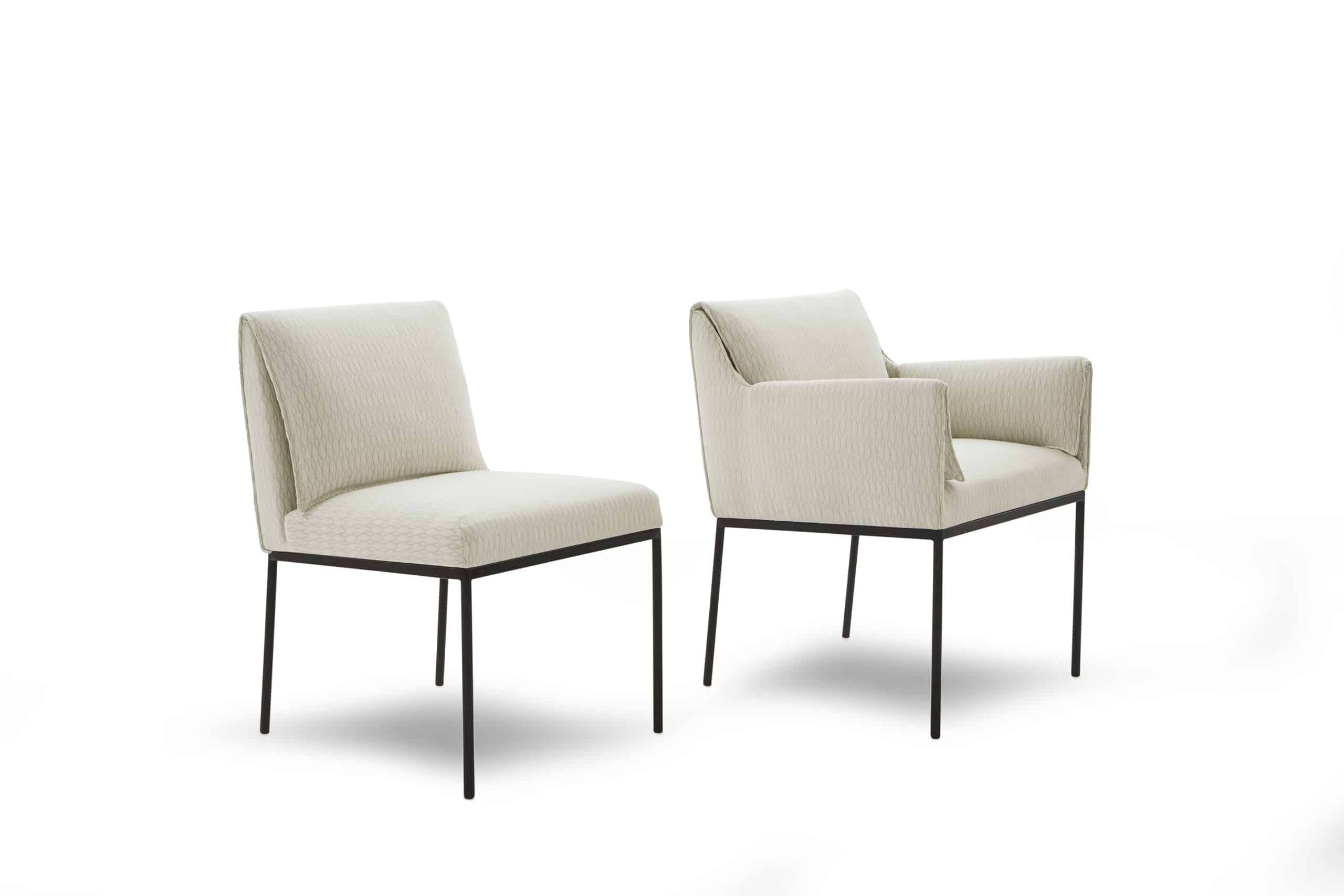 Além de proporcionar maior conforto e um contraste entre a parte externa, mais rígida, e o interior despojado, os braços e o encosto incitam a curiosidade e estimulam a interação entre o indivíduo e o objeto. Buscando equilíbrio físico e formal, a cadeira Virah combina sua parte estofada a pés de perfis finos e delicados que a elevam do solo, criando um vão livre abaixo dela.