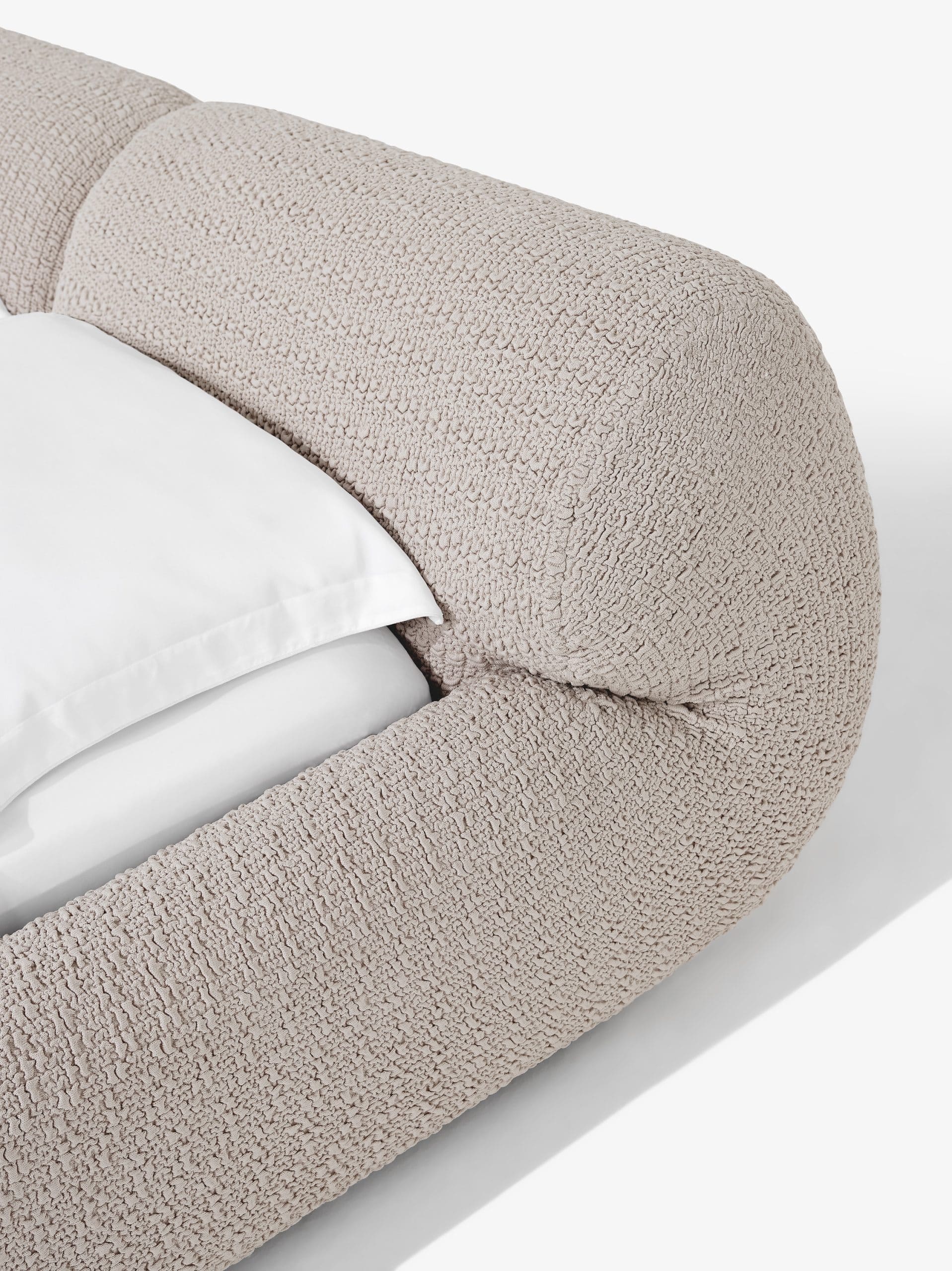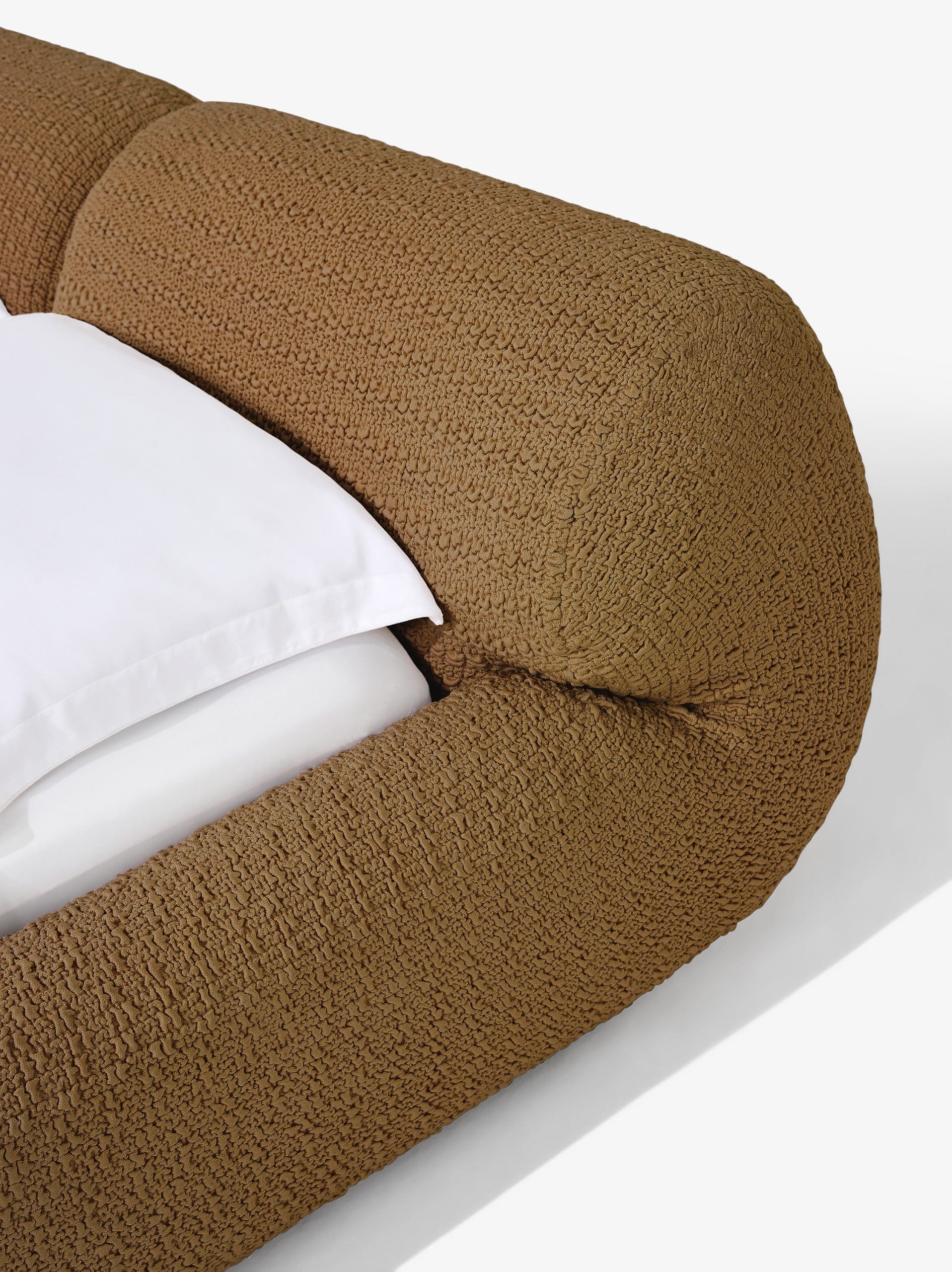 A série Dobra foi criada a partir de um gesto natural: dobrar um material macio. Em cada peça, aplica-se uma força que respeita a resistência e a densidade da espuma. É como se uma grande almofada se curvasse e pausasse no tempo.
