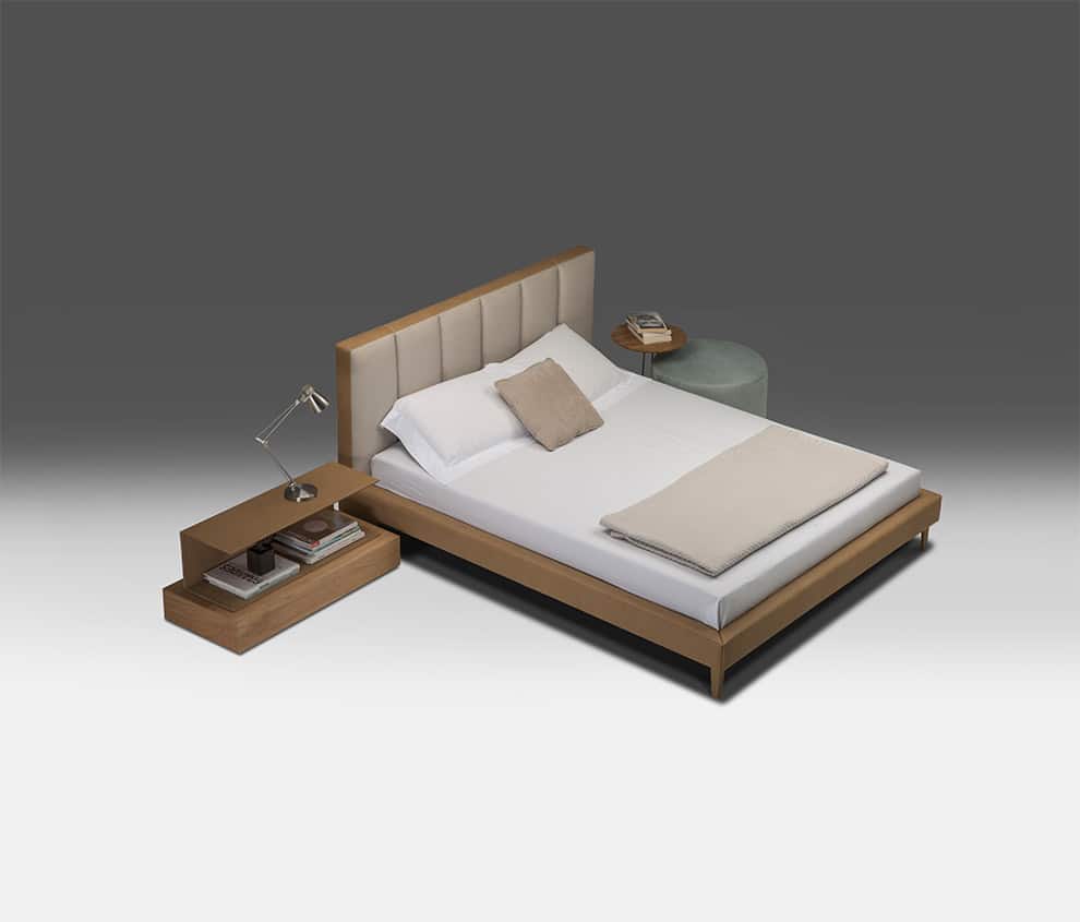 Formas que remetem ao conforto extremo, trazem à Cama Leine detalhes marcantes, que vão desde a cabeceira gomada até a base, onde o acabamento estende-se da base estofada até os pés. Característica de um produto que enche os olhos de quem vê.