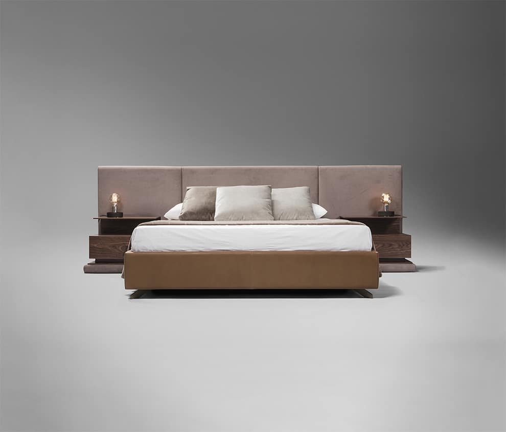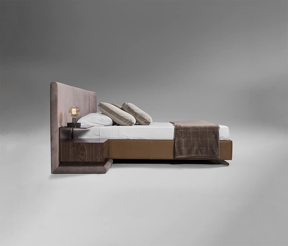 Uma cama suntuosa com um design elegante e funcional, assim podemos definir a Cama Lounge. A cabeceira e base estofadas formam uma peça única, seguida da base do colchão que projeta-se para fora e recebe pés metálicos. Os gaveteiros em madeira laminada são elementos que completam a composição de uma maneira bela e util.
