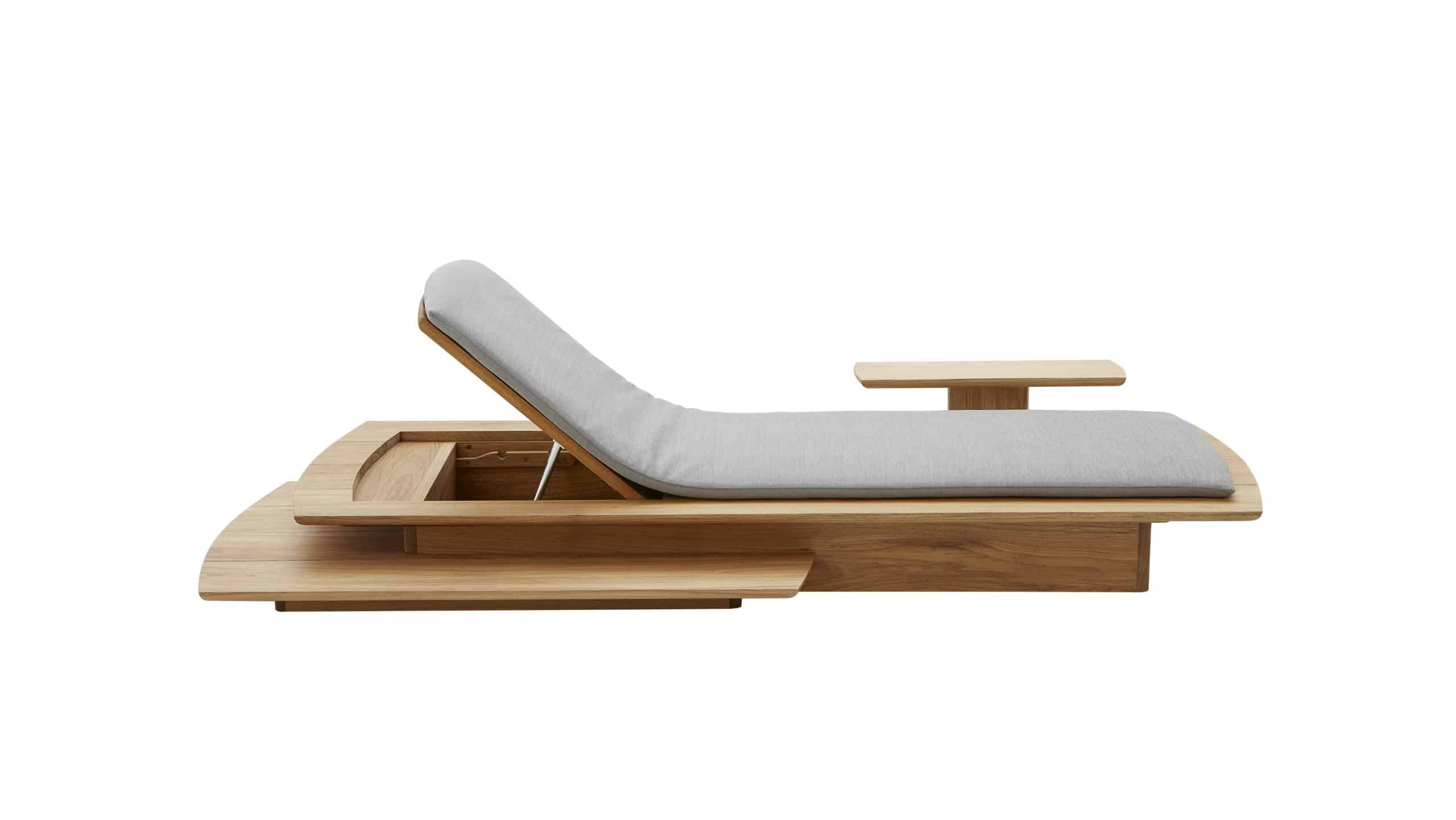 A espreguiçadeira Move apresenta um desenho que se funde de forma sutil à arquitetura na qual está inserida.