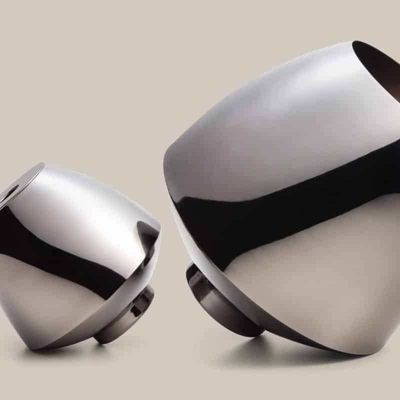 Objetos decorativos e utilitários de luxo. Produzidos em latão, podem receber banho em diversas tonalidades, com destaque para os acabamentos inéditos: oliva e ameixa, resultados de processos de oxidação controlada.