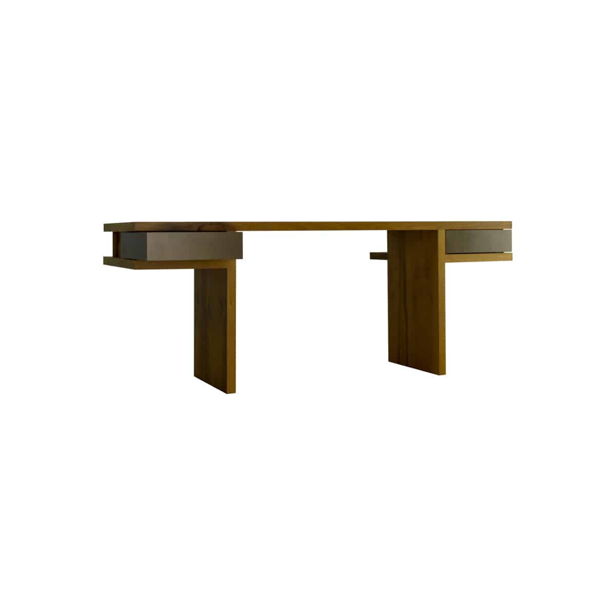 Linhas retas e detalhes simples fazem da escrivaninha GZ ser especial. Feita para o apartamento do Gilberto em NY cumpre sua função de mesa de trabalho com canaletas para ocultar cabos elétricos e gavetas laterais. A coleção tem como componente o carrinho lateral que serve de apoio. Feita em aço e madeira, deixa qualquer escritório chique.