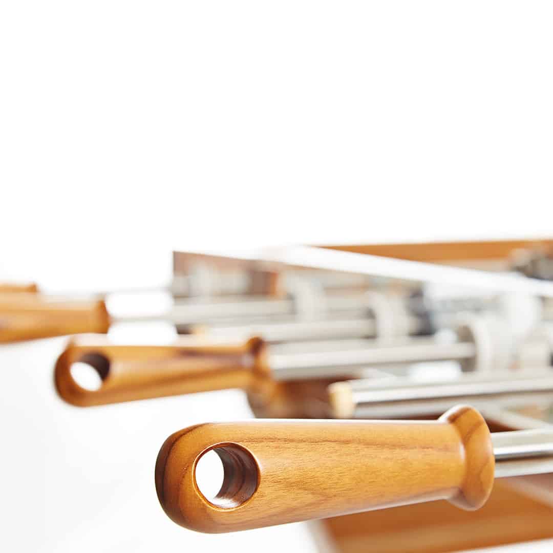 O pebolim Pulse foi inicialmente desenhado para a academia Pulse Health & Fitness, projeto do escritório Rocco Vidal P + W. Sua singularidade reside nos materiais utilizados, como acrílico, metal e vidro.