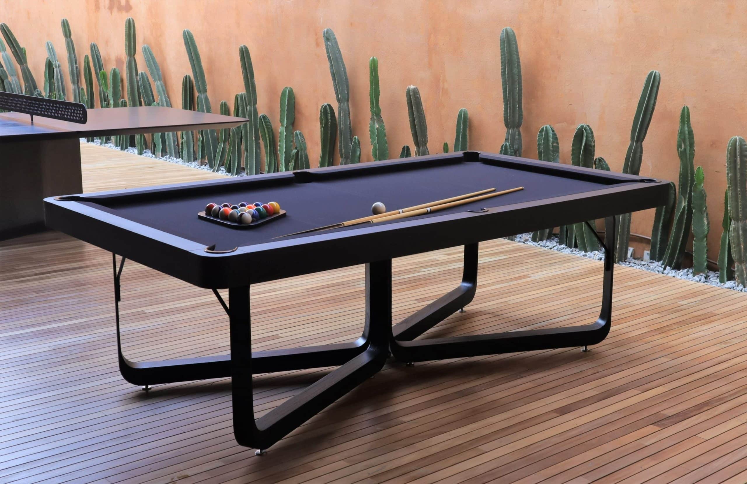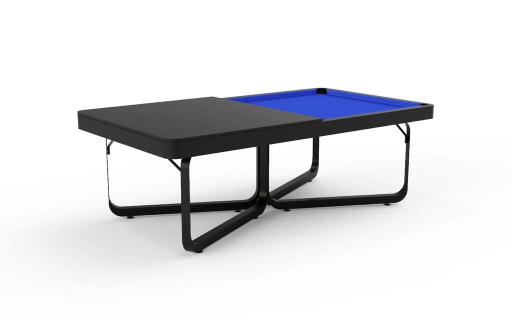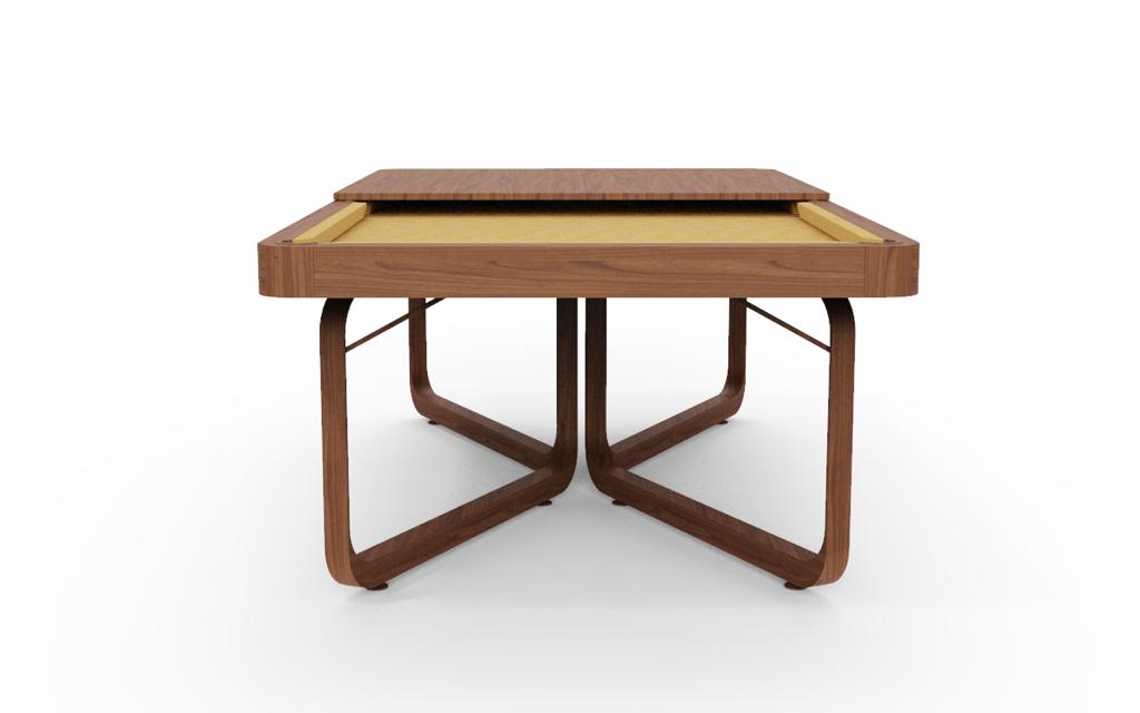 A Mesa apresenta dupla funcionalidade: com um tampo de madeira removível, pode ser facilmente convertida de uma mesa de sinuca para uma mesa de jantar. Versátil e prática, assegura entretenimento e utilidade em um único móvel.
