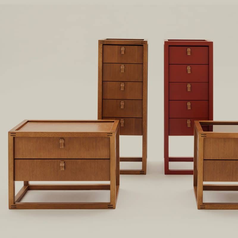 Gaveteiro com base de madeira certificada, tampo de vidro pintado, couro ou espelho bronze. Puxador em couro natural. Base e tampo disponível em diversos acabamentos.