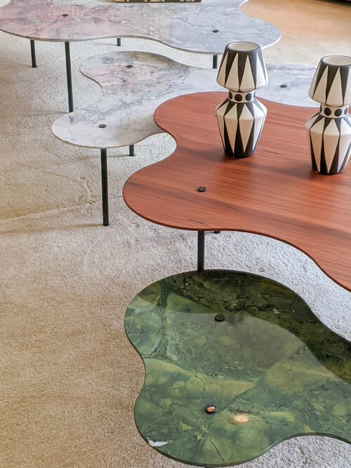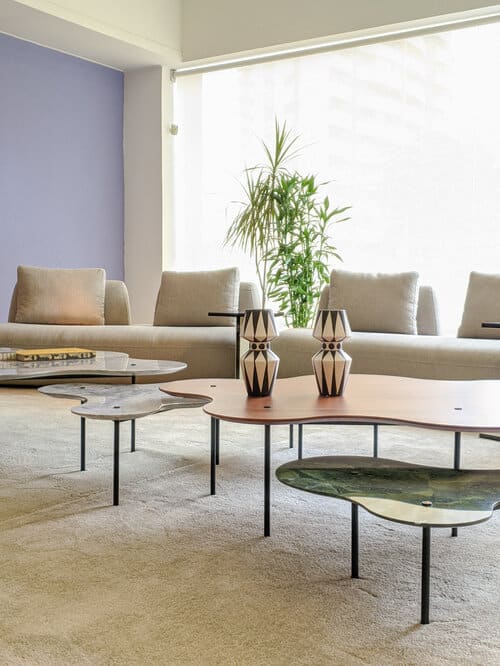 As mesas Botanique, além de possuírem design marcante e singular, fazem ode à obra de um dos maiores paisagistas do Brasil, Roberto Burle Marx, e seus jardins sinuosos. A carga cultural depositada nas mesas se estende ao uso exclusivo das rochas nacionais, em cores e texturas exuberantes, que remetem às riquezas materiais e imateriais do Brasil.