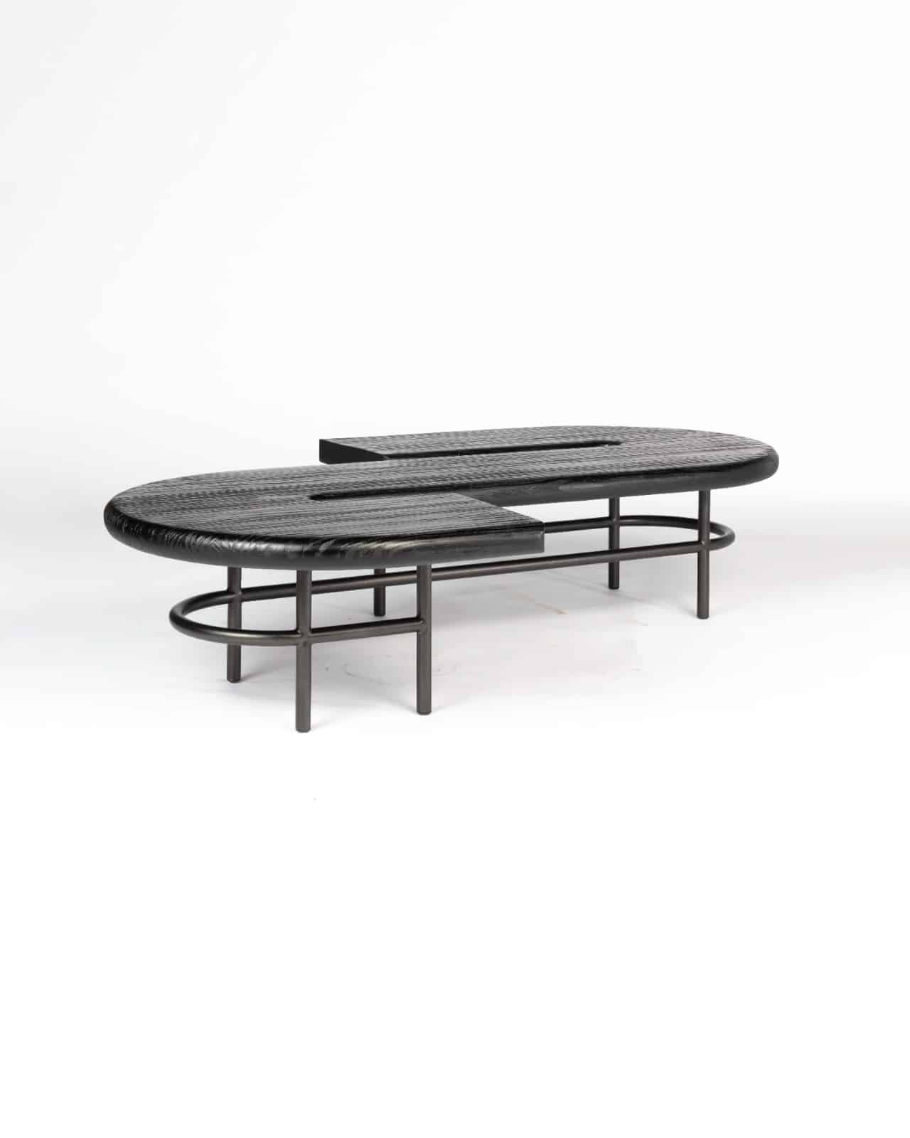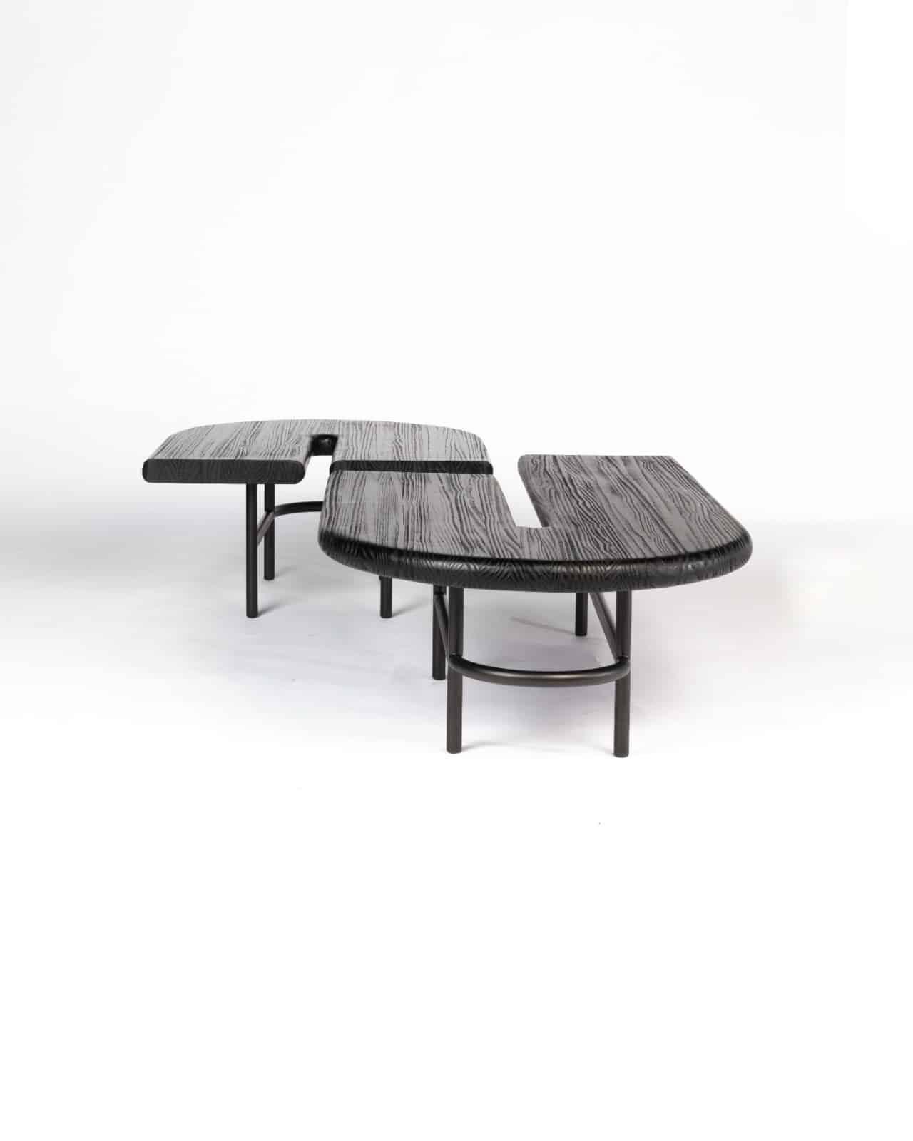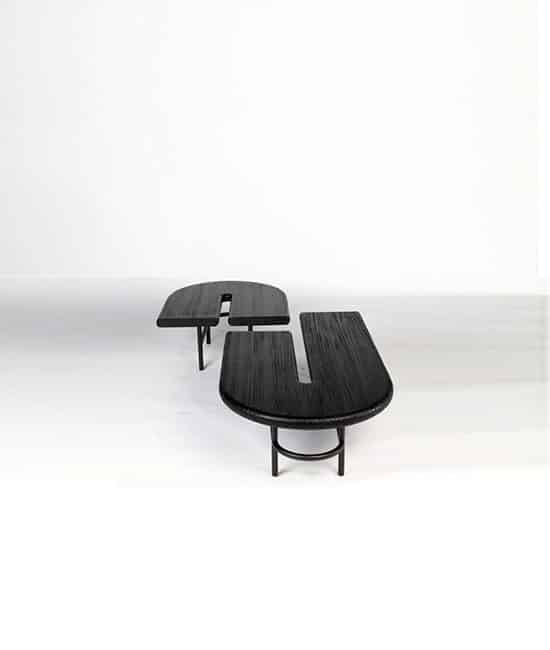 A mesa de centro Estrada de Santos possui vários formatos modulares que se complementam. Ela traz um design curvilíneo e pode ser usada de forma individual ou em composição com as demais peças.