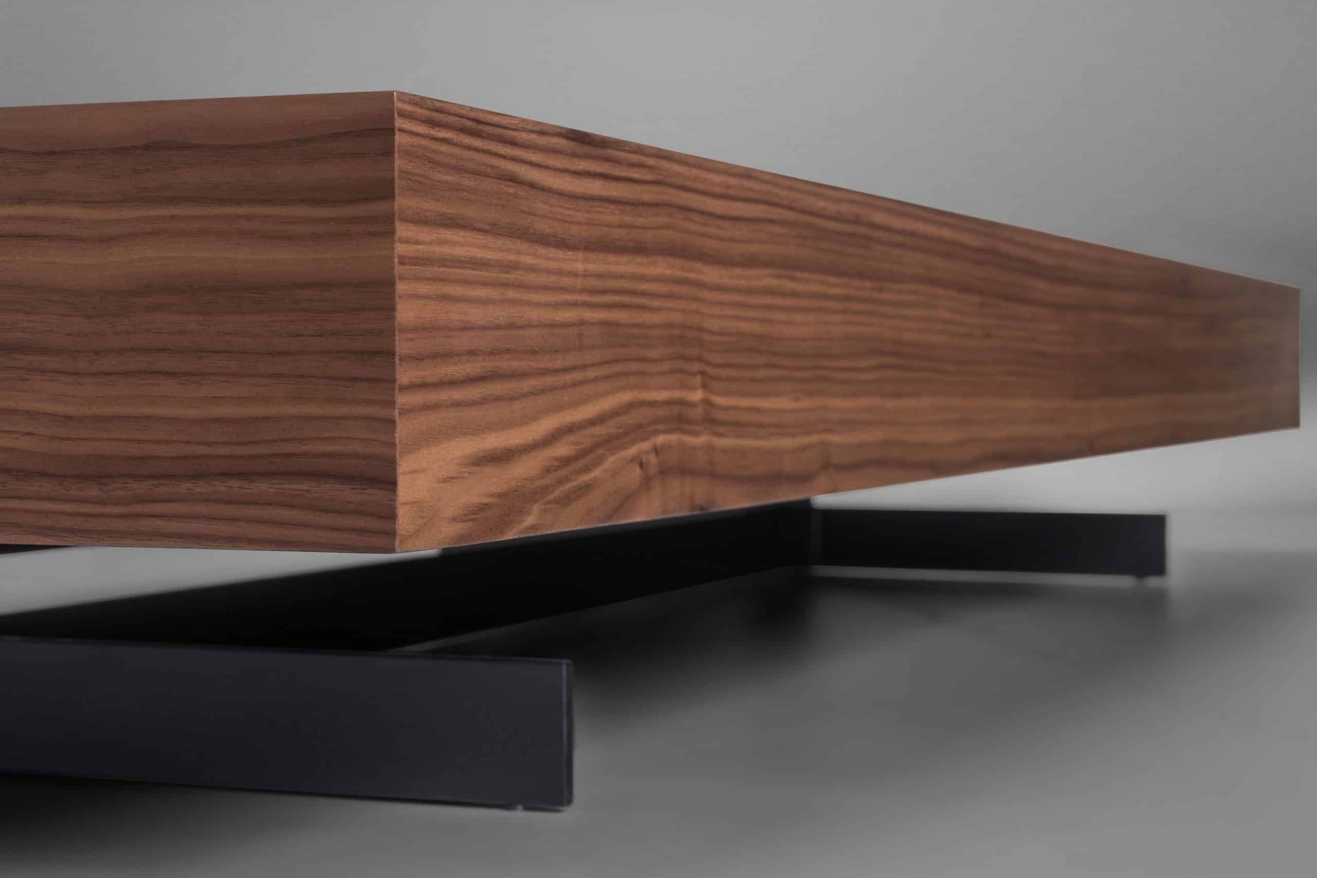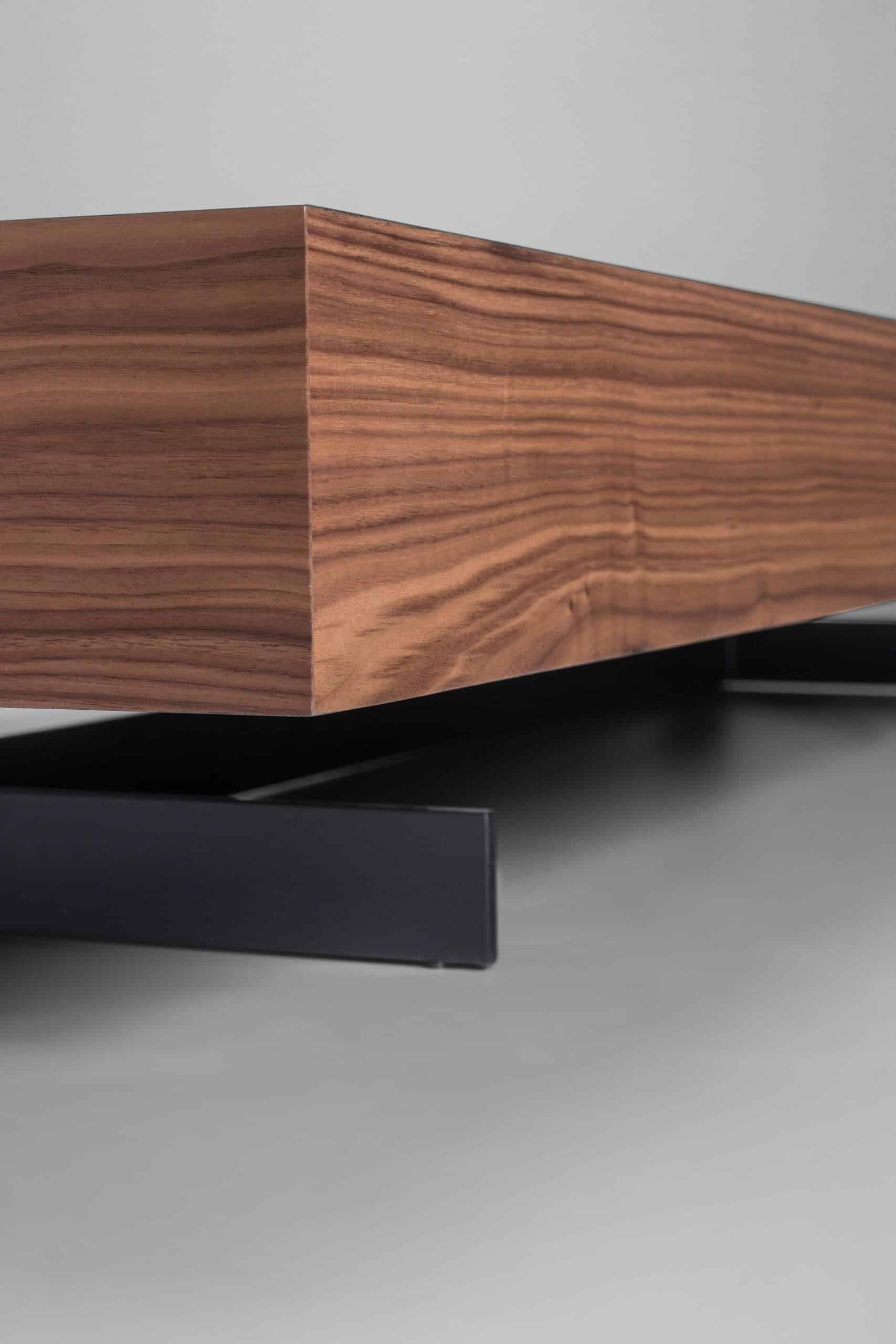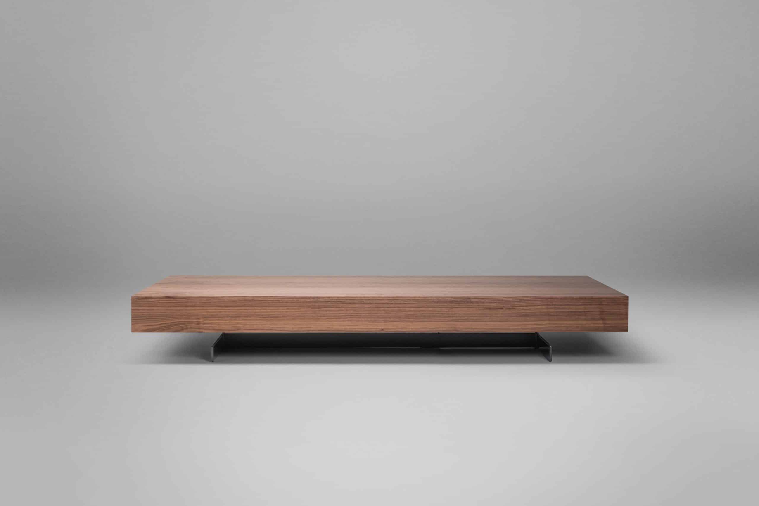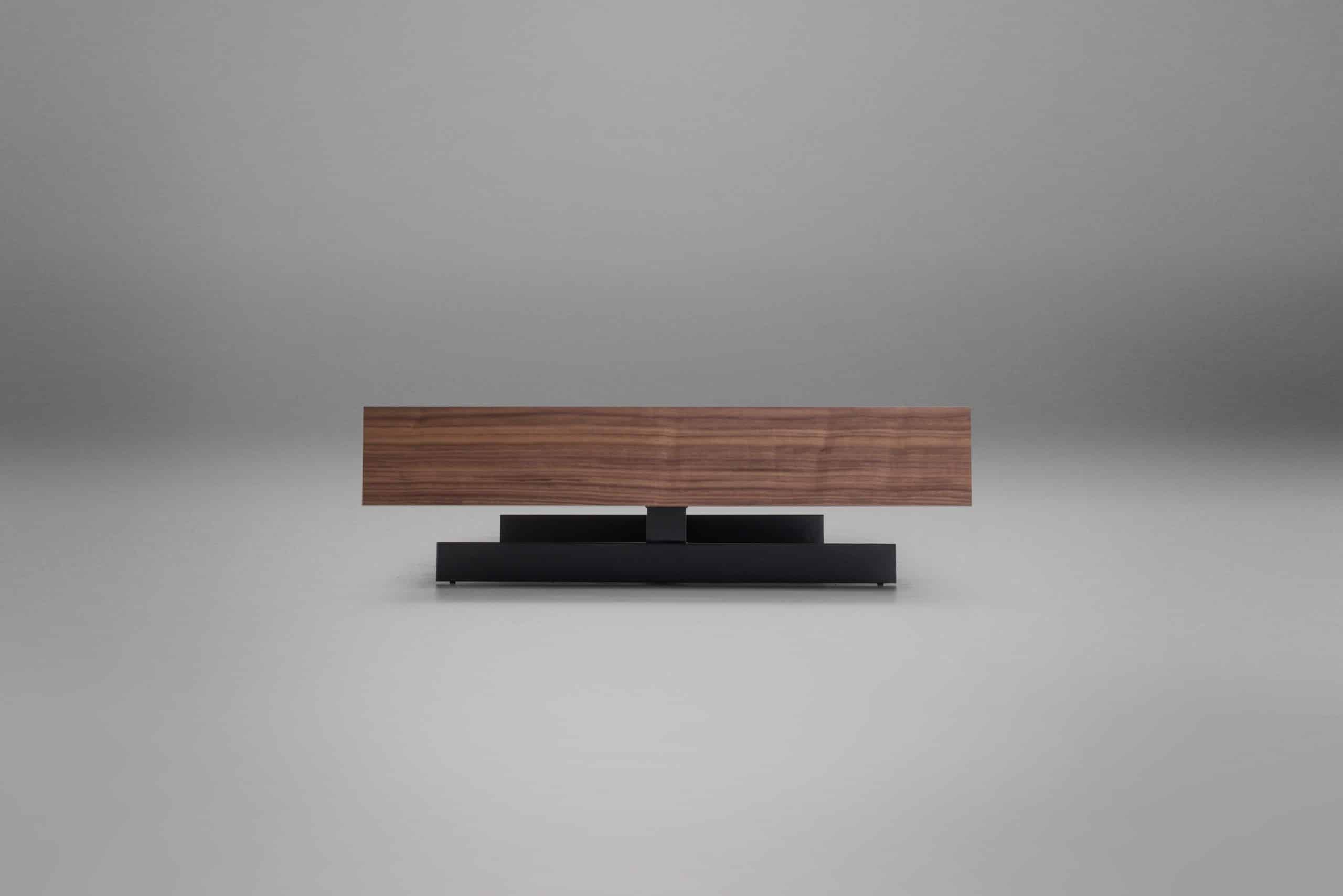 O tampo espesso em lâmina de madeira fixado sob os pés metálicos, desafia nossos sentidos em um desenho leve e simples que parece flutuar no ambiente, em contraste com o aspecto robusto do material. A Mesa de Centro Fly convida para uma nova percepção dos volumes que compõem o espaço.