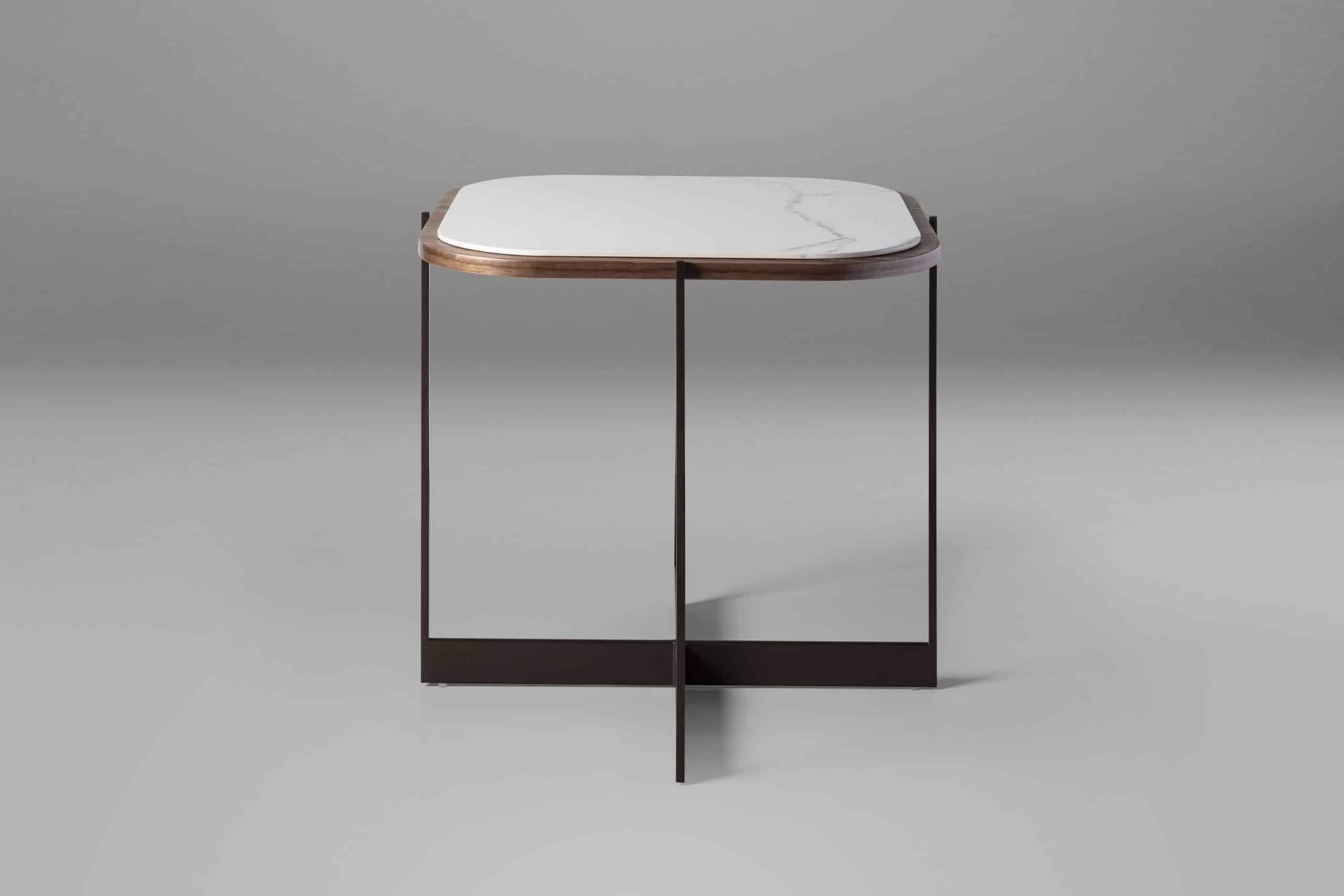Precisão e racionalismo são reconhecidos como características essenciais do design alemão, que são as referências para o desenho da Mesa Hamburgo. As linhas retas da estrutura metálica que formam a base e sustentam o tampo duplo, confeccionado em madeira laminada e pedra.