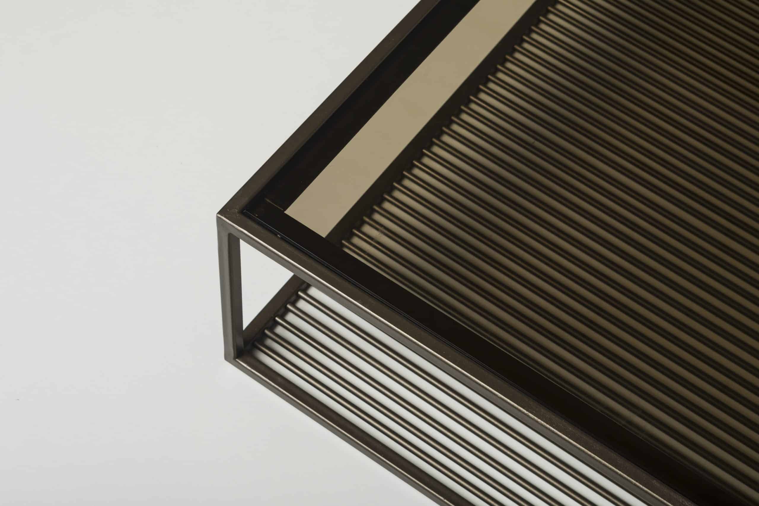 A mesa de Centro Palitos Simples conecta materiais distintos a sua estrutura metálica, mesclando textura e funcionalidade. Seu design moderno e de aparência leve permite que a peça componha facilmente qualquer ambiente, sendo igualmente útil e bela.