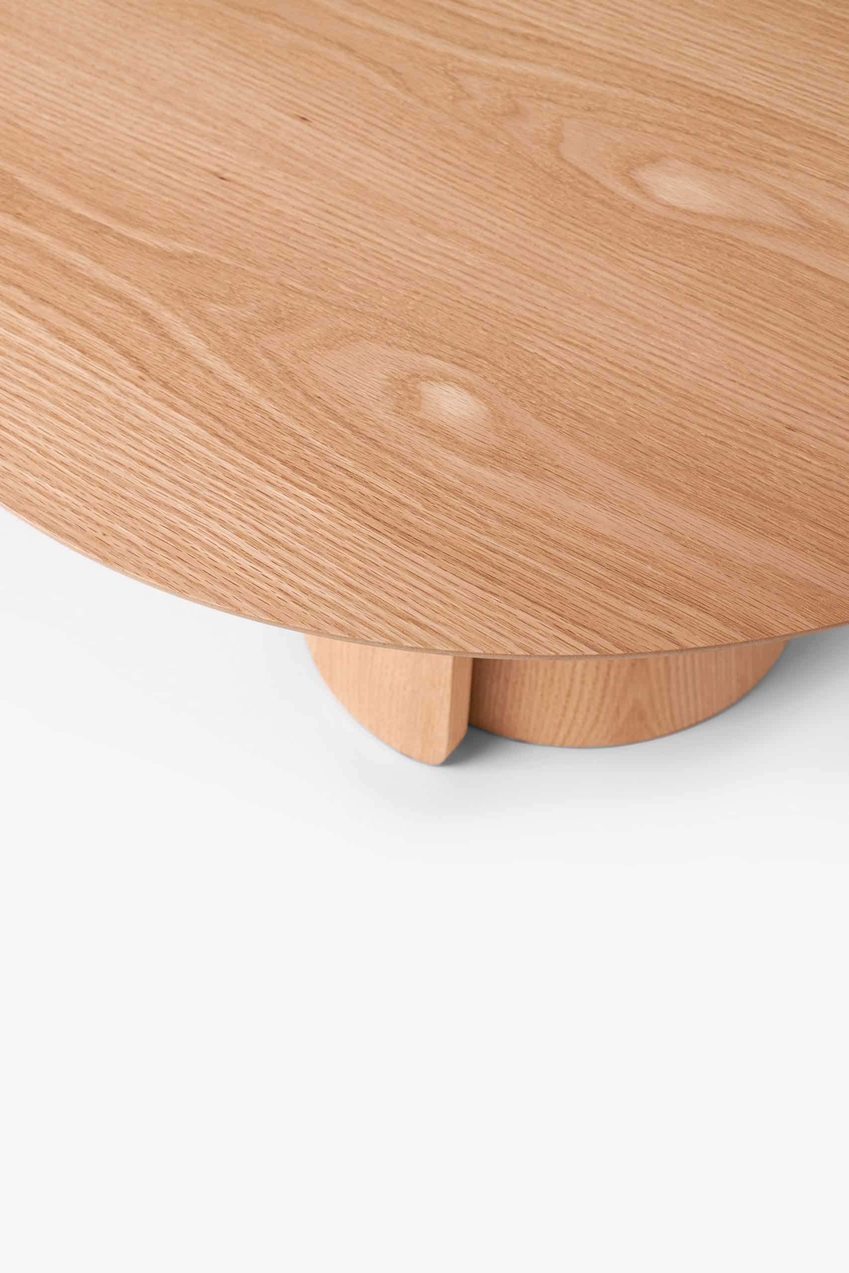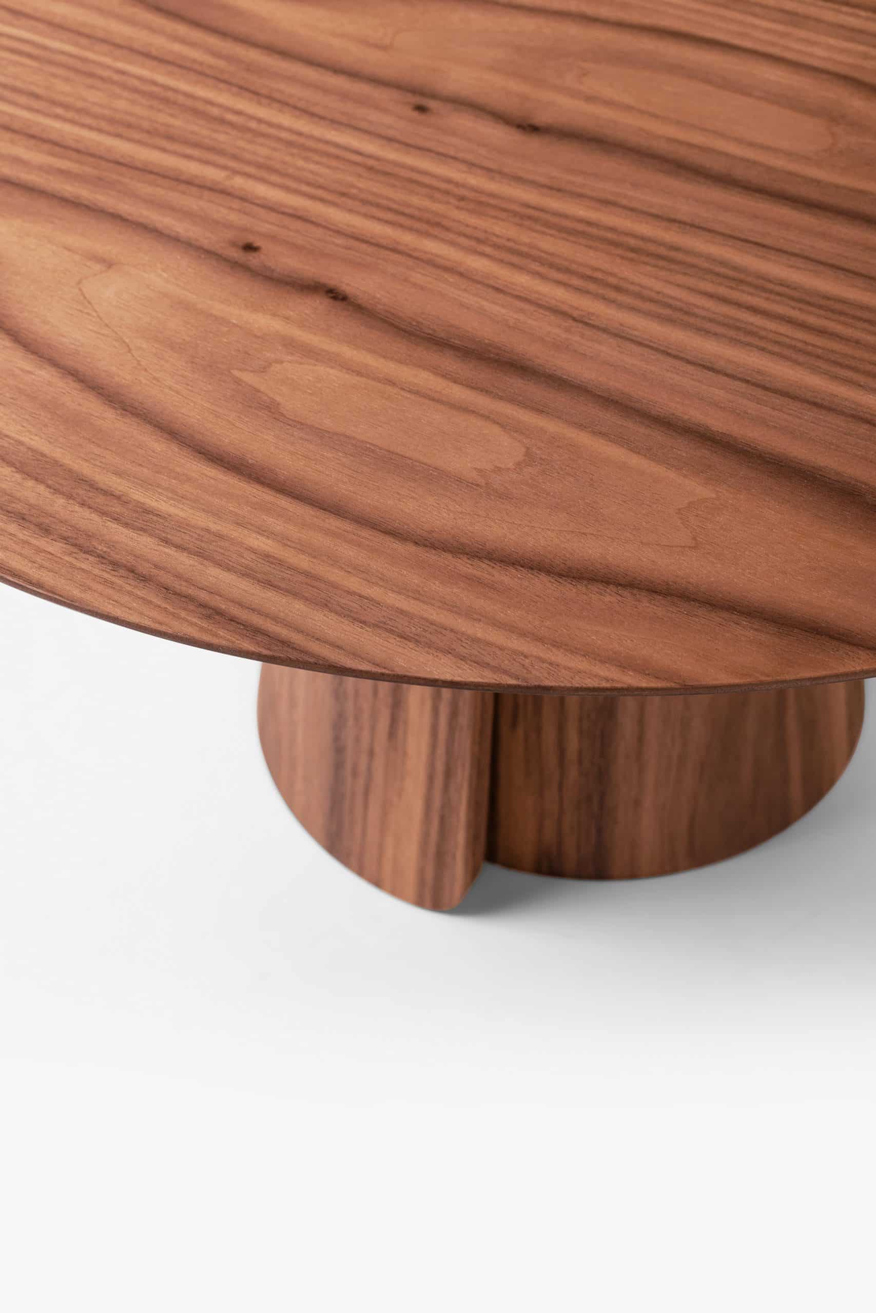 A mesa Volta faz referência à natureza na sua impermanência. O detalhe da base sugere os movimentos naturais e remete às lógicas de construção da natureza, enquanto a superfície com veio evidente da lâmina natural de madeira reforça o conceito orgânico da peça. A mesa de centro também pode servir como lateral, individualmente ou em pares com as outras peças da coleção.