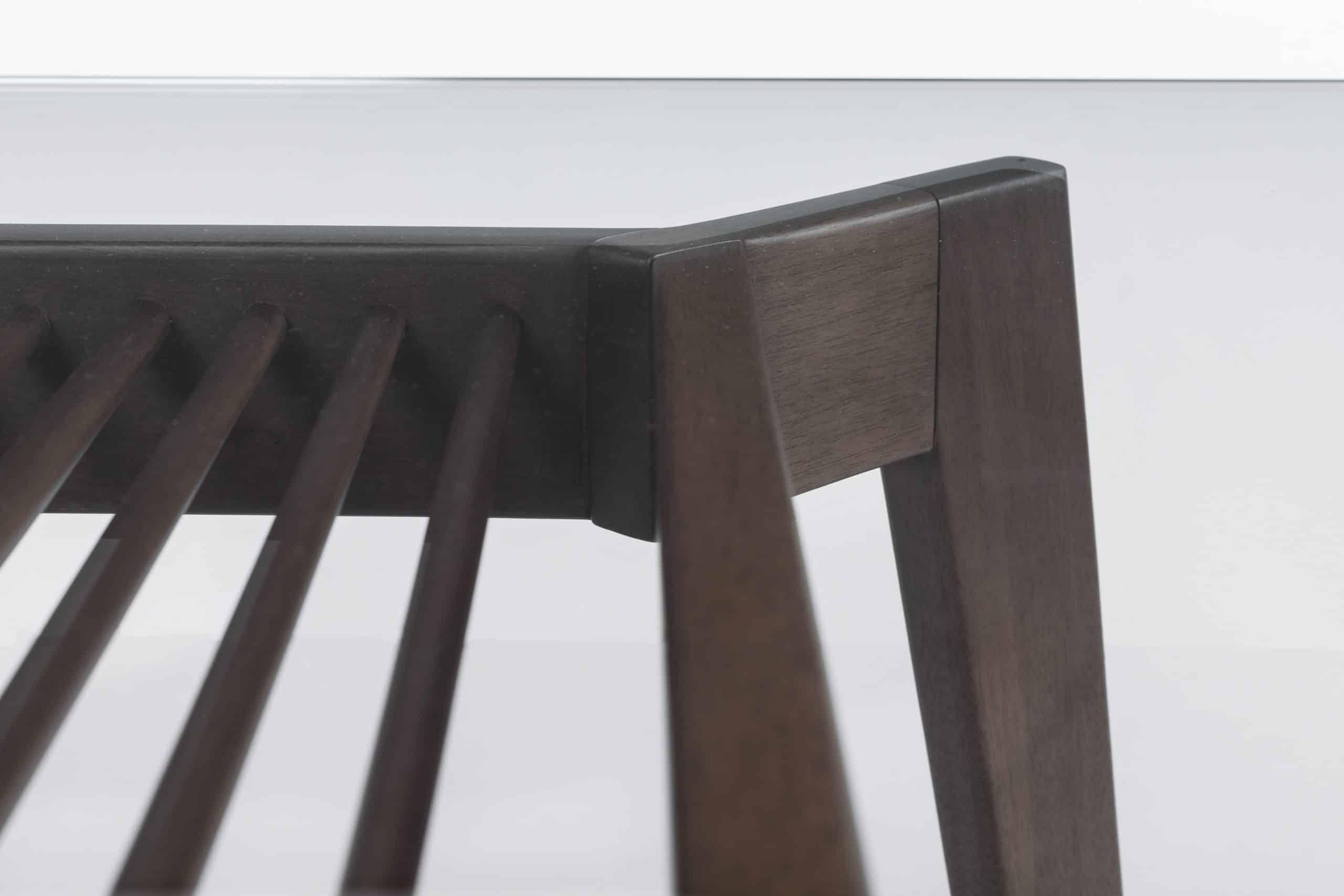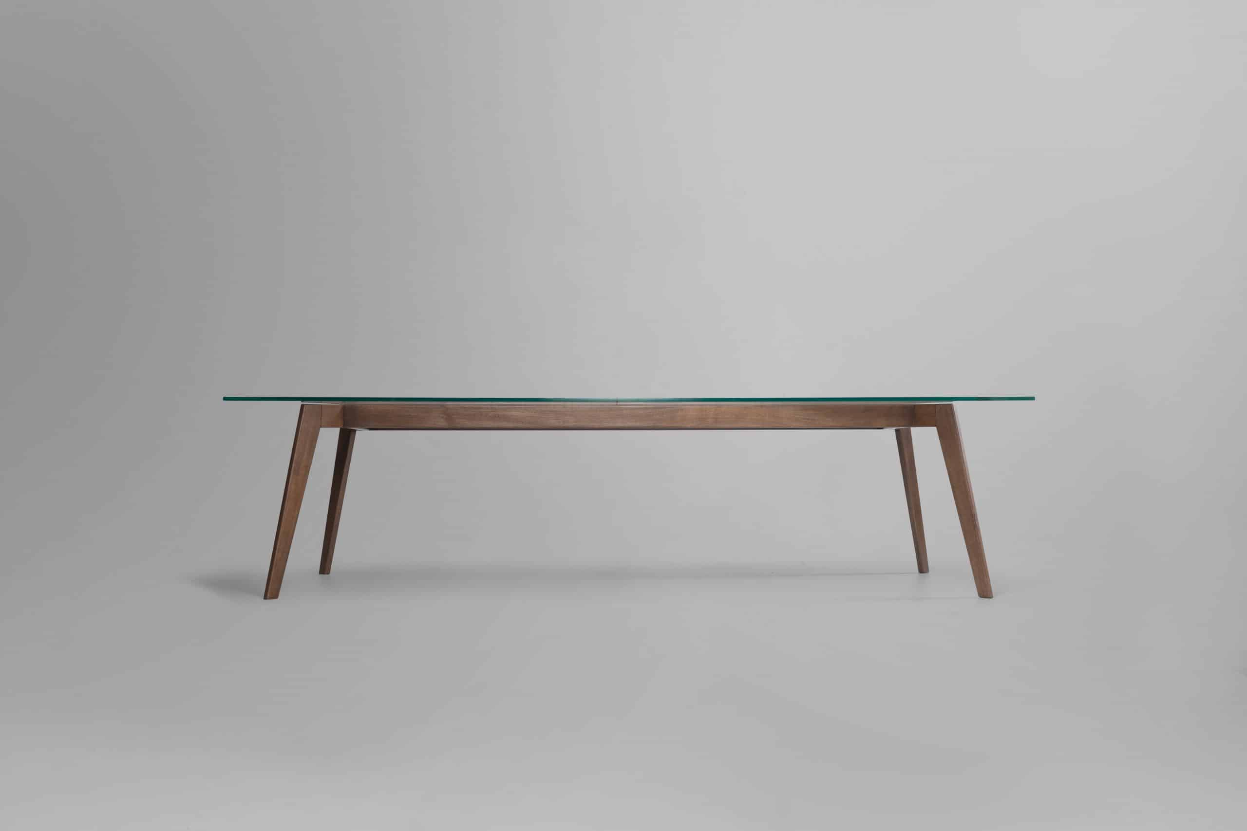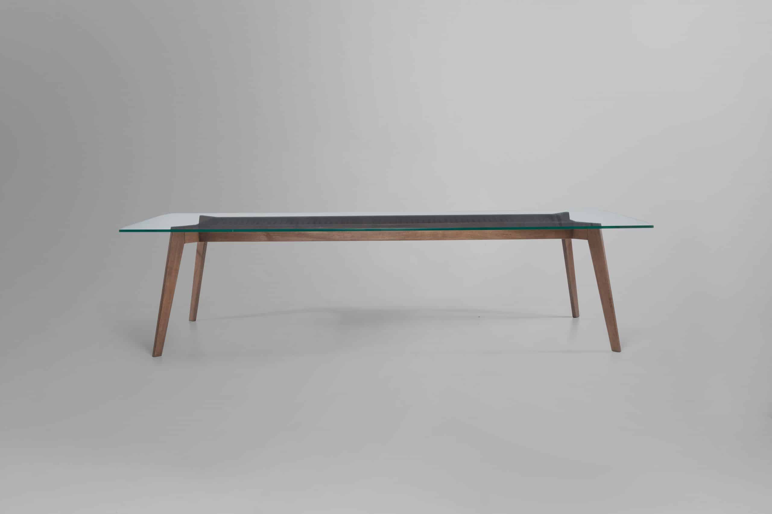 A mesa de jantar Cage reflete o requinte e primor de uma peça produzida em madeira, onde é possível perceber todos os detalhes e qualidade da junção dos componentes. Os pés inclinados e esguios conferem sutileza e complementam a leveza do tampo em vidro, visual que adquire ainda mais valor quando observamos os detalhes em tubos de madeira no centro da peça.
