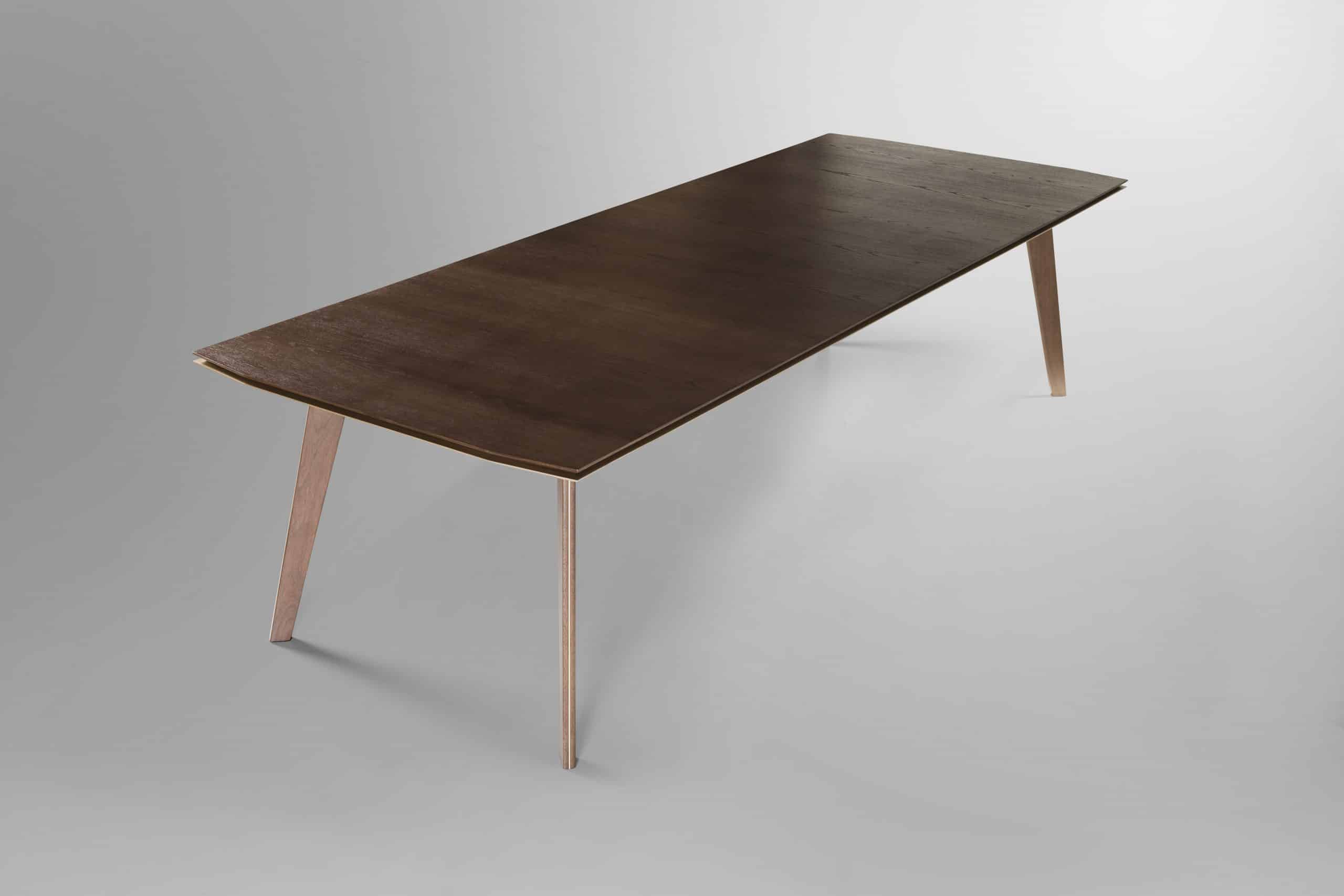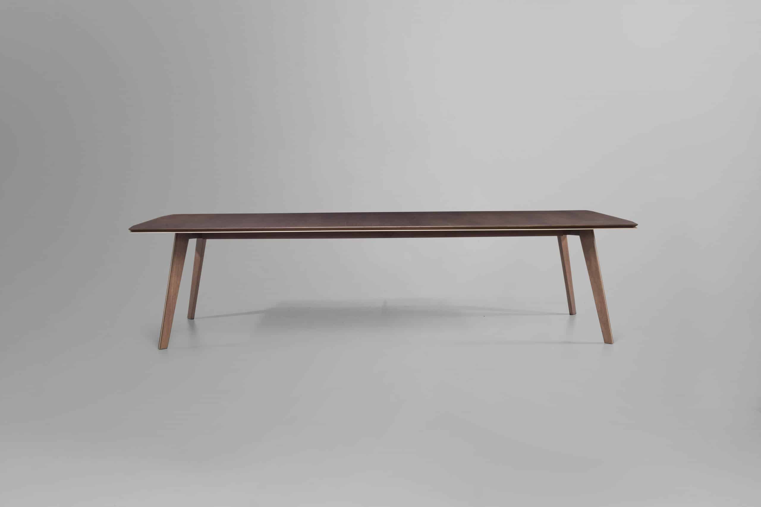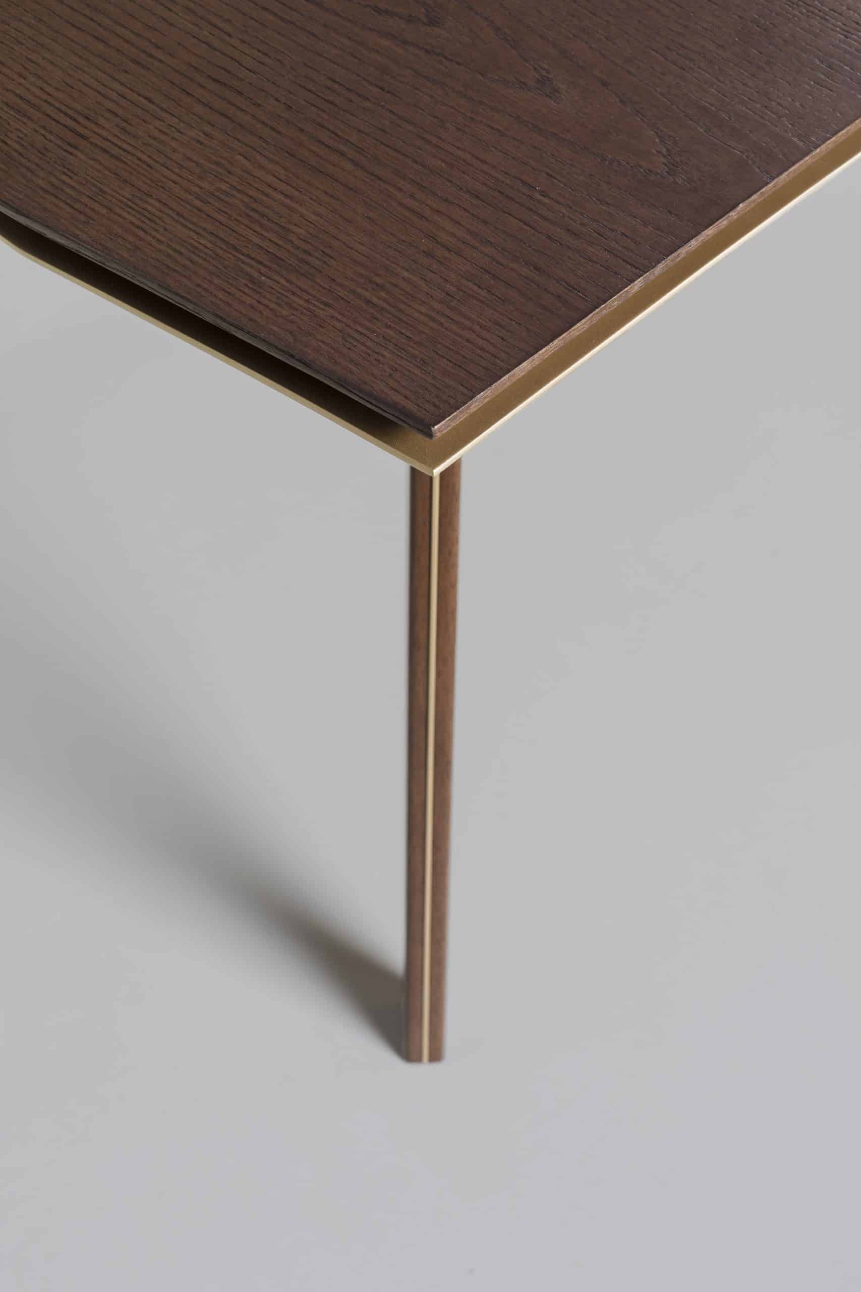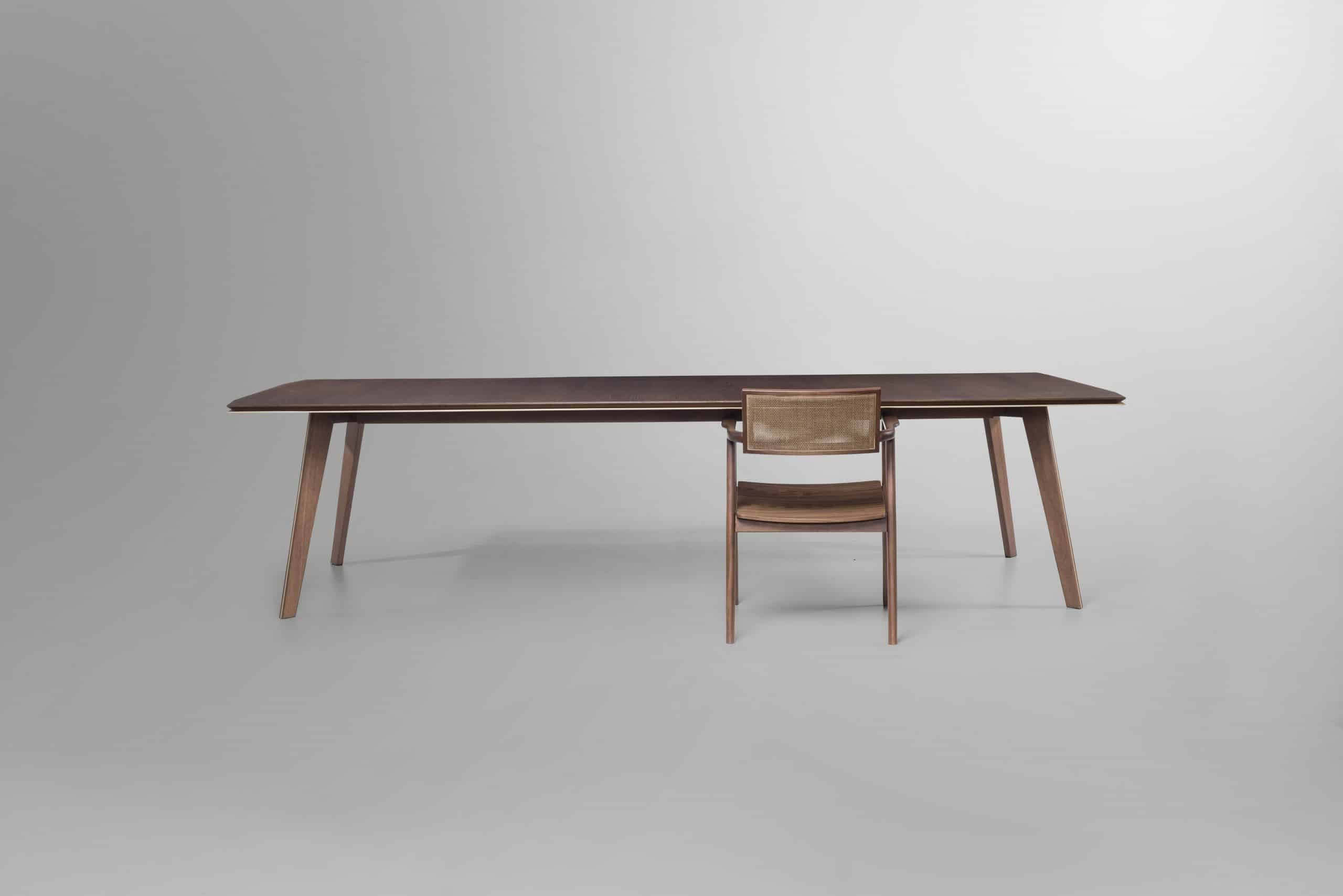 A mesa de jantar Marc atrai a atenção pelo traço preciso e elegante da linha metálica que percorre toda a estrutura da mesa. Aqui, o tampo e os pés em madeira equilibram as texturas e criam uma composição bela e sofisticada, revelando a qualidade e resistência da mesa.