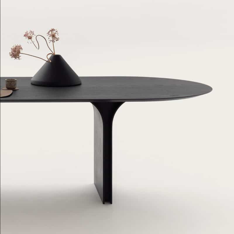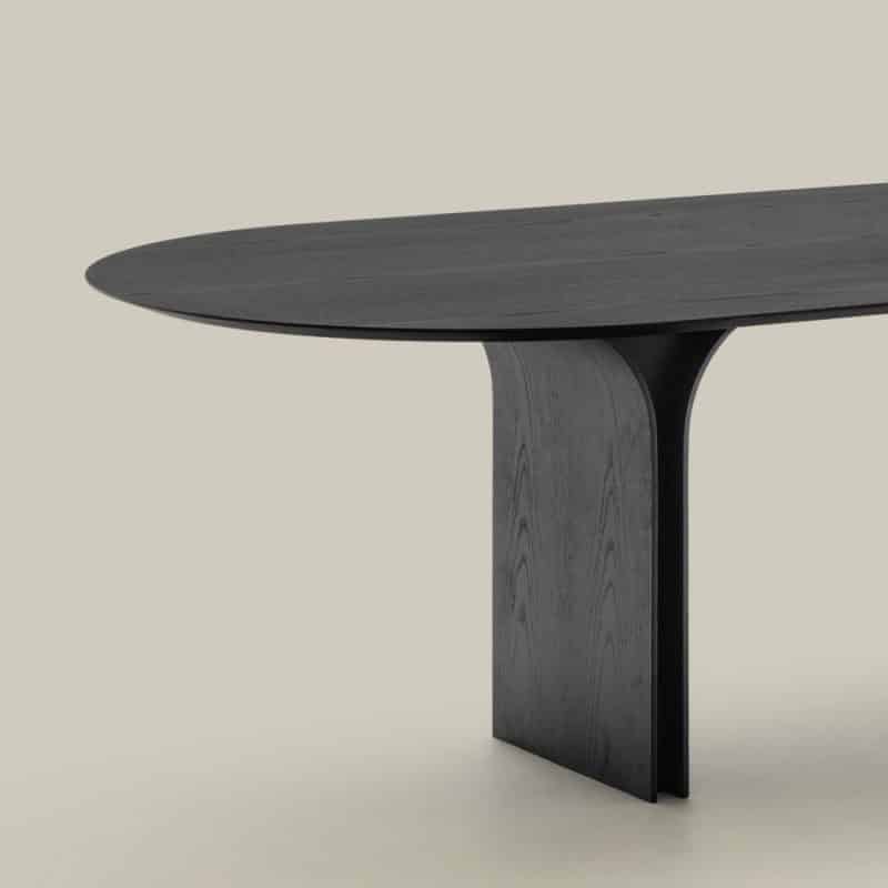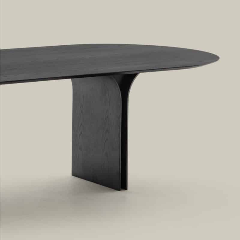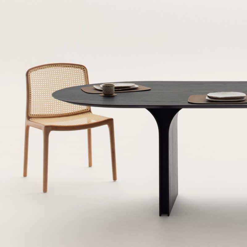 A mesa palma possui contornos delicados, porém marcantes e é estruturada de forma simples e racional, o que possibilita a flexibilidade de largura e comprimento. Mesa de mdf folheado de madeira natural com diversos padrões e tingimentos.