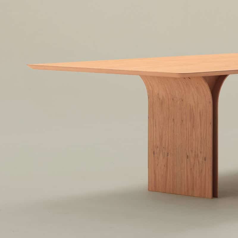 A mesa Palma possui contornos delicados porém marcantes e é estruturada de forma simples e racional, o que possibilita a flexibilidade de largura e comprimento. Mesa de MDF folheado de madeira natural com diversos padrões e tingimentos.
