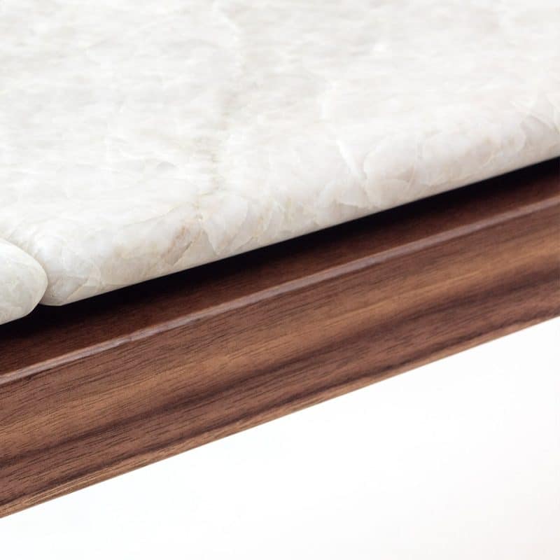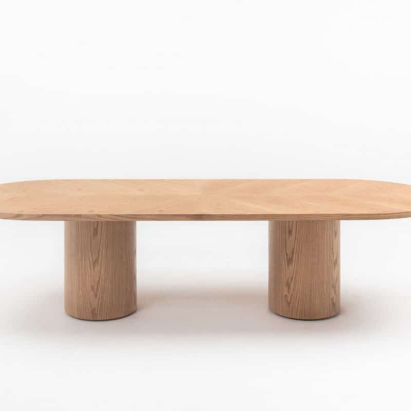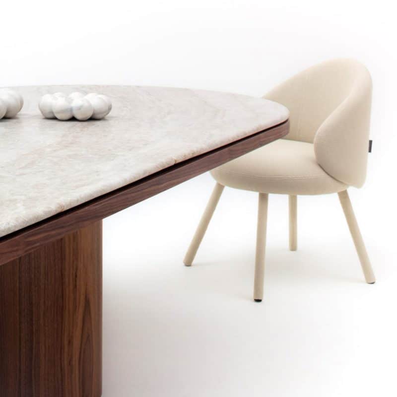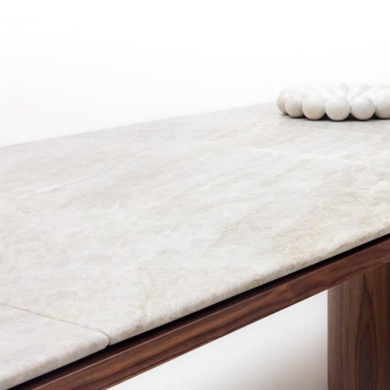 Peça com característica estrutural e arquitetônica em seu conceito. O peso das formas e medidas é aliviado pelo seu tamanho. As proporções e detalhes ajudam na leveza do conjunto.