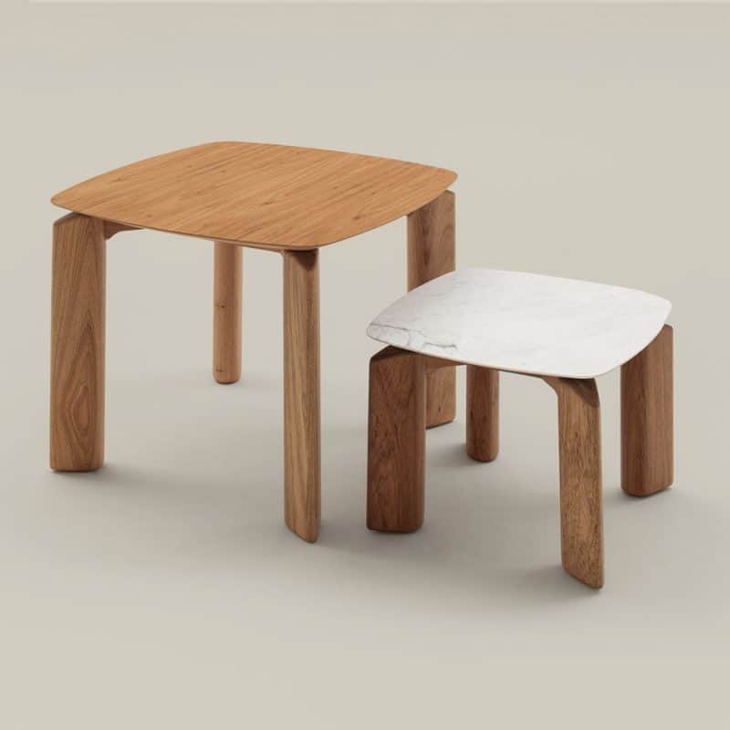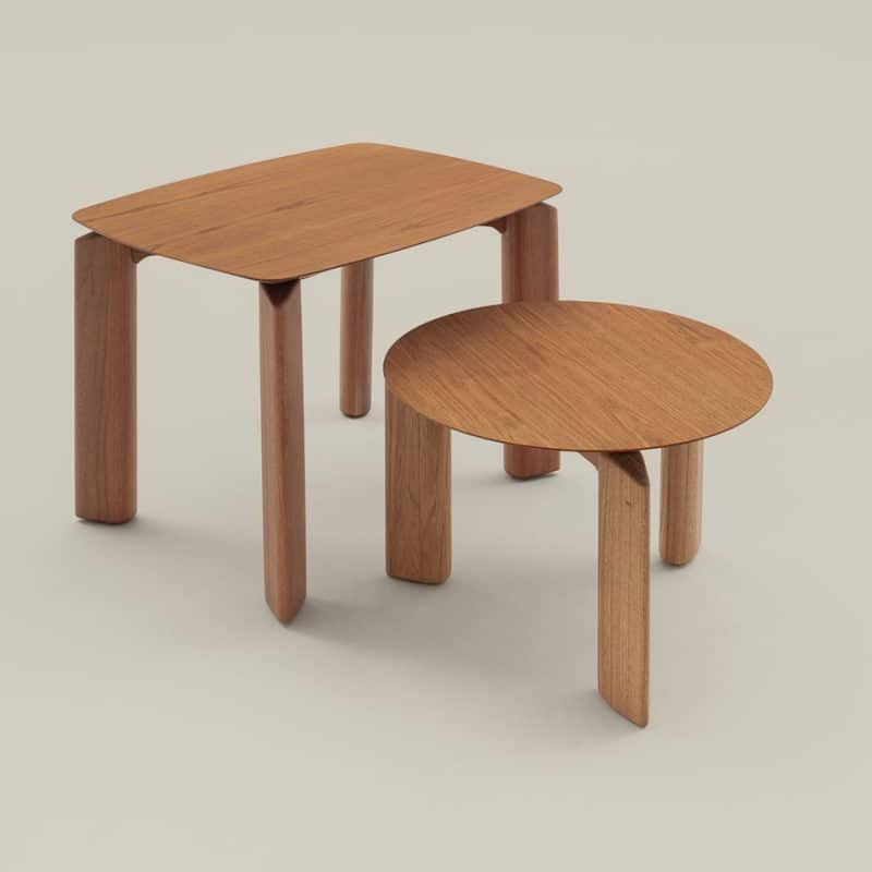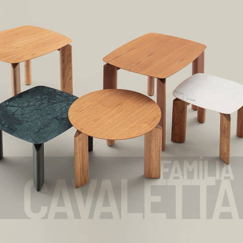 Pés e estrutura em madeira maciça certificada. Com processos de usinagem que garante a durabilidade do mobiliário. Disponível em freijó natural ou acabamentos tingidos. Tampo em MDF laminado, vidro pintado ou pedra.