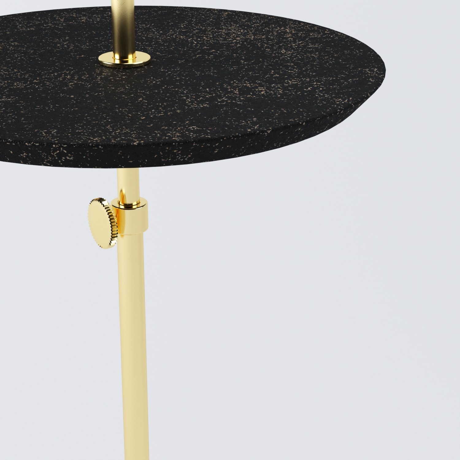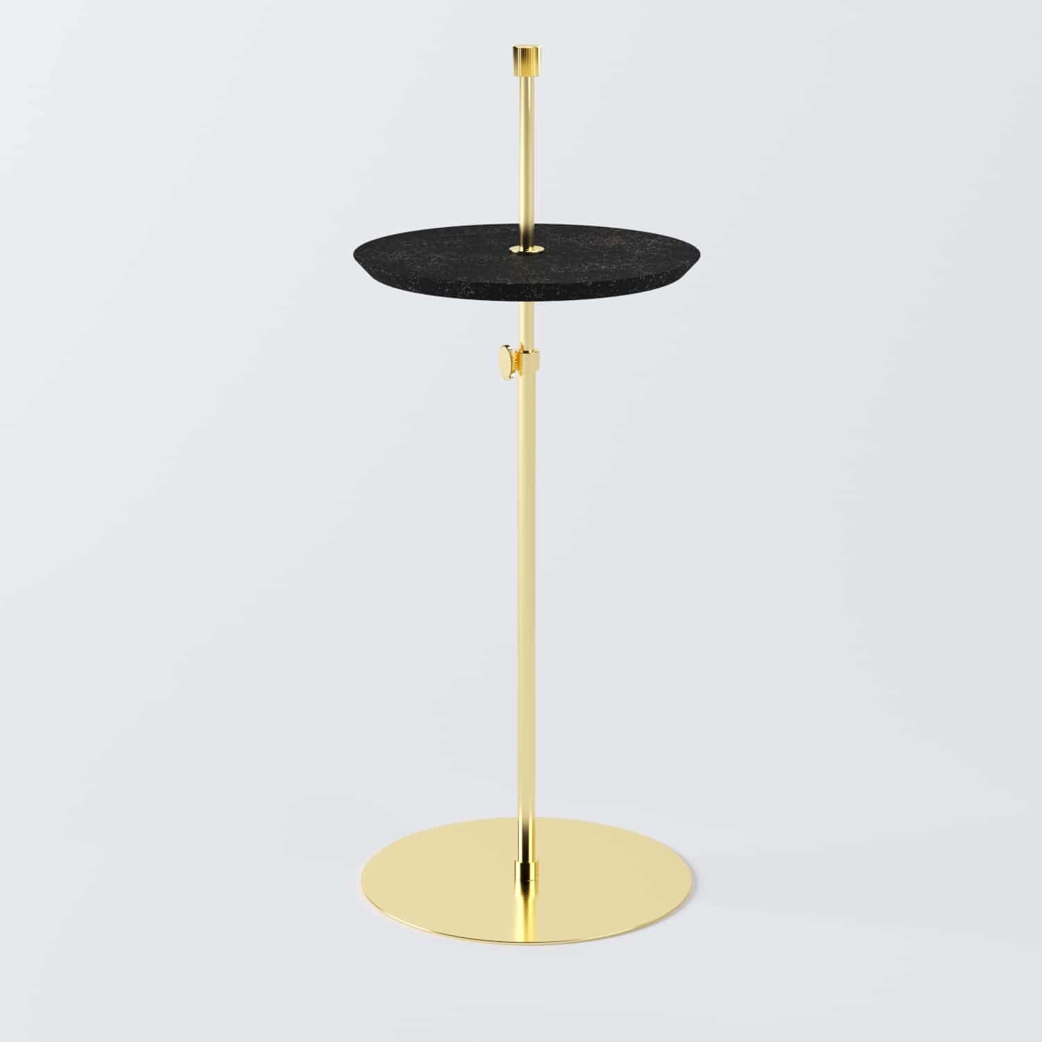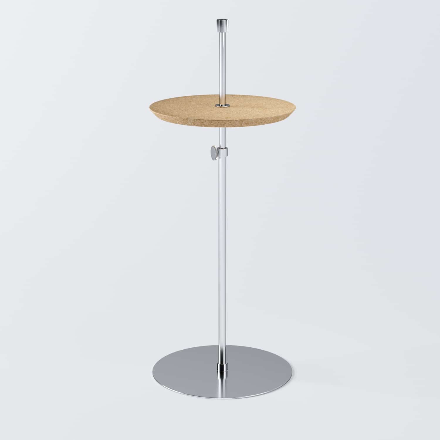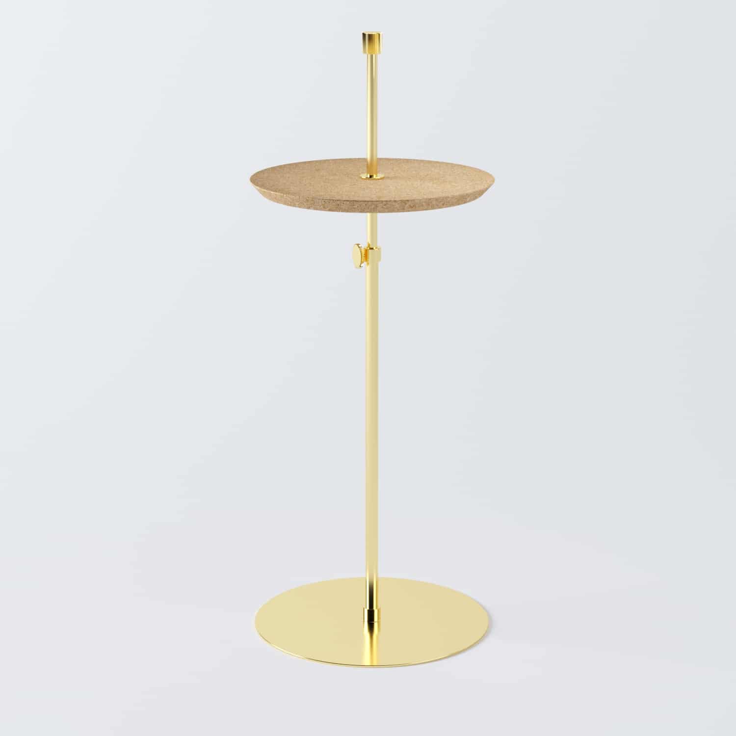 Os acabamentos de toda a coleção Disco são em: latão, níquel e ónix, e os tampos podem ser de cortiça natural ou cortiça preta emborrachada. Faz uma ótima combinação com a mesa lateral e mesa pendurada de disco.