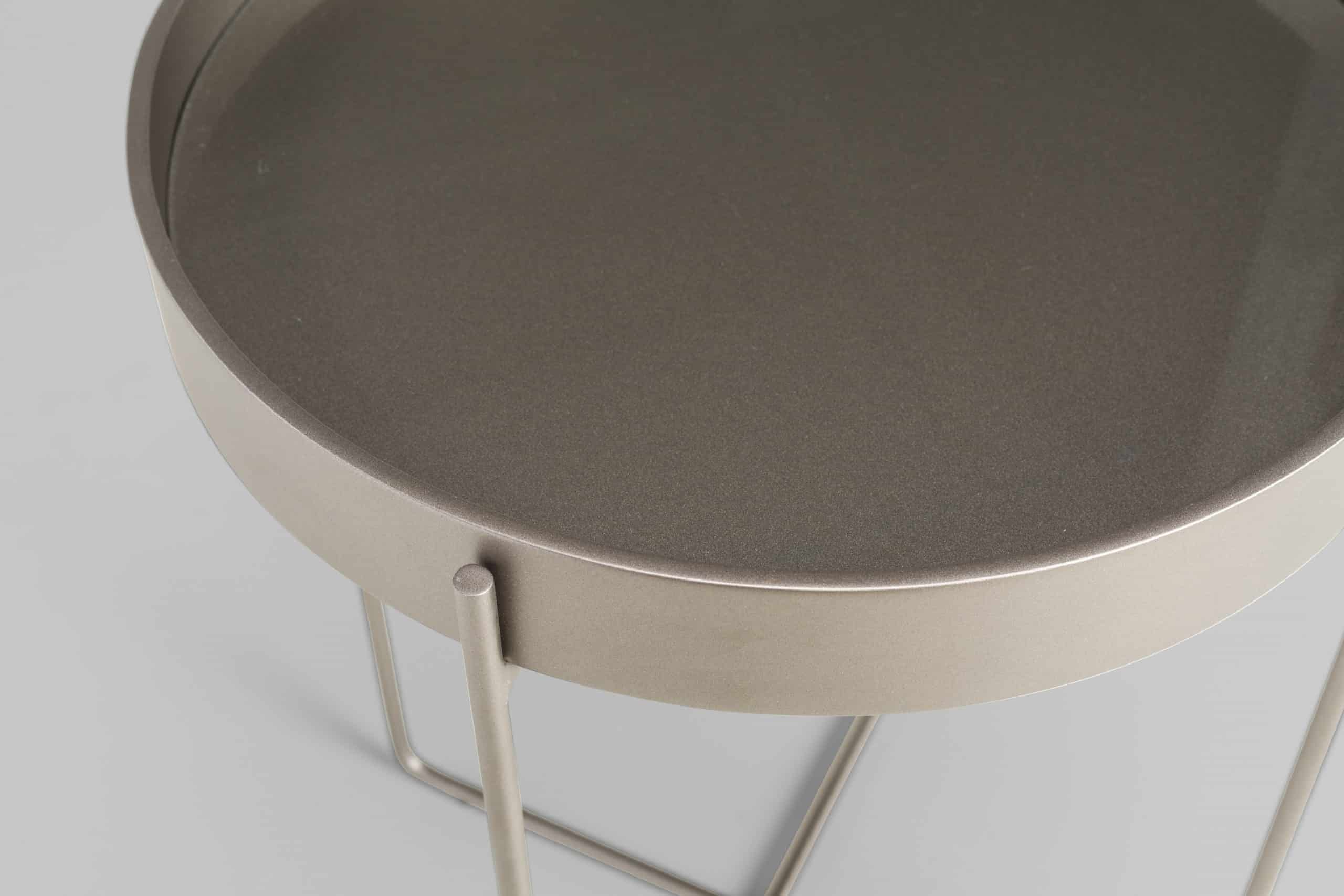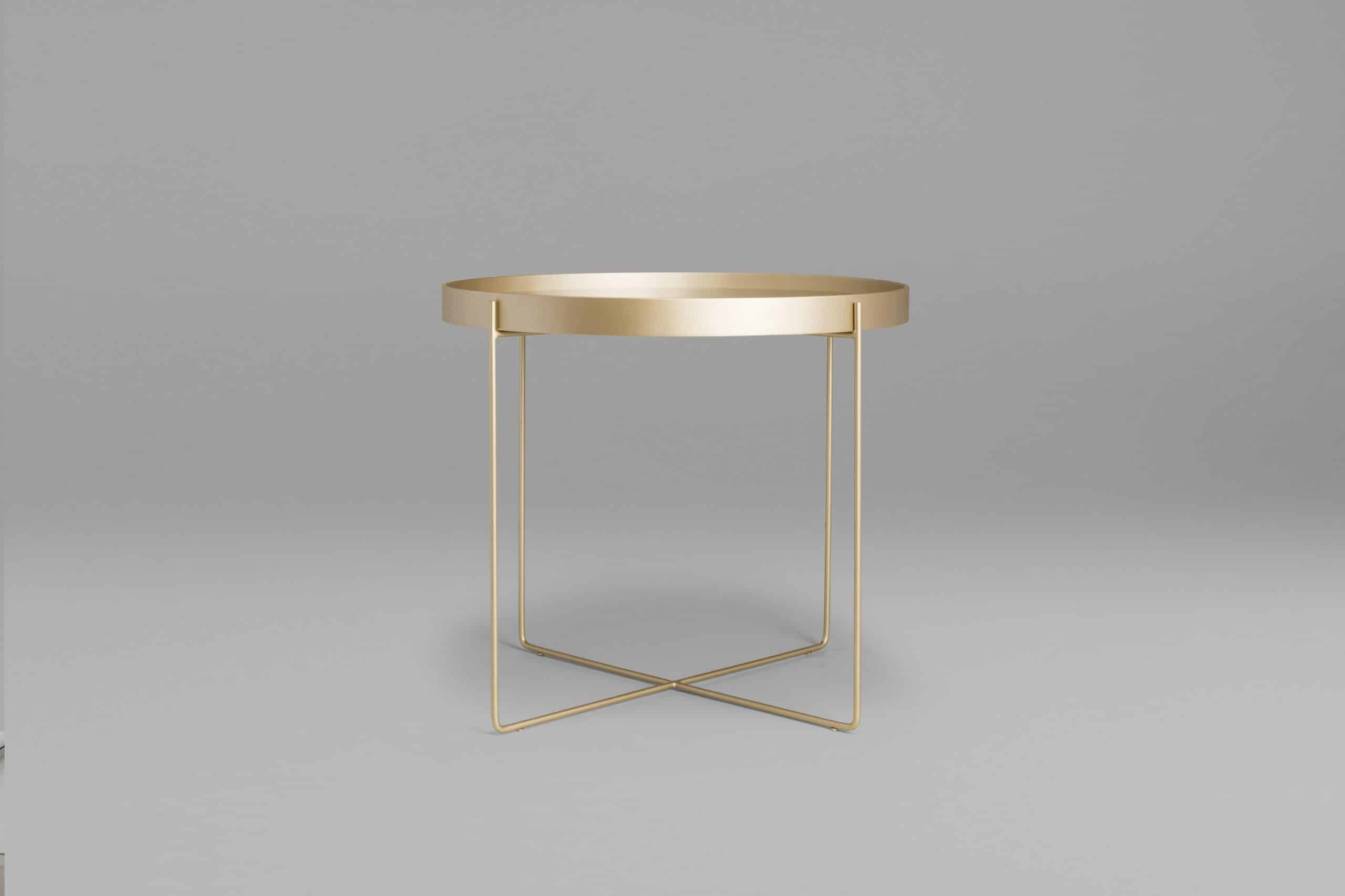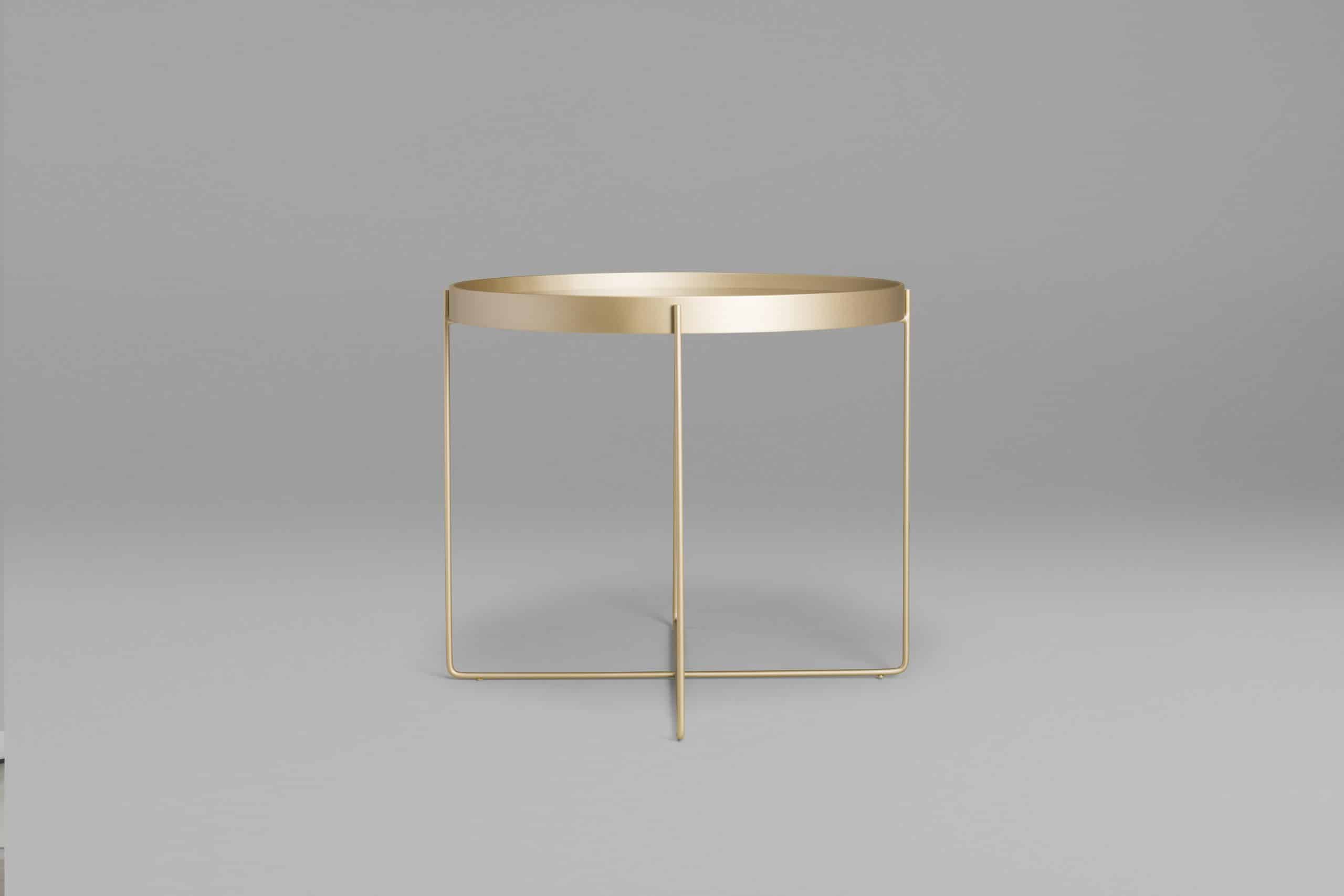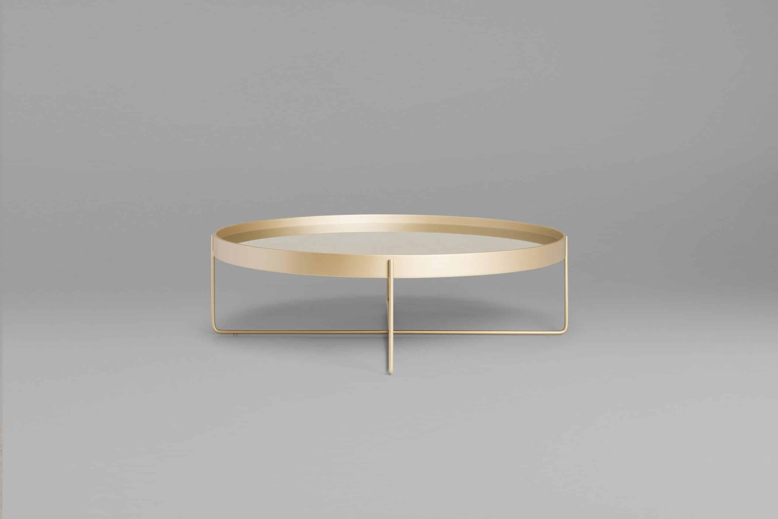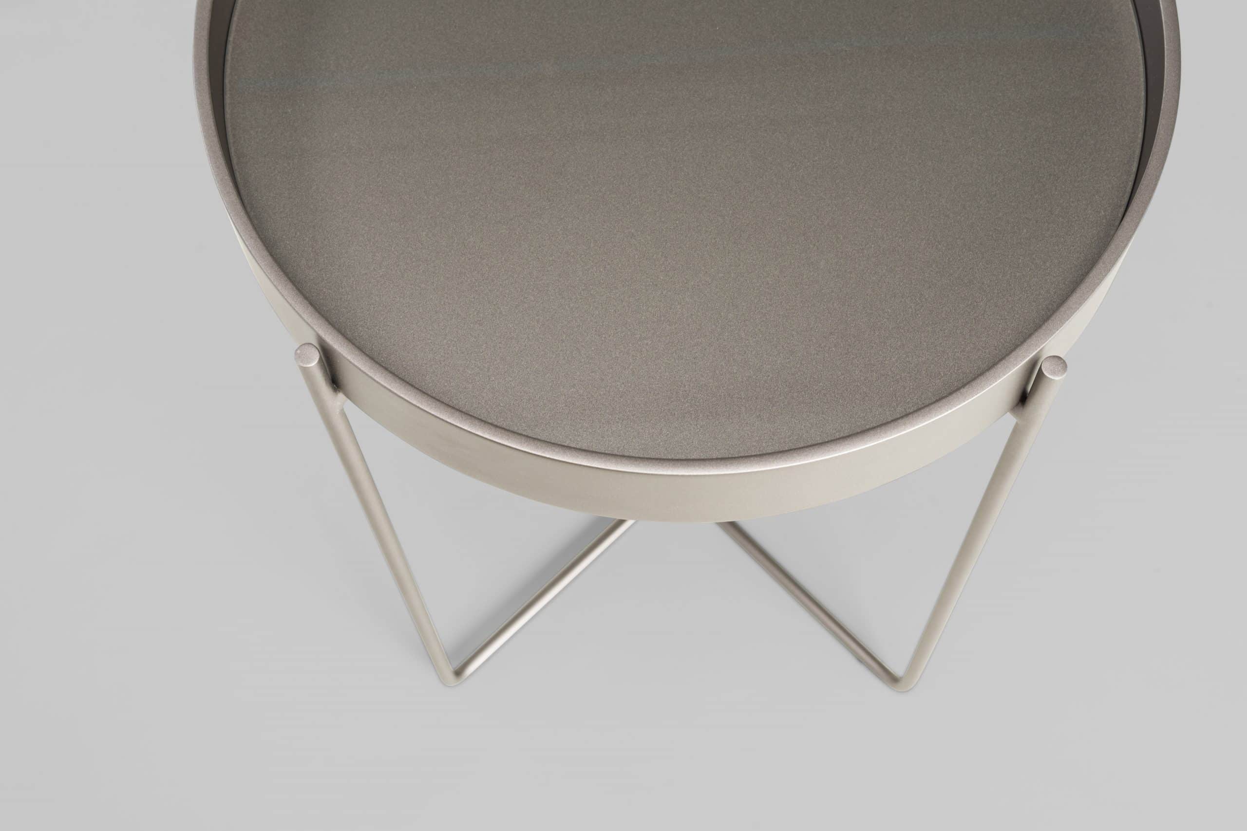 A mesa Tubos recebe esse nome tanto pela estrutura cilíndrica que compõe a base, quanto do tampo, que também sugere uma seção tubular. A estrutura metálica com base sobreposta em cruz tem as extremidades superiores alongadas para receber o tampo em madeira laminada. As bordas do tampo conferem um detalhe especial para essa mesa.