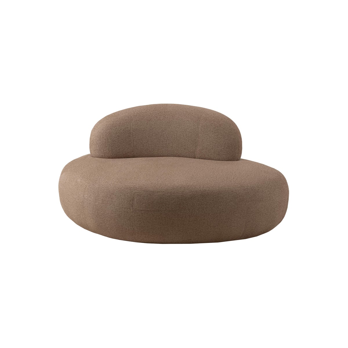 Calder em versão poltrona apresenta volumes generosos e contornos suaves e orgânicos. O design minimalista e sem braços oferece um convite ao acolhimento com uma elegância serena e discreta.