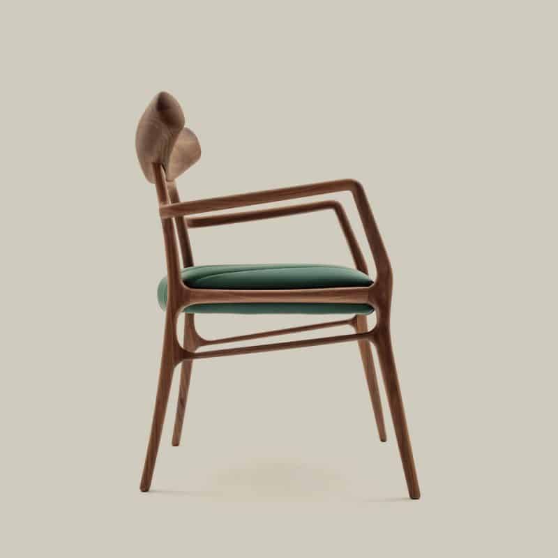 Cadeira em madeira certificada. Acabamento raiado nas arestas aumenta a durabilidade e conforto do mobiliário.