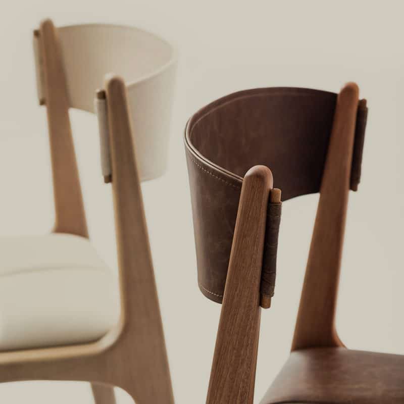 Estrutura em madeira certificada. Com e sem braço. Acabamento raiado nas arestas aumenta a durabilidade e conforto do mobiliário. Tapeçaria em couro ou tecido.