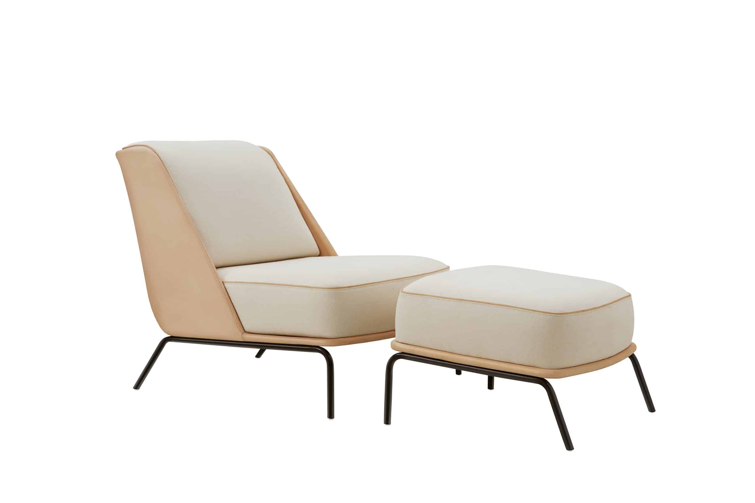 Quando utilizada junto ao pufe, ela funciona como uma chaise, permitindo ao usuário reclinar-se ainda mais, apoiando a cabeça sobre a parte superior da almofada de encosto. Tem como destaque o desenho da parte posterior, que, através de uma abertura, evidencia o detalhe da almofada de assento revestida em tecido e o seu contraste com o revestimento em couro da estrutura.