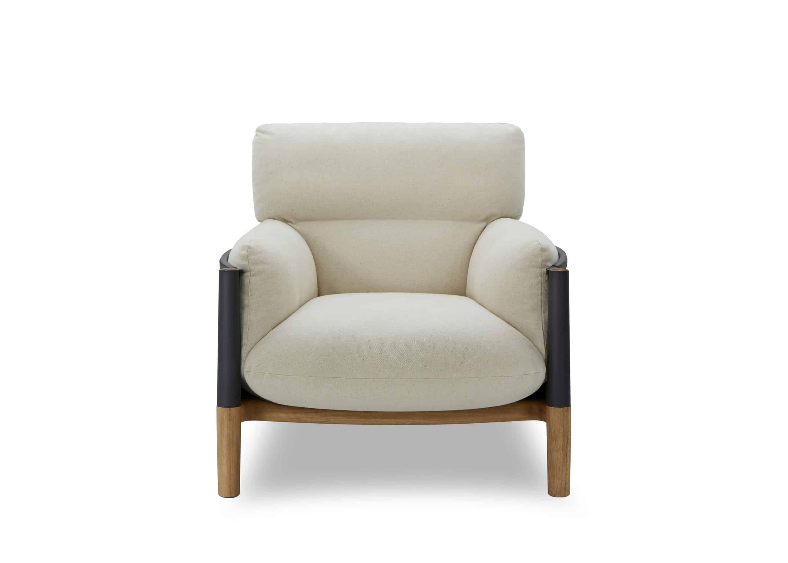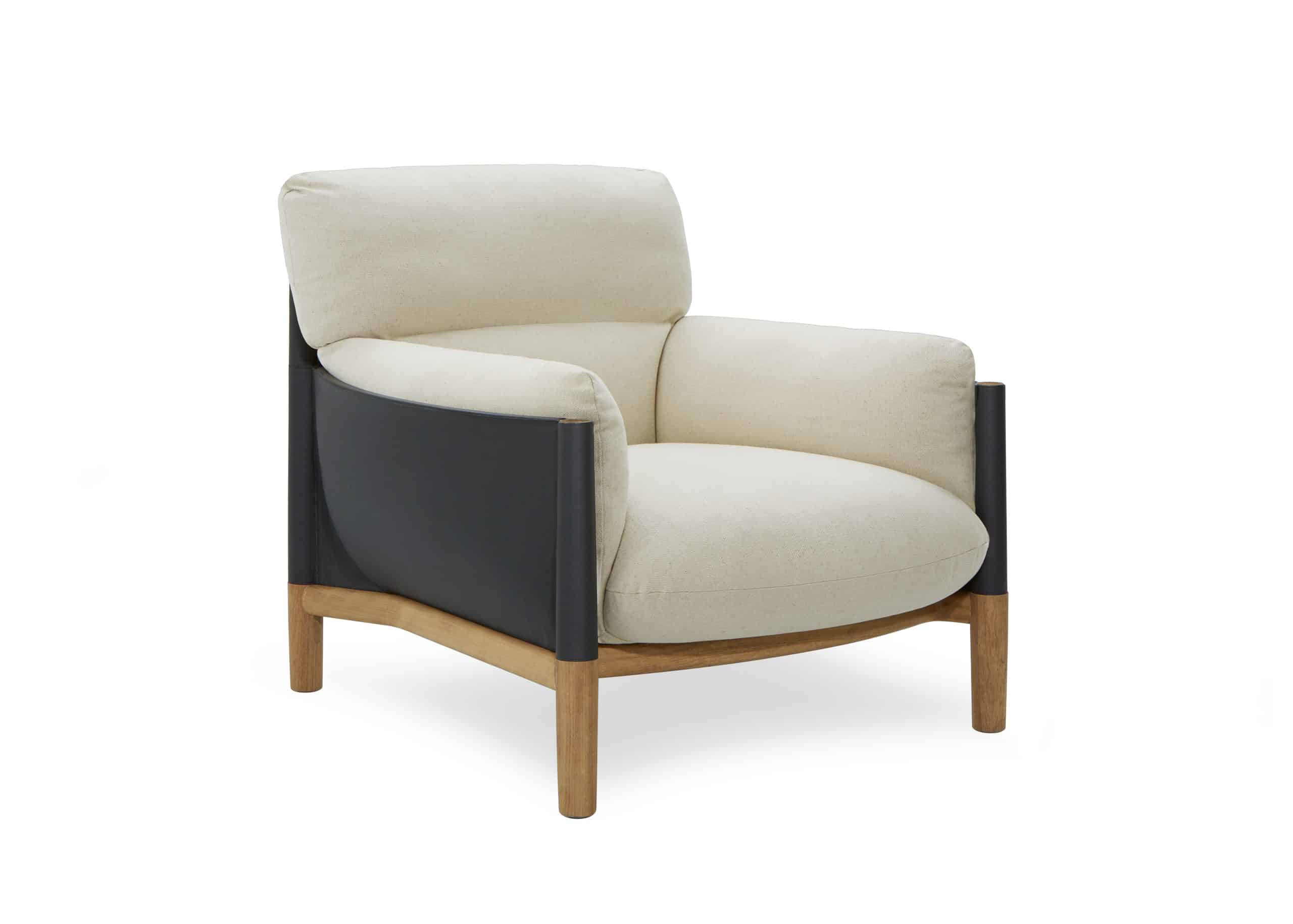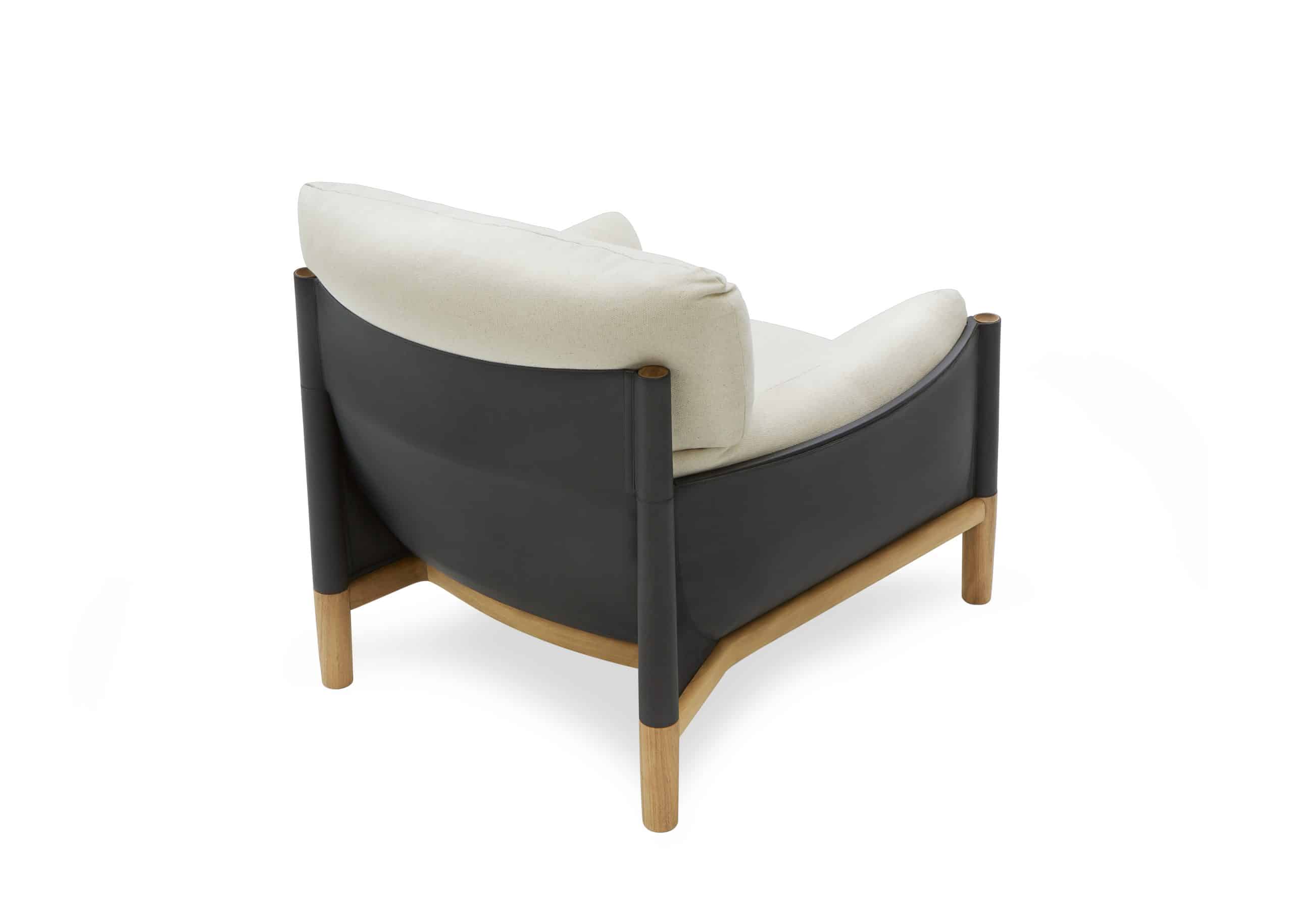 Possui estrutura em madeira maciça que, além de ser resistente e elegante, recebe uma capa única em couro, que circunda a peça e desempenha a função de amparar as almofadas de encosto, braços e assento. Essa configuração teve inspiração no universo marítimo, na construção das embarcações e na sutileza da maré ao amparar os cascos dos barcos. Essa configuração também acaba por valorizar a parte estofada, possibilitando a utilização de almofadas soltas, mais volumosas e macias, que resultam em um sentar extremamente confortável e em um design que equilibra volume e leveza.