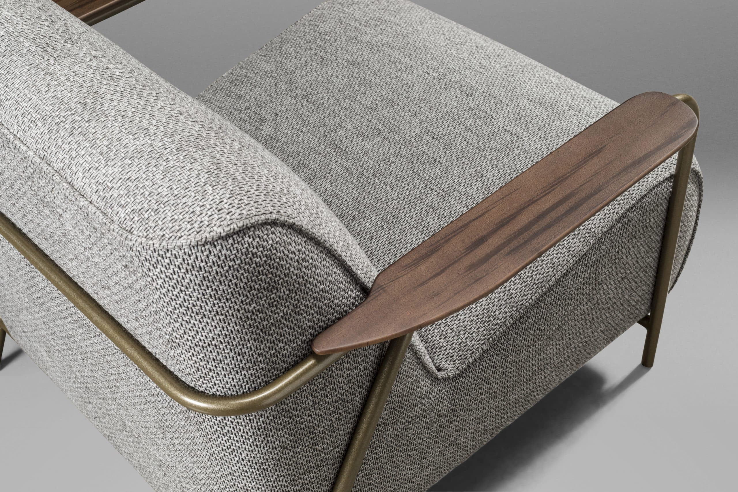 Feita com estrutura metálica, apoio para braços em madeira e um assento inteiriço, a Poltrona Neo Larg mescla conforto e robustez com seu design moderno. As formas curvilíneas do estofado destacam-se pelo equilíbrio com a estrutura, formando uma composição visual que atrai em todos os ângulos. É uma poltrona que representa o nosso desejo em ressignificar as relações e experiencias que o mobiliário pode proporcionar.