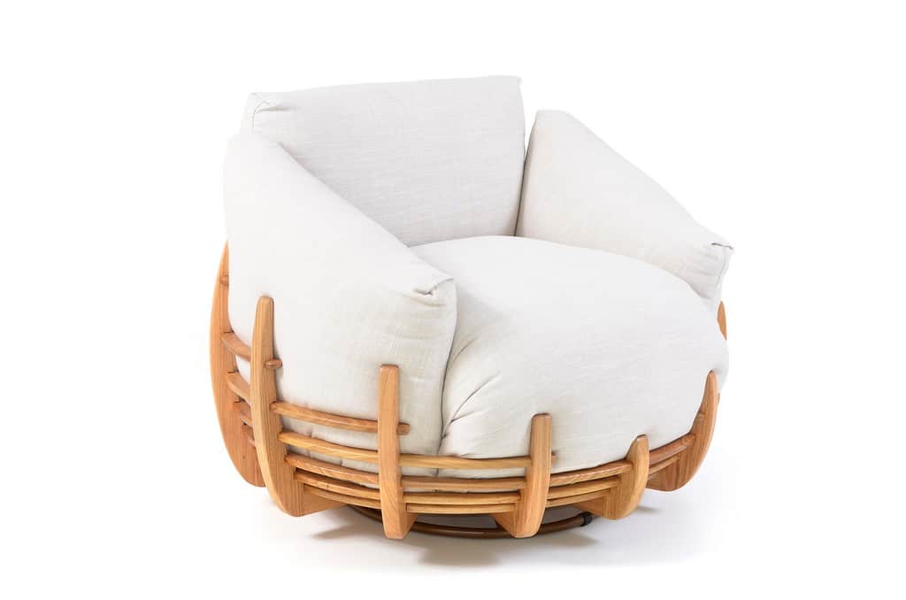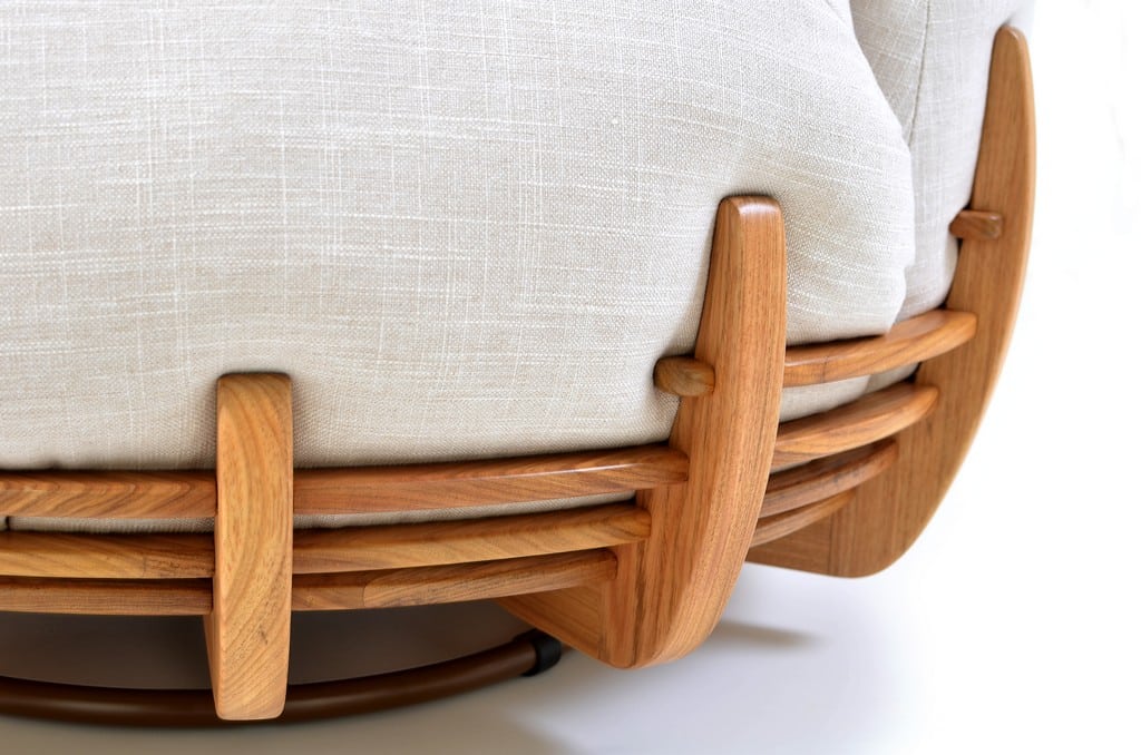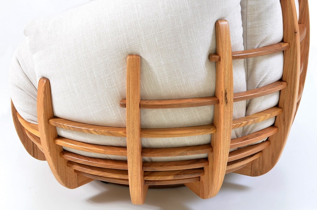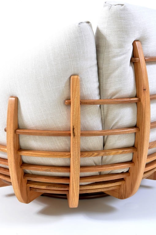 Na releitura de 2020, a peça ganha sua versão em madeira maciça, um ninho que esbanja aconchego e requinte para os amantes do design e da marcenaria manual.